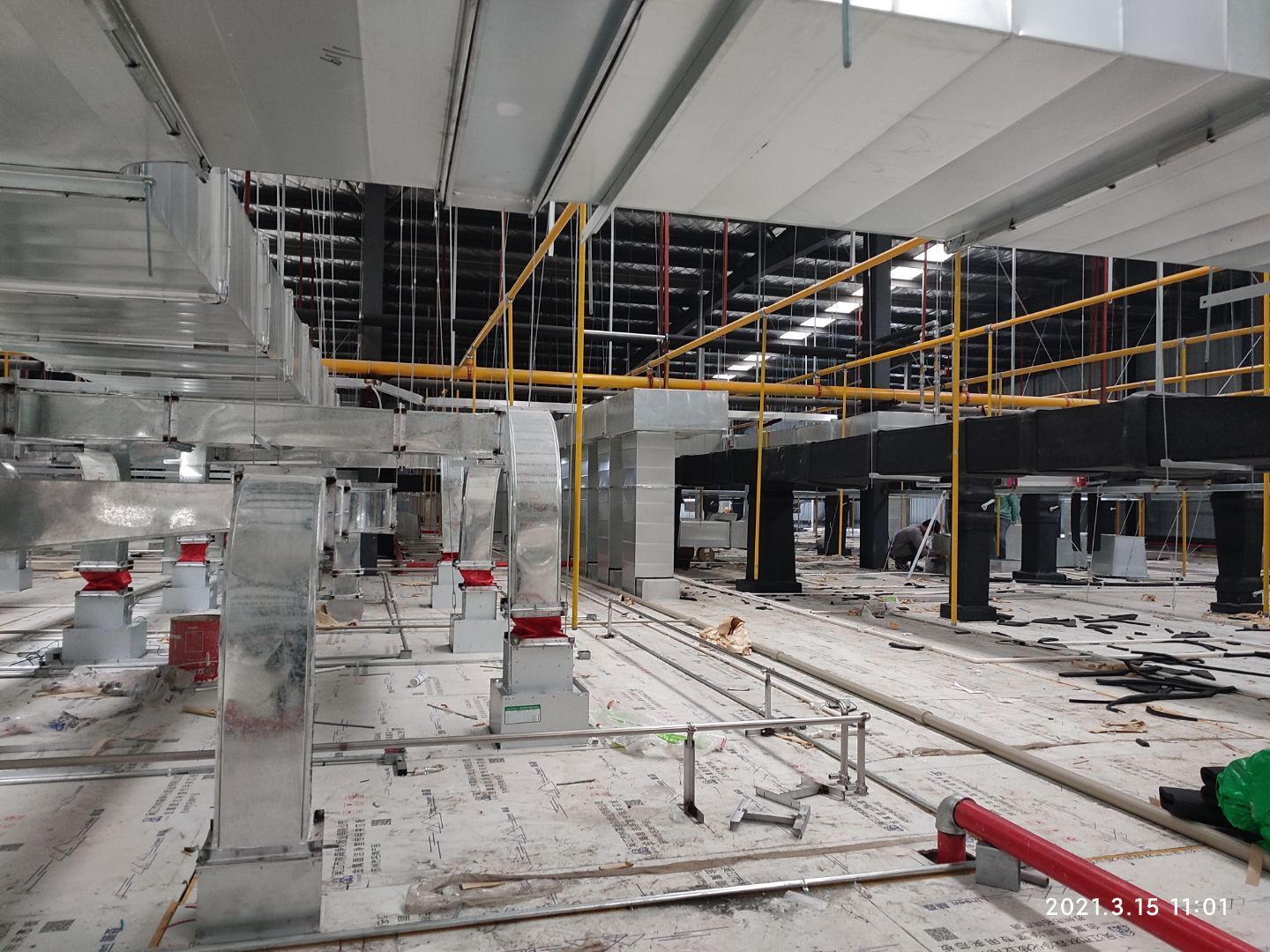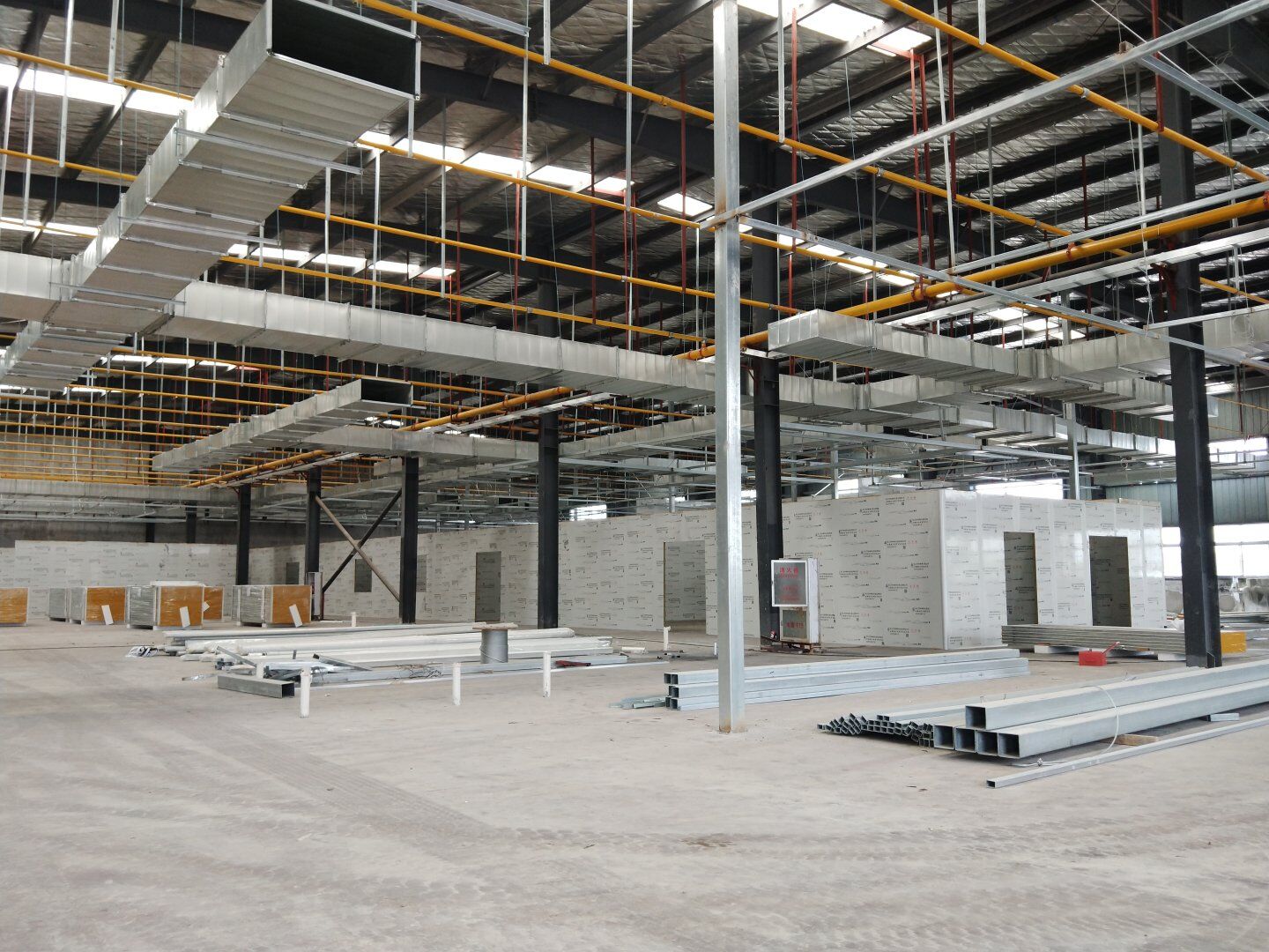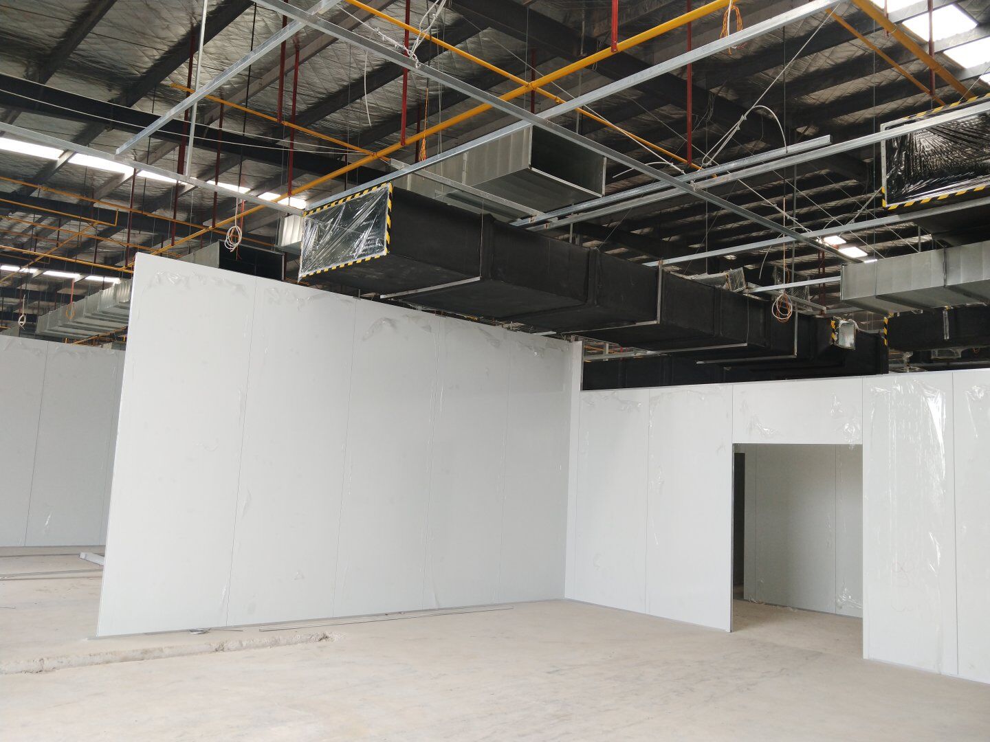 1,除設(shè)備預(yù)留通道外墻板完成, 2,頂板完成80%, 3,風管支管扣管完成30%
