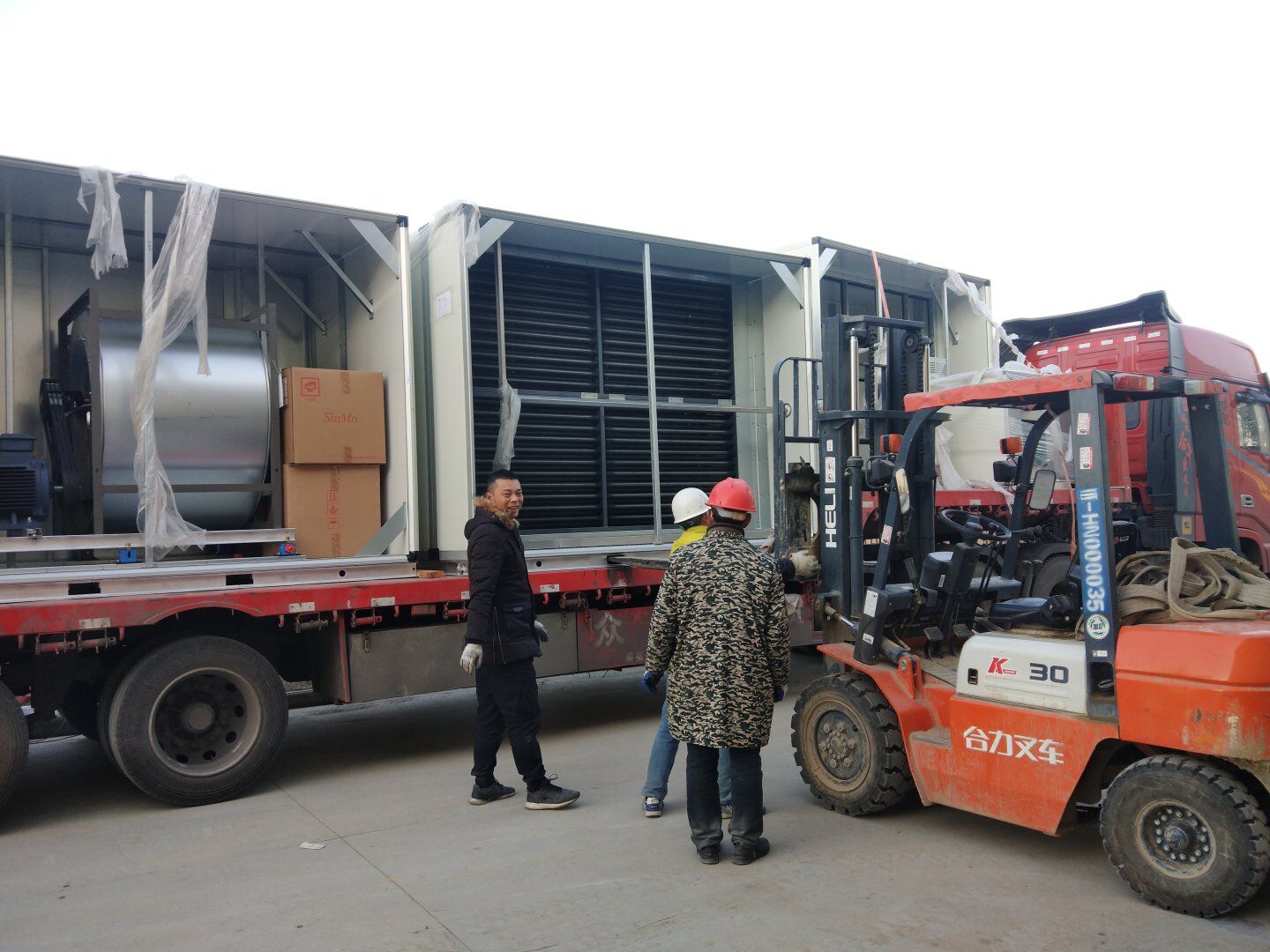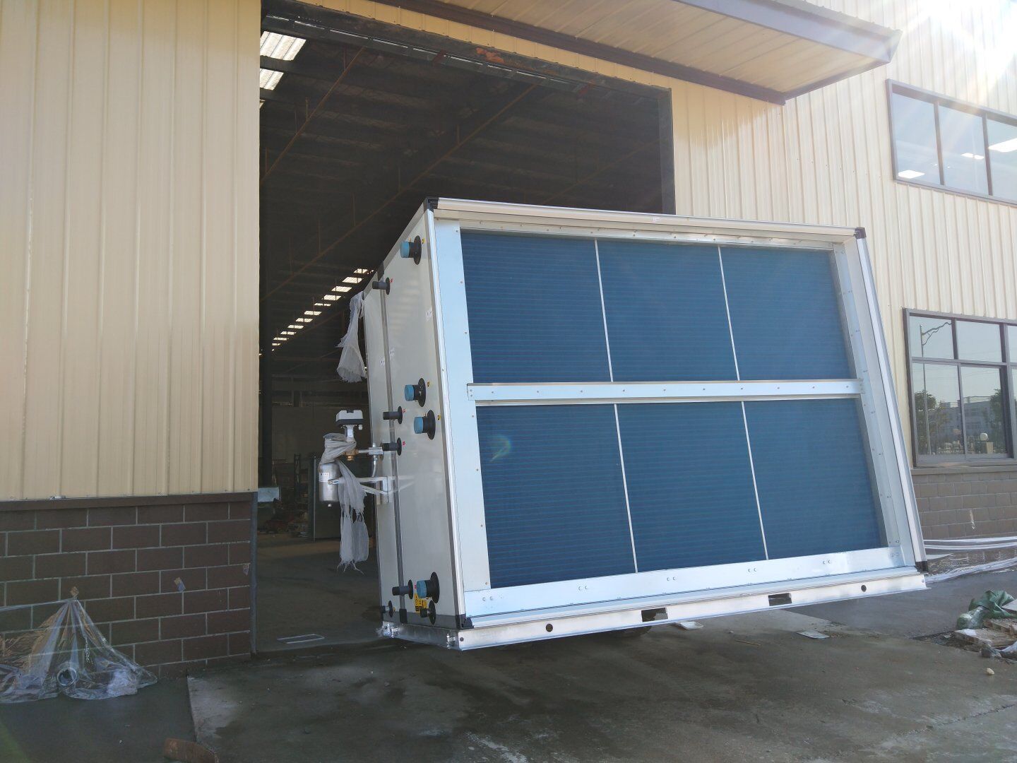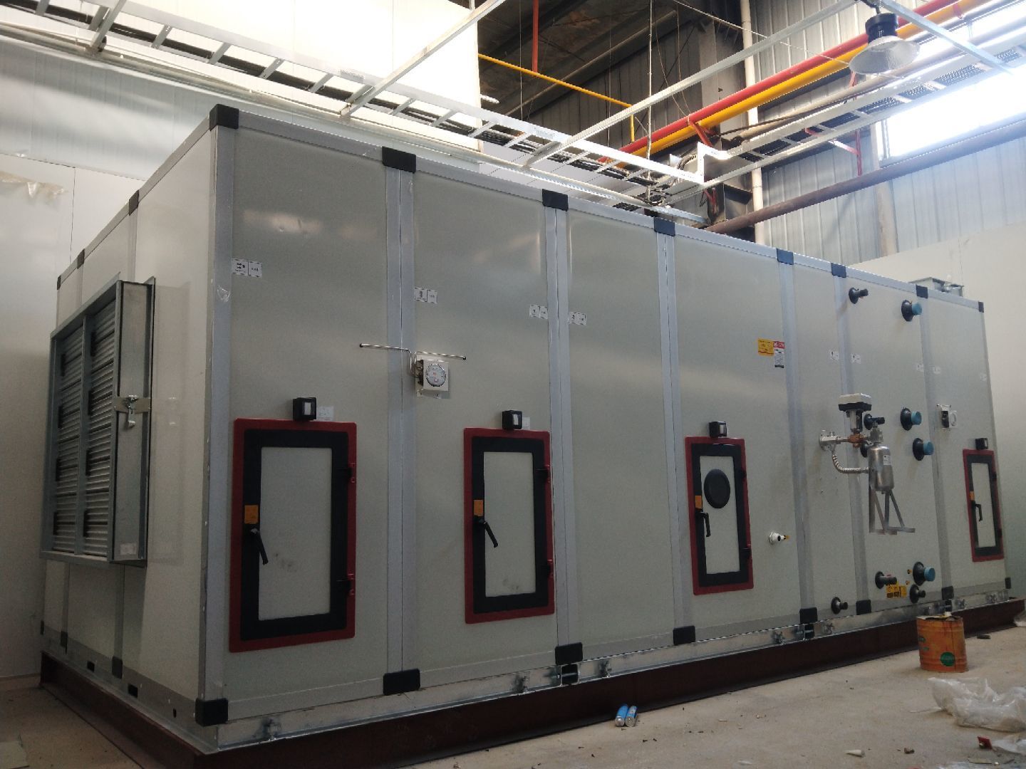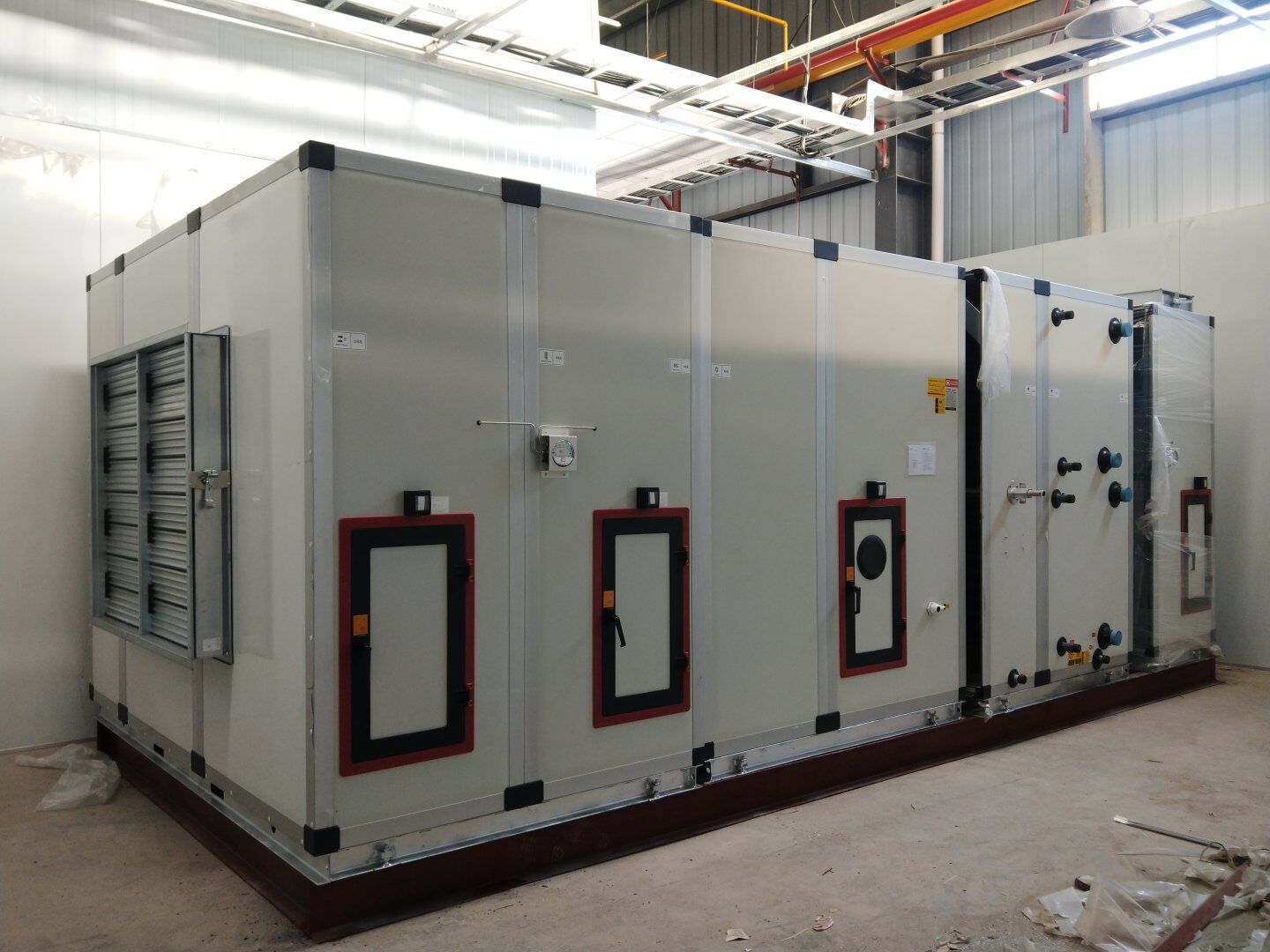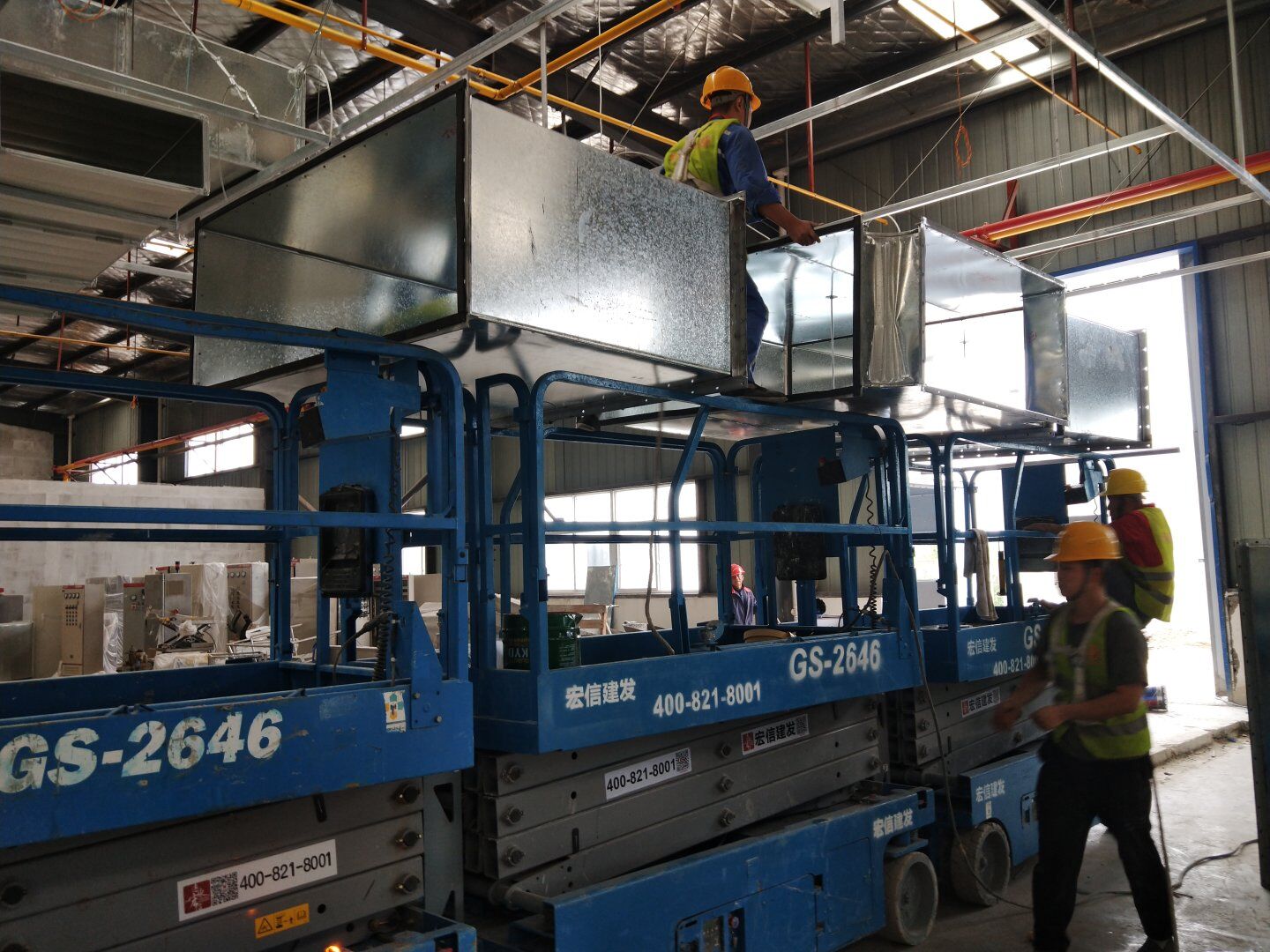 液體車間: 1、剩余風管拼裝完成80%;2、彩鋼板打膠完成95%;3、空調(diào)自控放線完成95%。