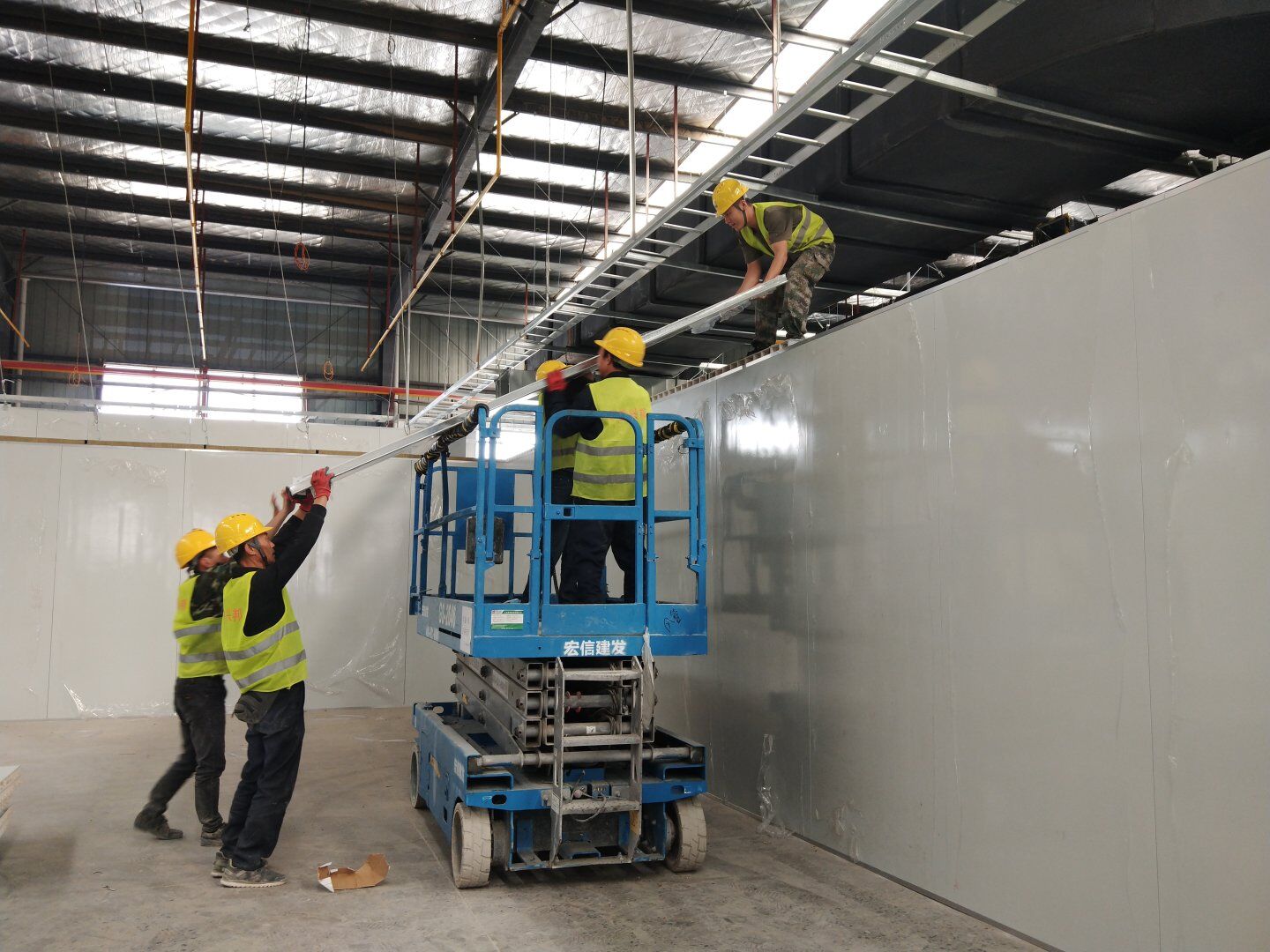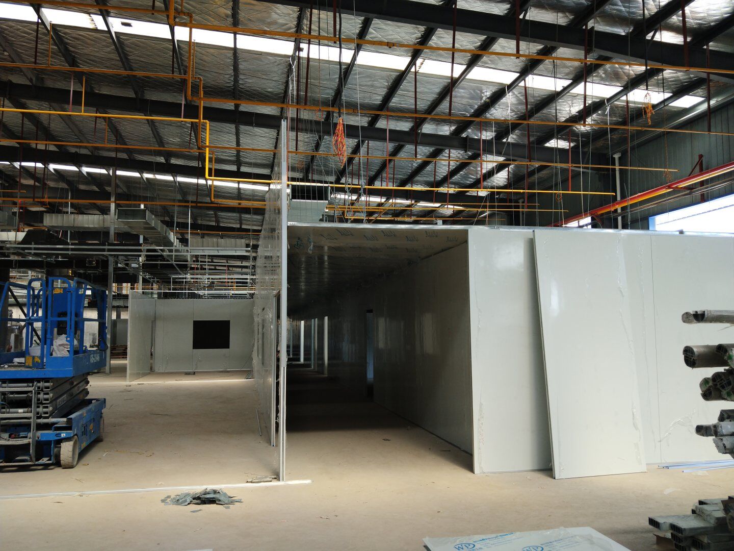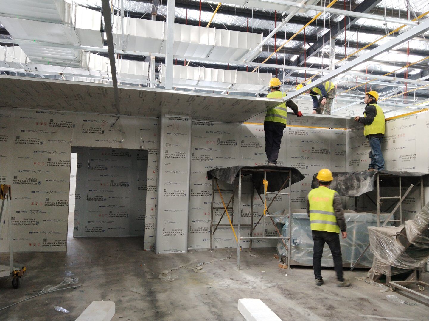 彩鋼板墻板完成85%,吊頂完成70%