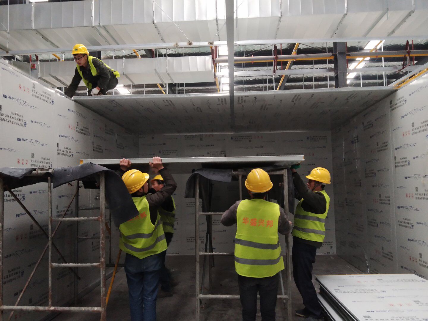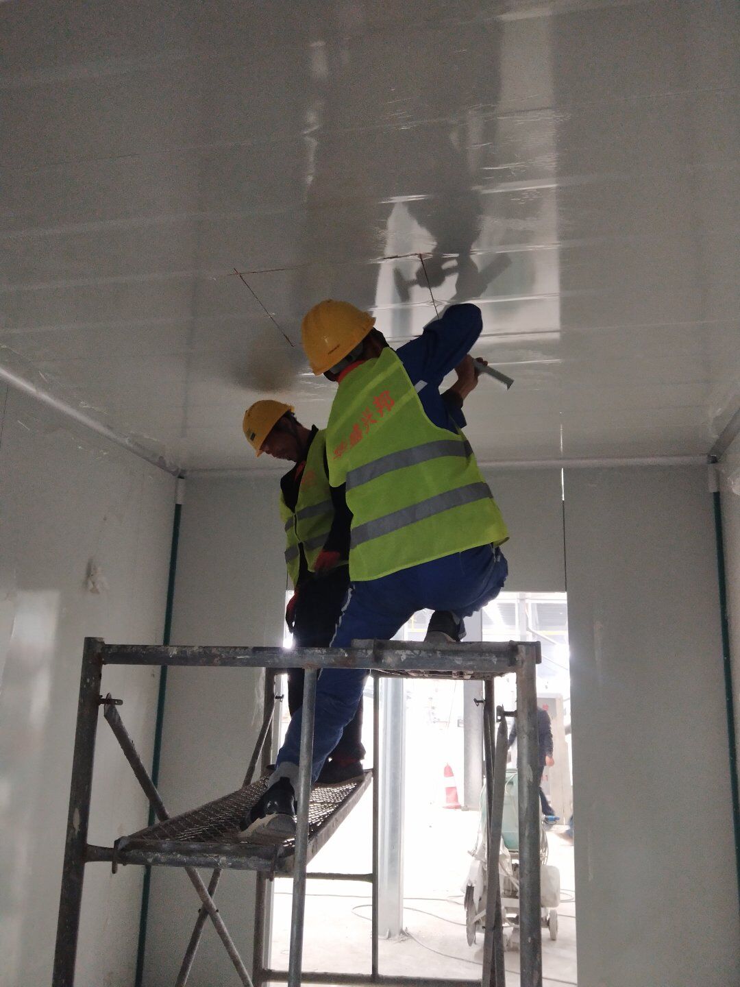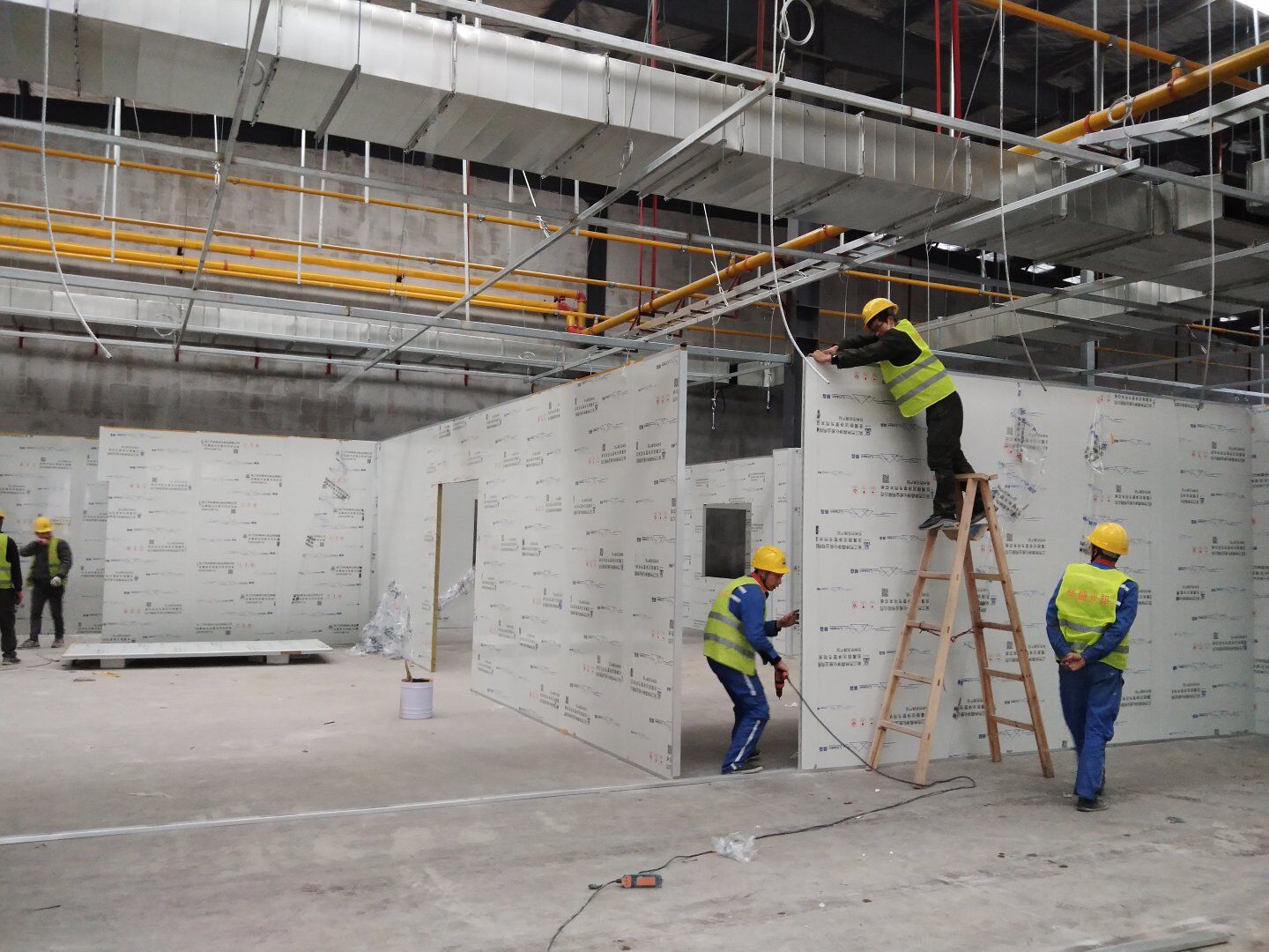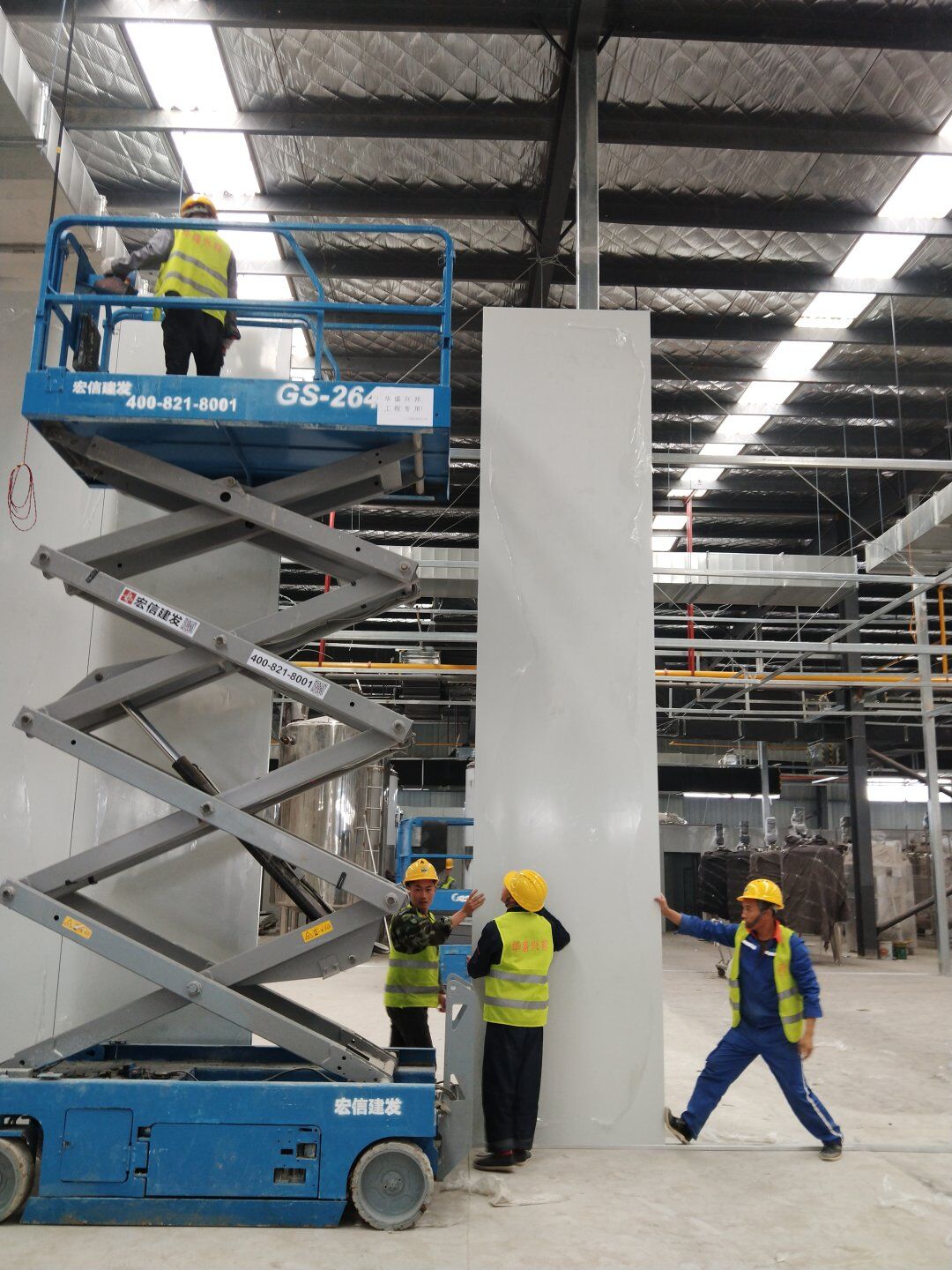 彩鋼板墻板完成85%,吊頂完成70%