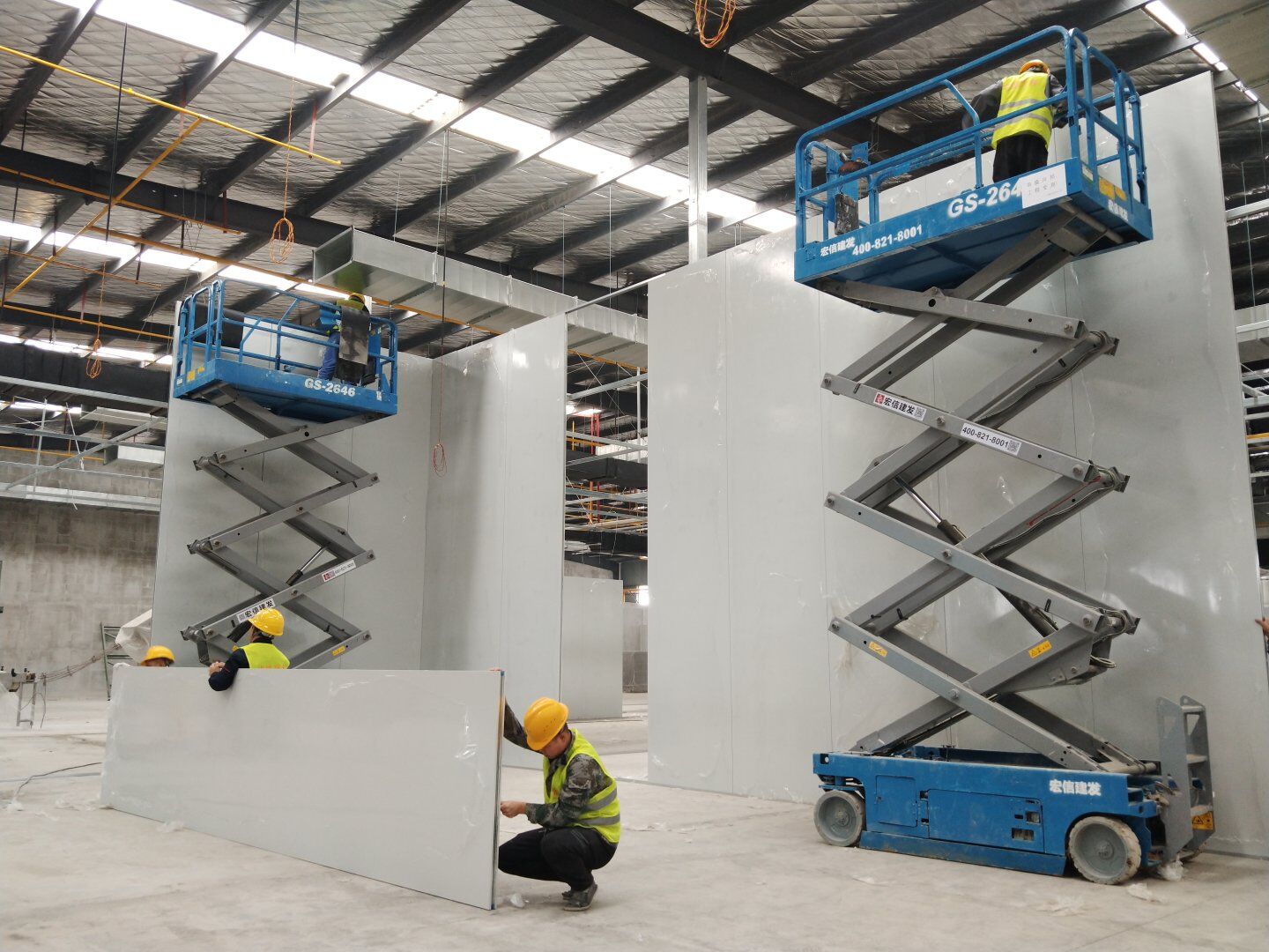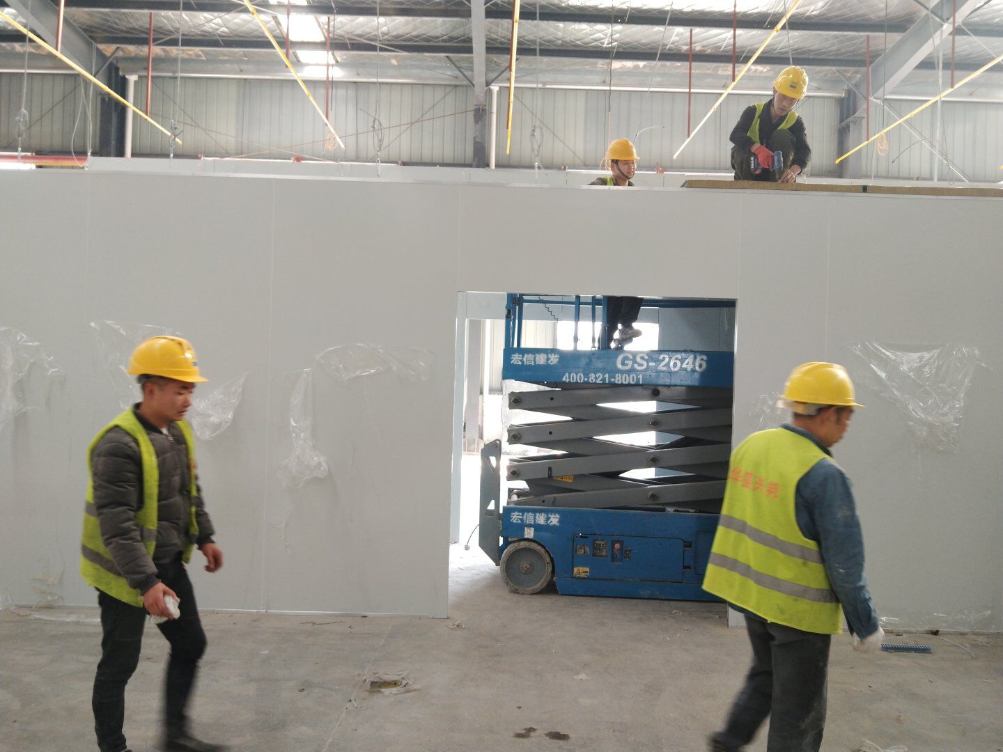 1,彩鋼隔墻完成40%; 2,彩鋼板頂板完成20%。