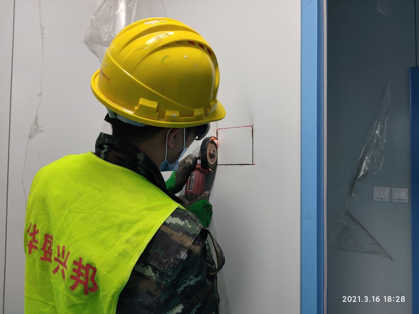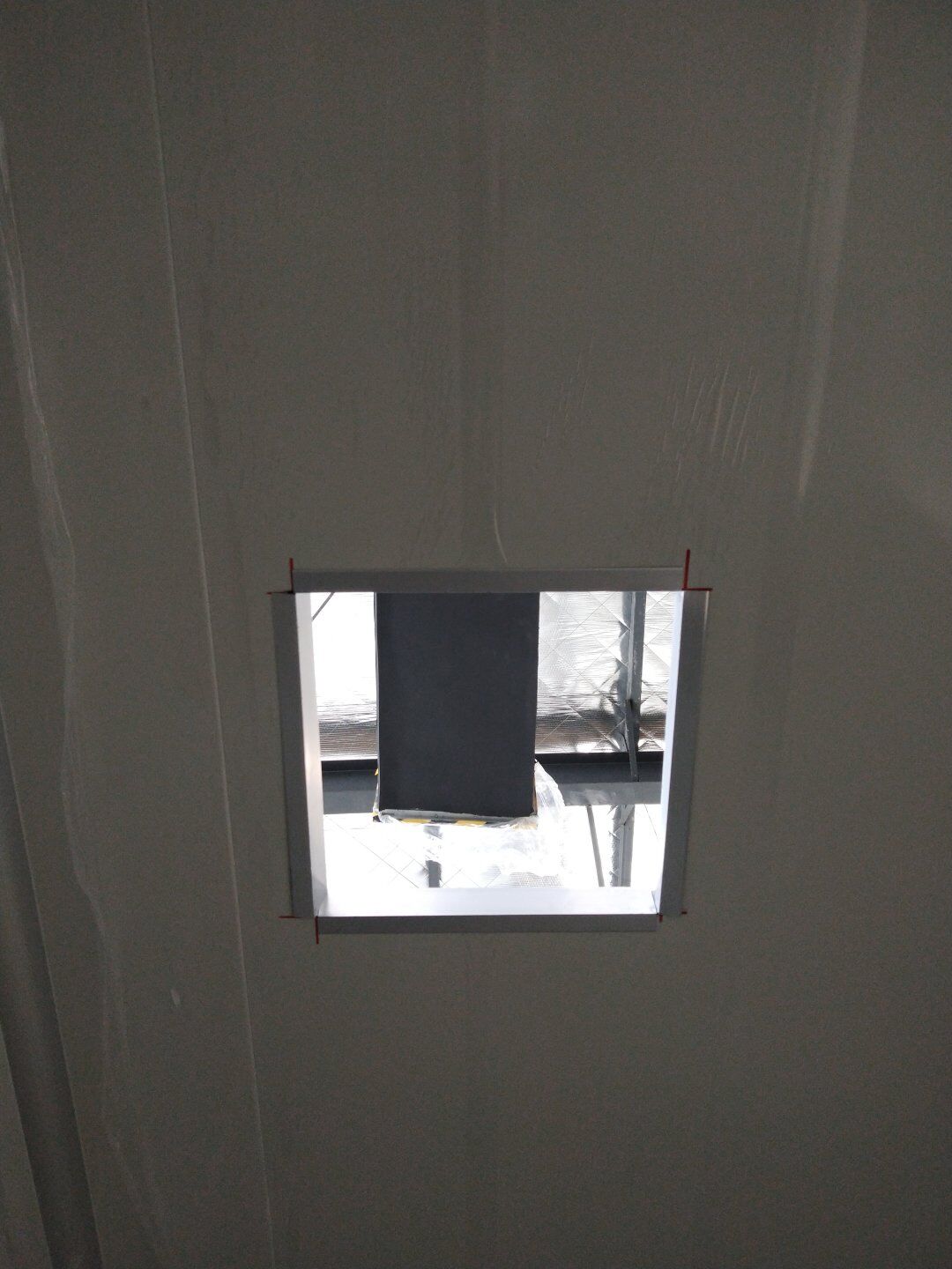 1,應(yīng)甲方變更拆除參觀走廊一部分墻頂板及部分隔墻(讓增加的設(shè)備進入); 2,風管支管保溫完成70%; 3,圓弧完成65%,撕膜打膠完成20%; 4,潔凈燈盤安裝完成25%。