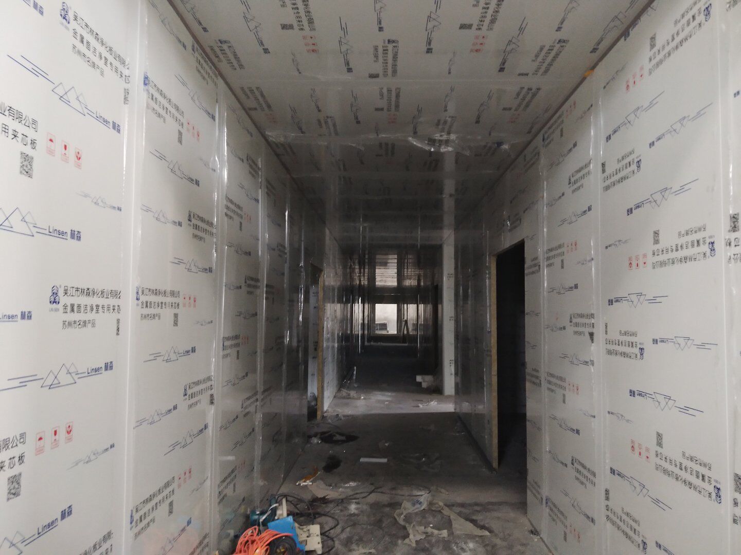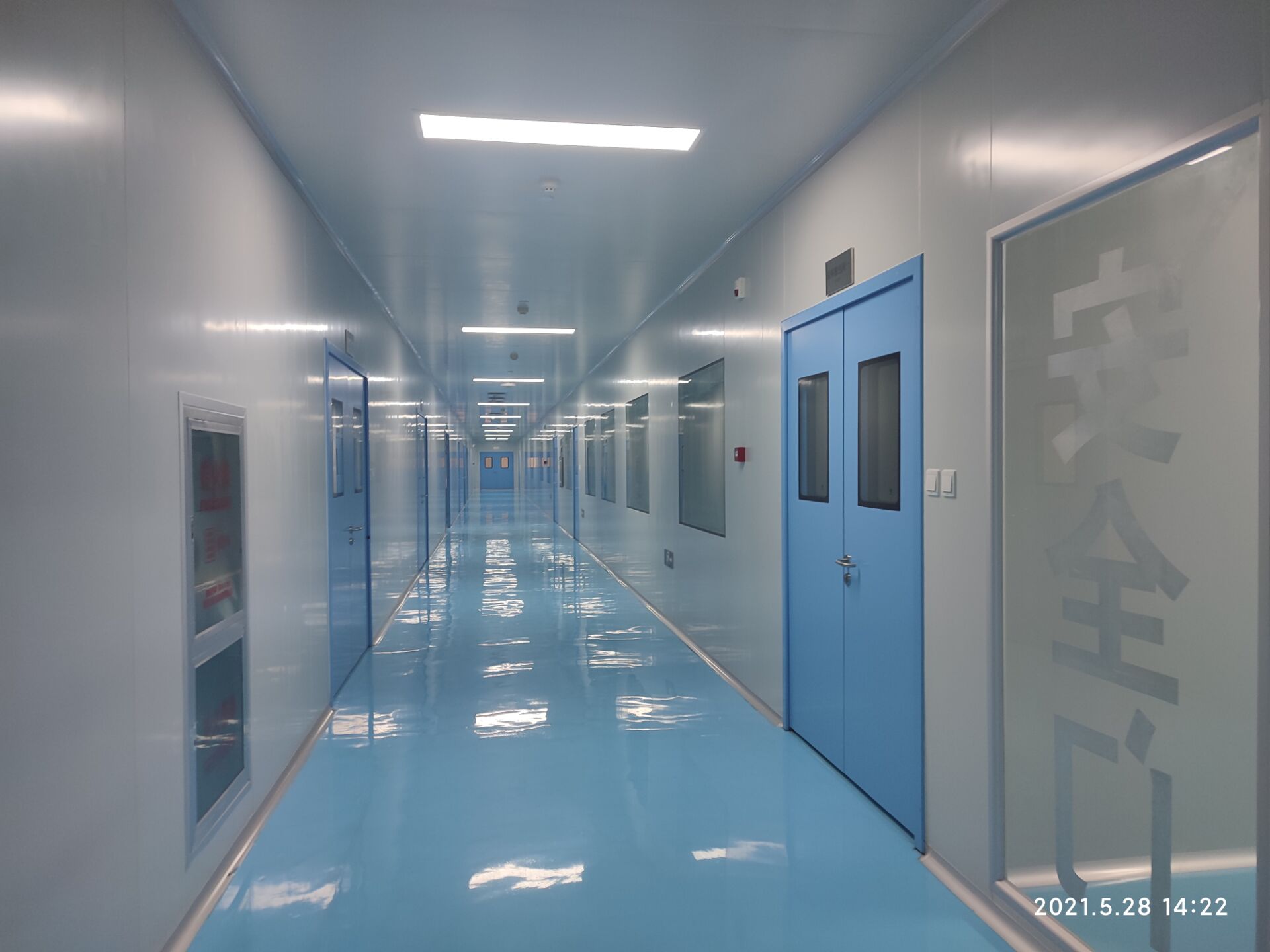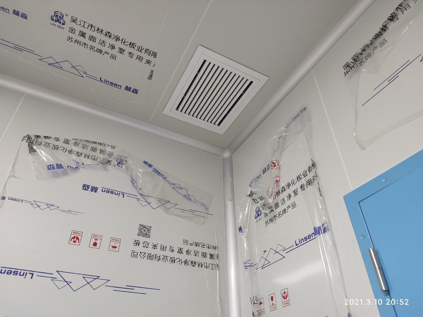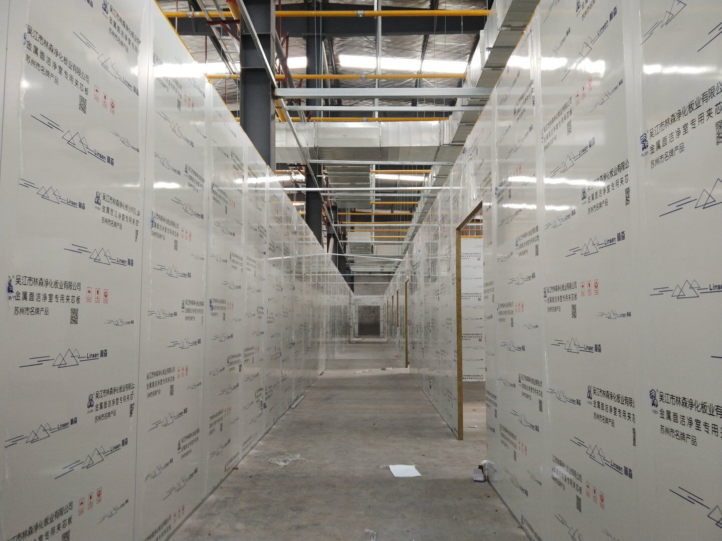1,彩鋼板墻板完成75% 2,回風夾道安裝,撕膜,打膠完成15% 3,潔凈窗安裝完成60%。