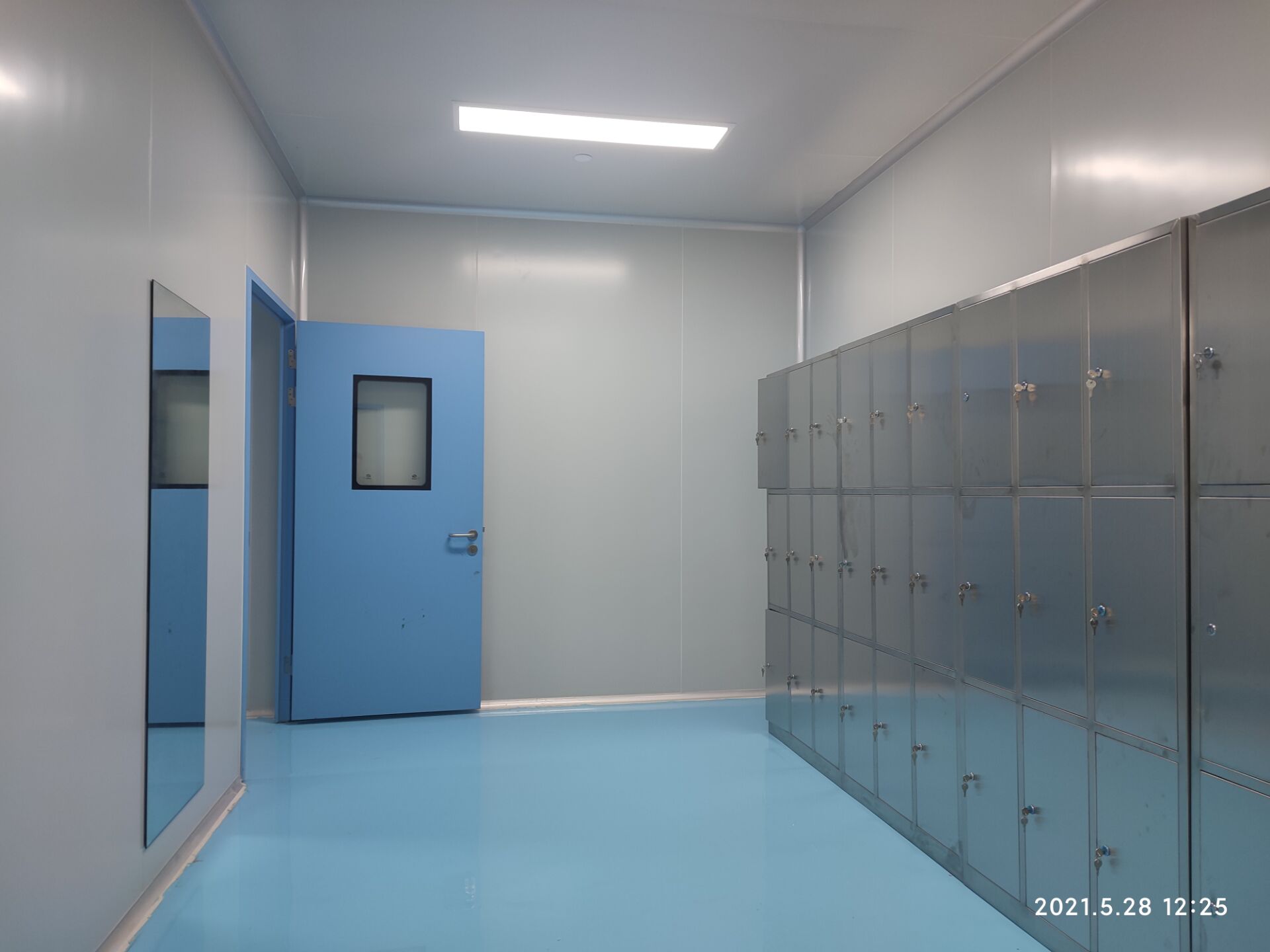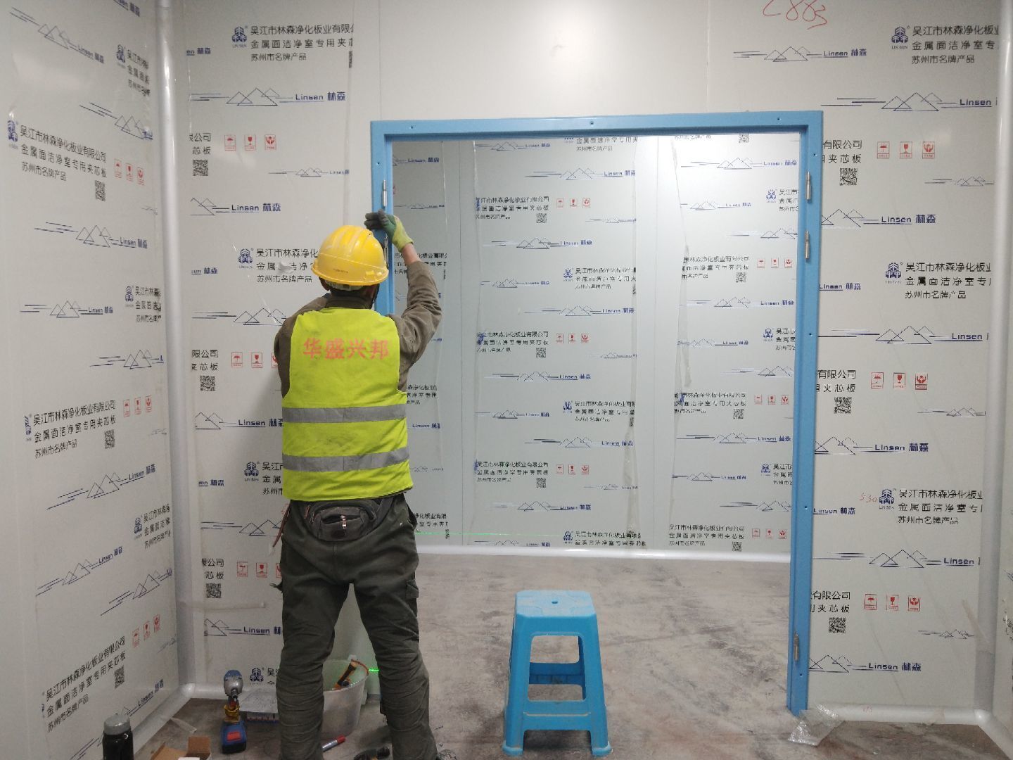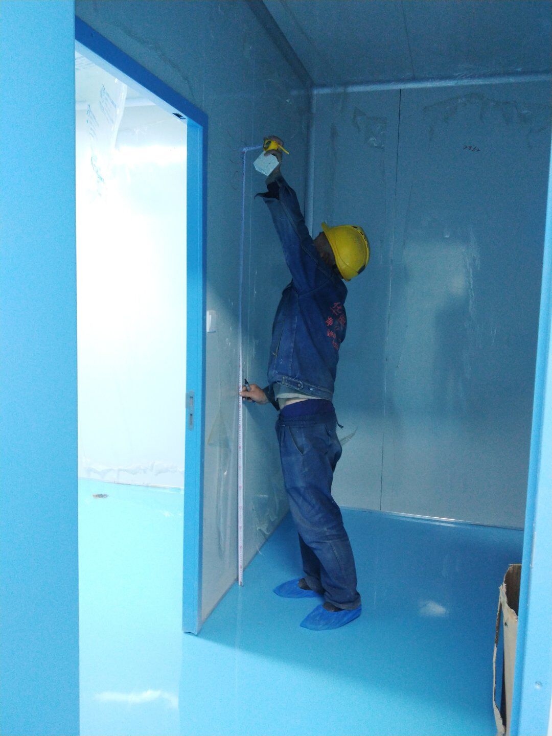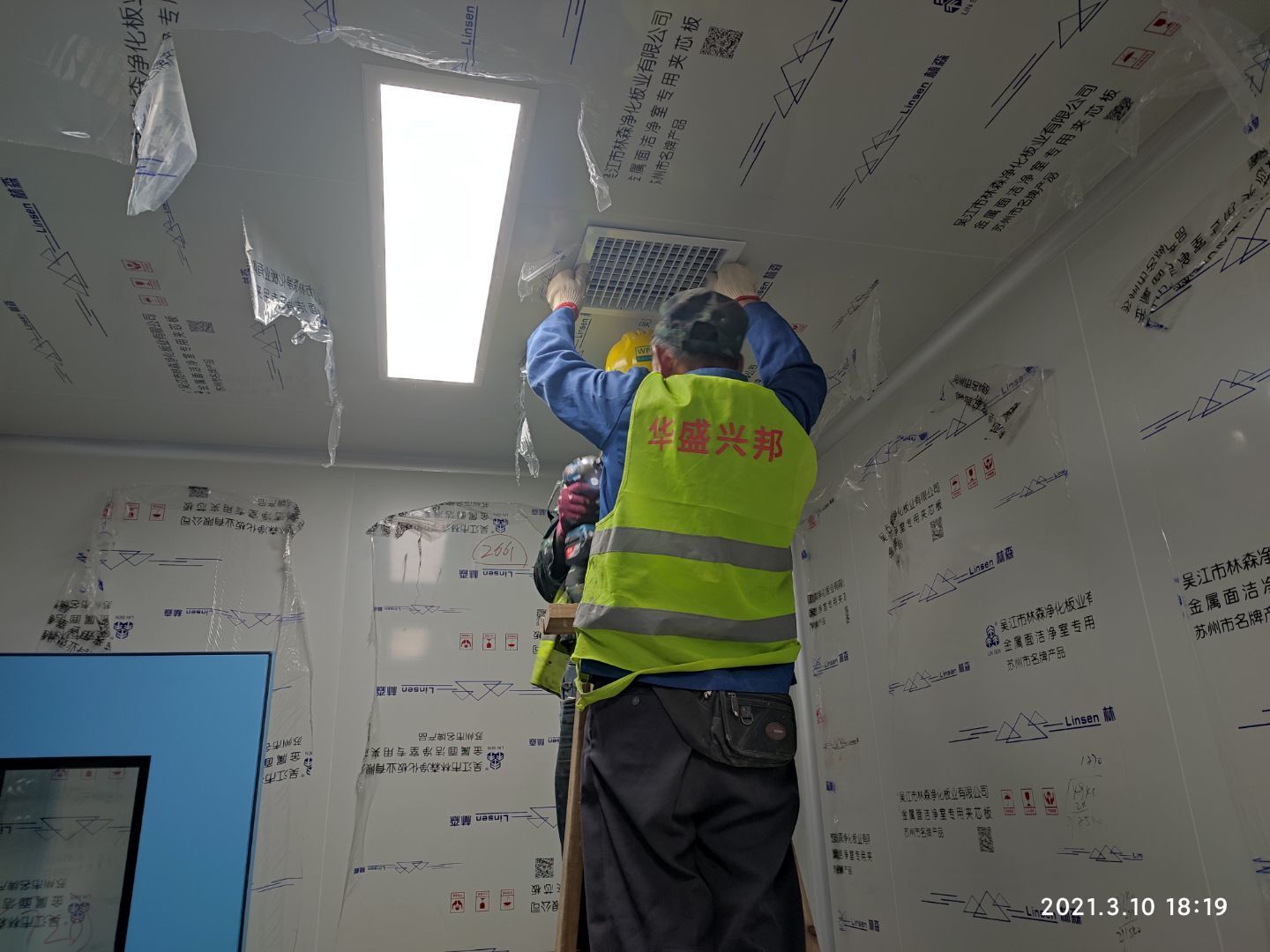 1,彩鋼板墻板完成75% 2,回風夾道安裝,撕膜,打膠完成15% 3,潔凈窗安裝完成60%。