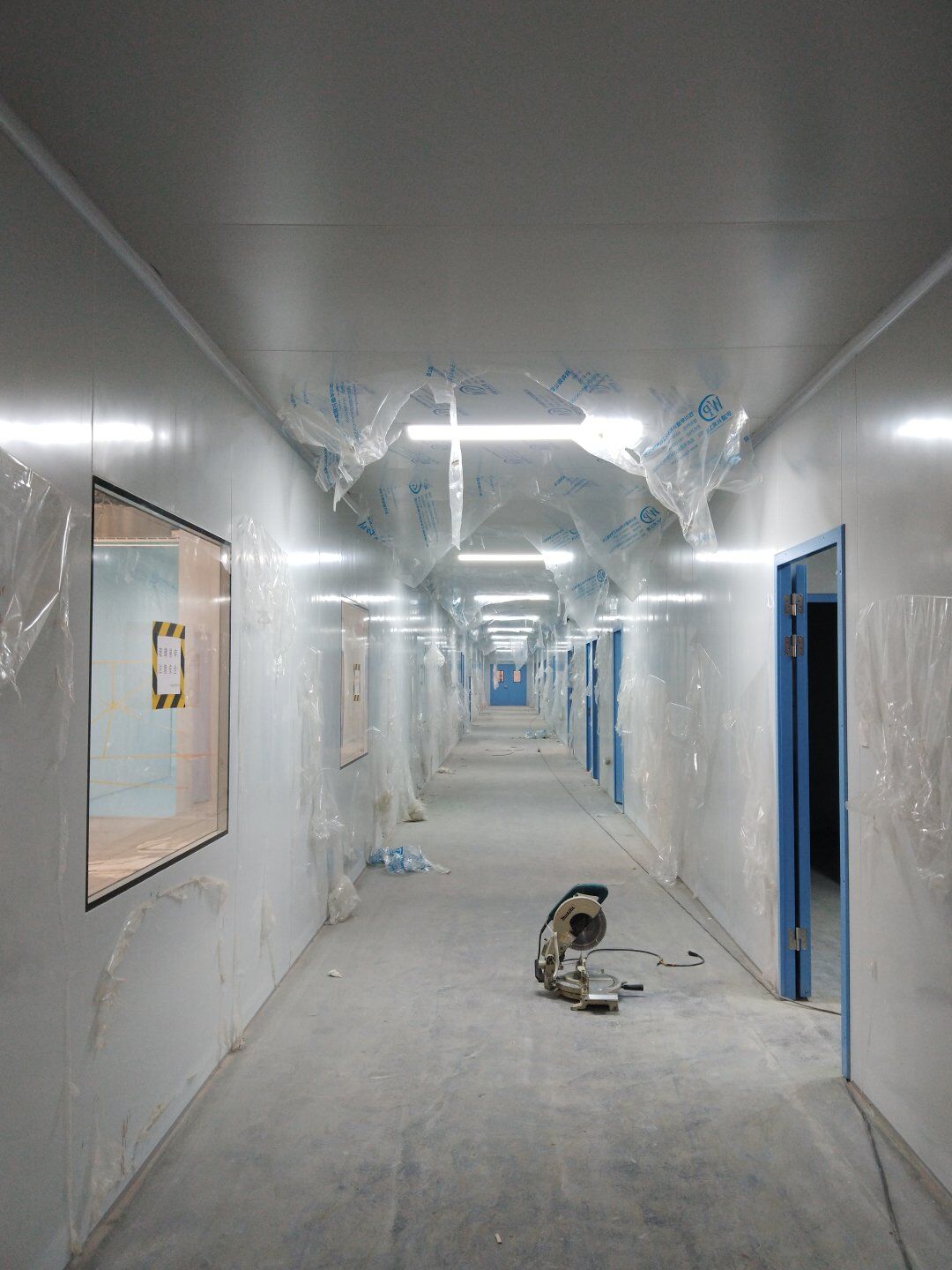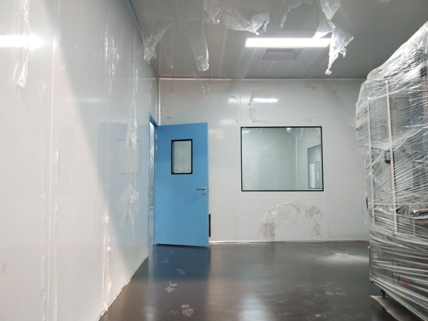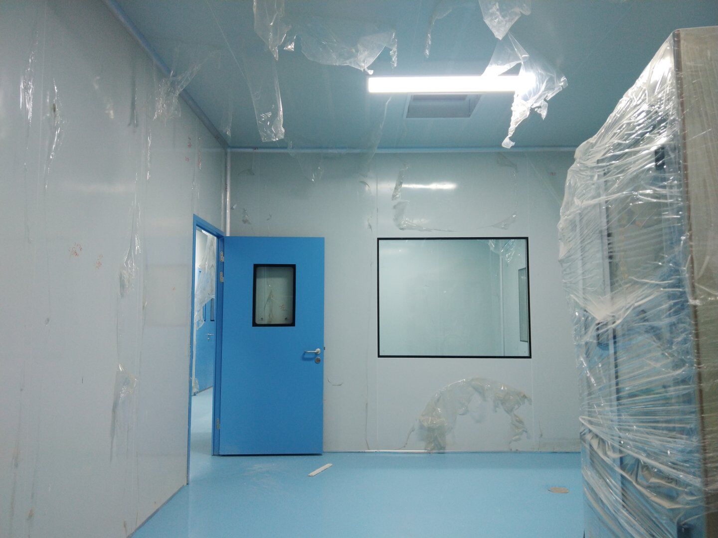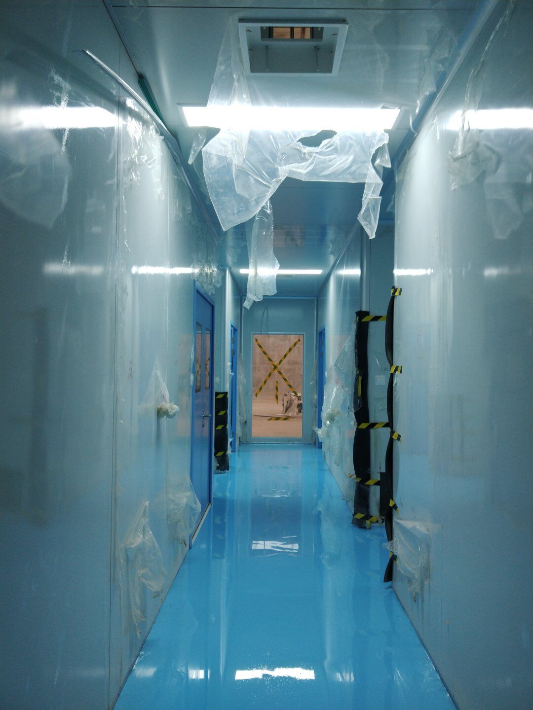 1,潔凈鋼質(zhì)門安裝完成70% 2,電氣配管穿線完成65%,插座及開關(guān)安裝完成75%,照明通電完成30% 3,高效箱保溫完成80%。