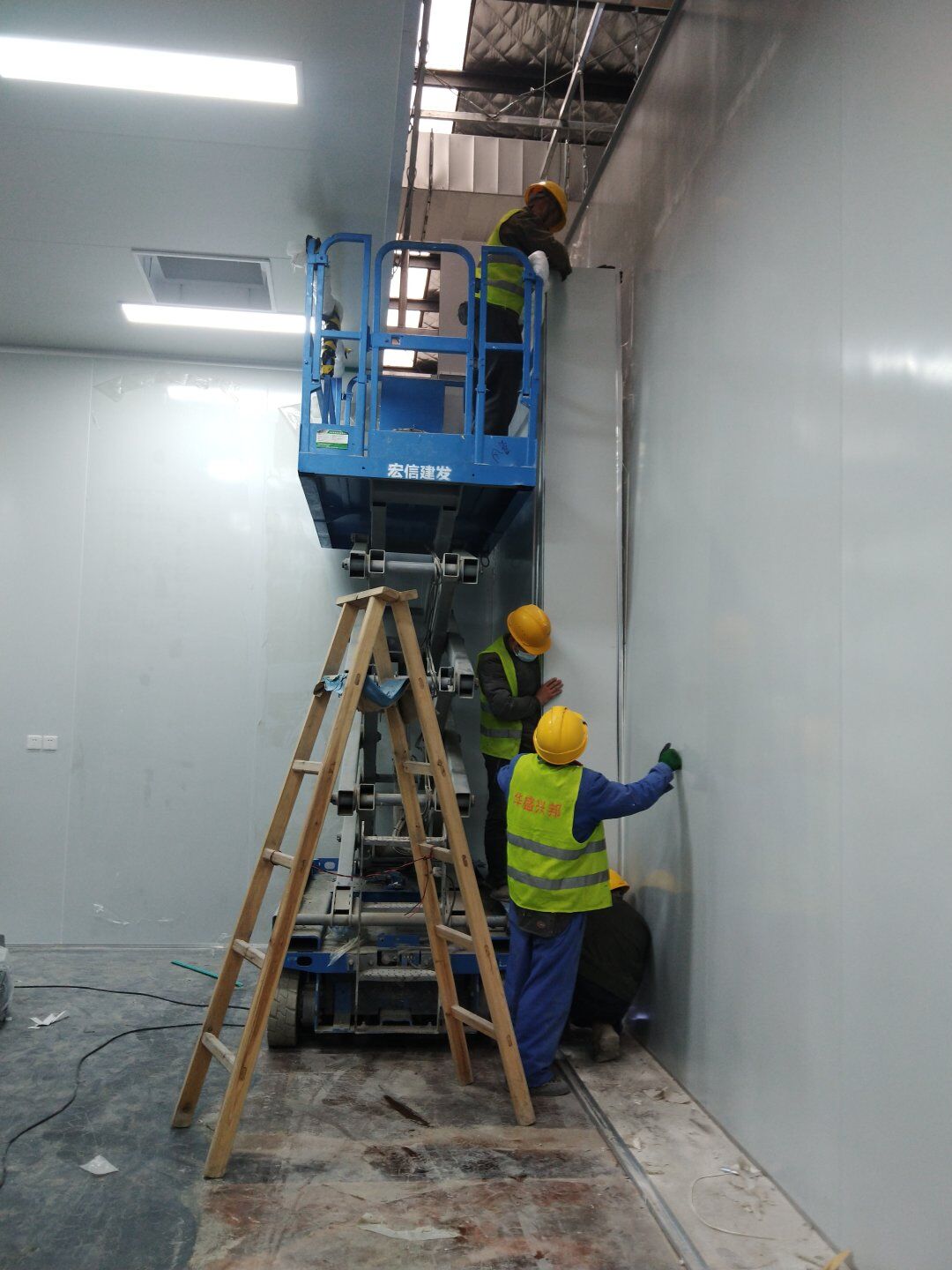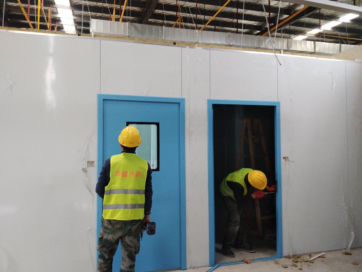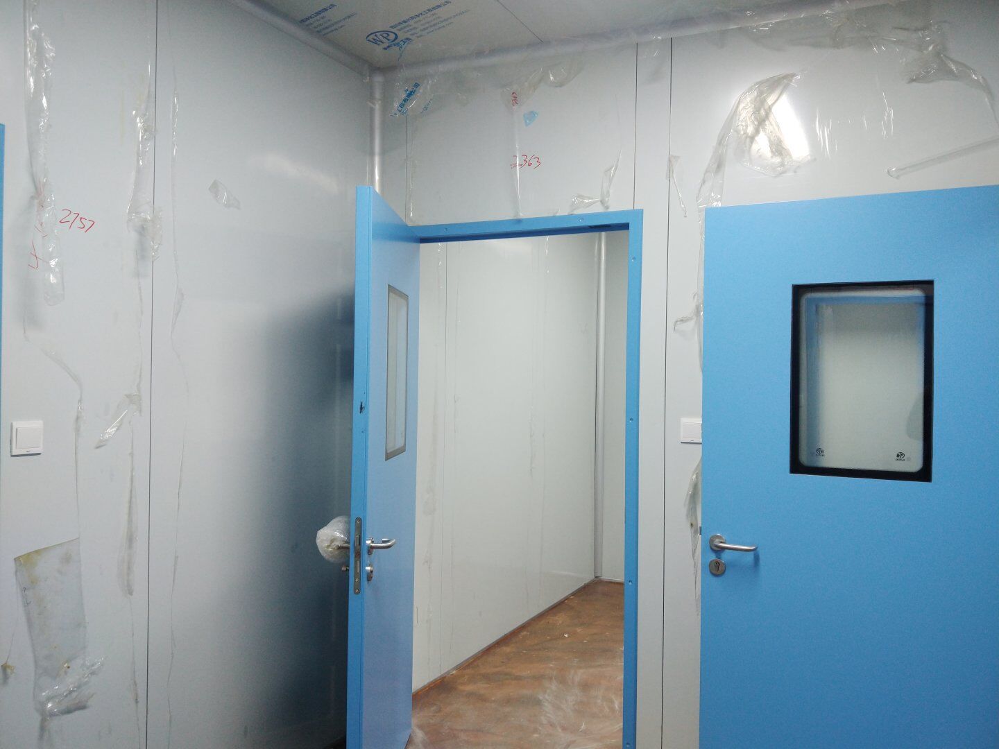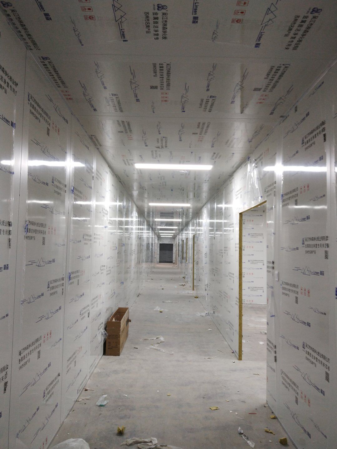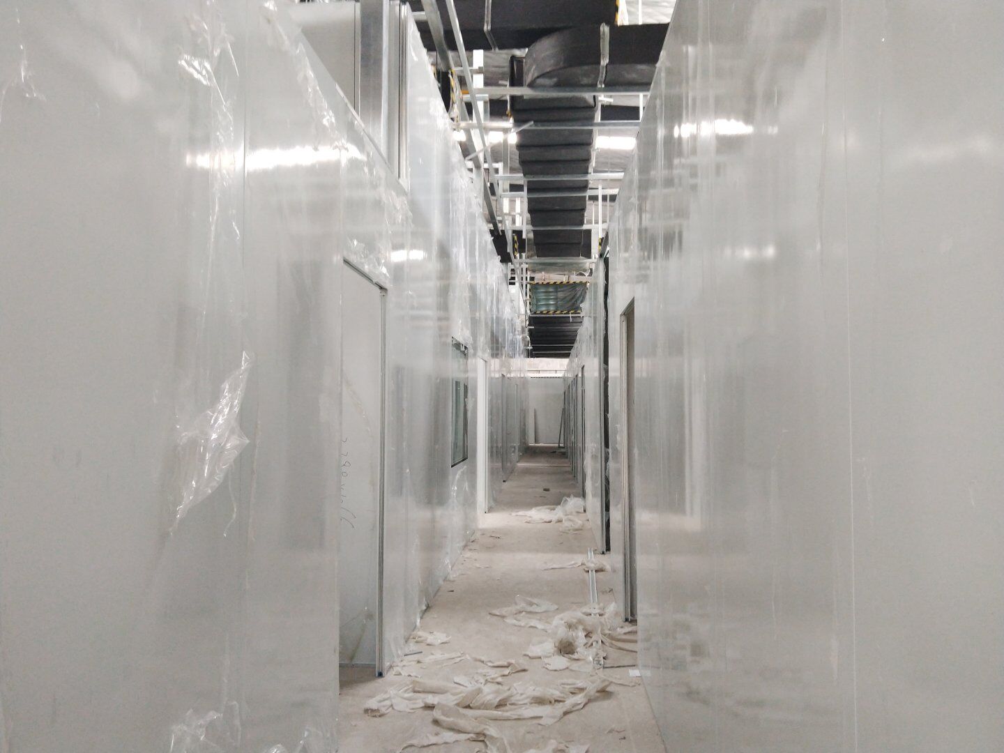 1,潔凈鋼質(zhì)門安裝完成70% 2,電氣配管穿線完成65%,插座及開關(guān)安裝完成75%,照明通電完成30% 3,高效箱保溫完成80%。