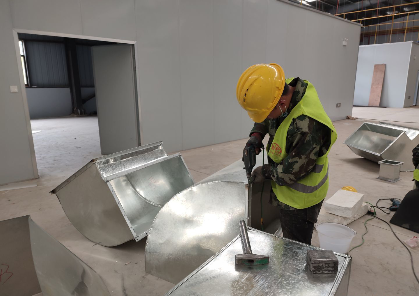 液體車間: 1,空調(diào)冷凍水管完成安裝15% 飲片車間: 1,潔凈鋼質(zhì)門安裝完成10% 2,風管組裝完成90%