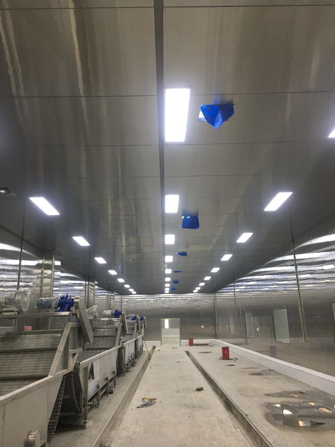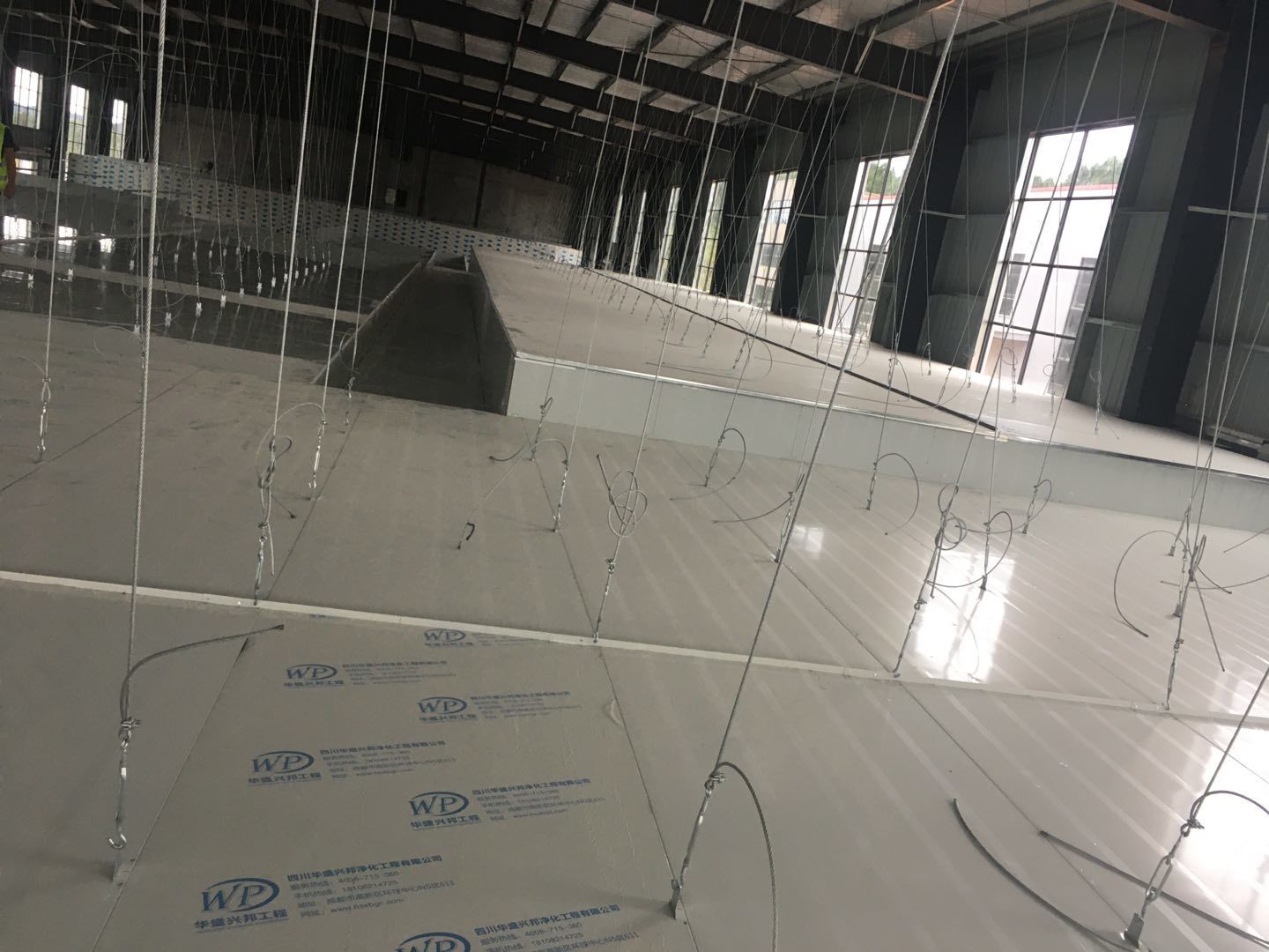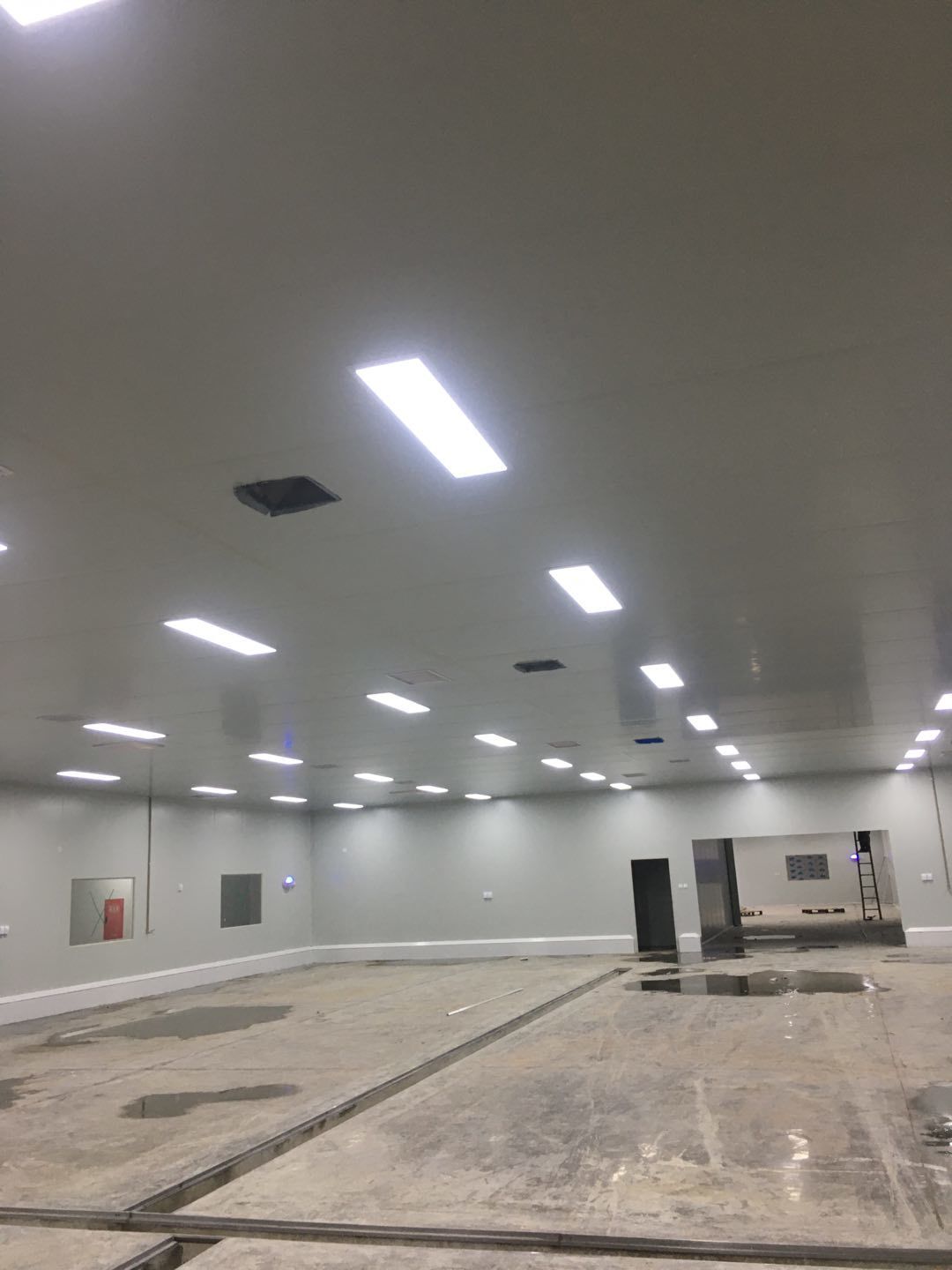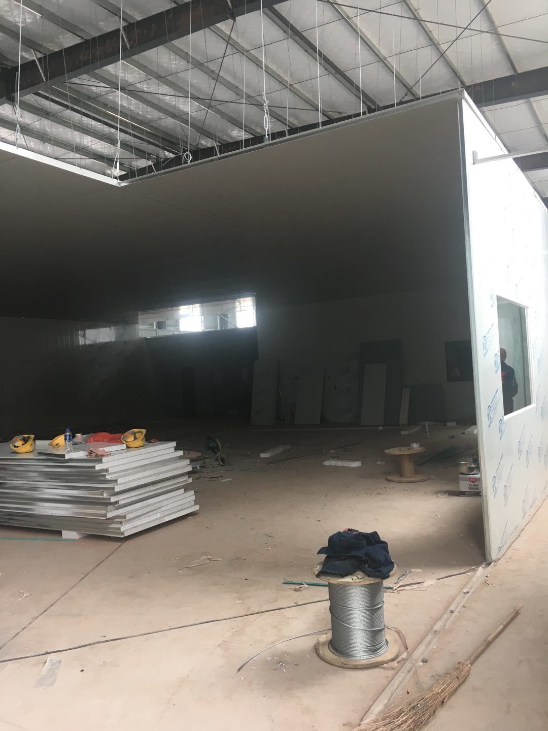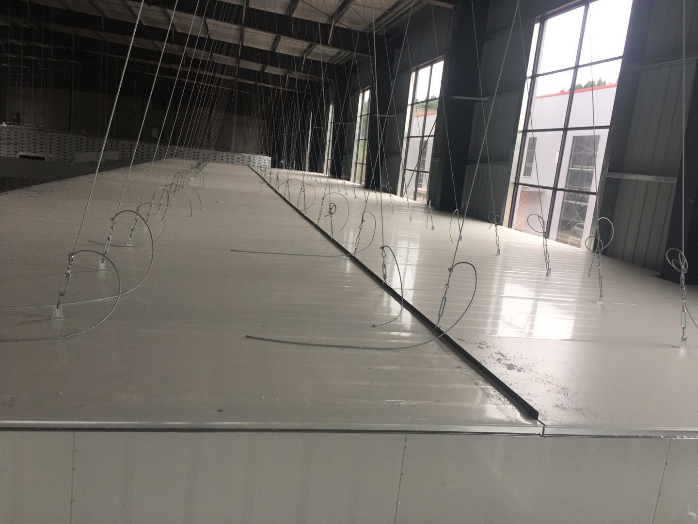 彩鋼頂板除預(yù)留外完成90%,門、窗、各完成90%地坪固化處理,完成80%圓狐及底座同時(shí)完成65%電、完成70%