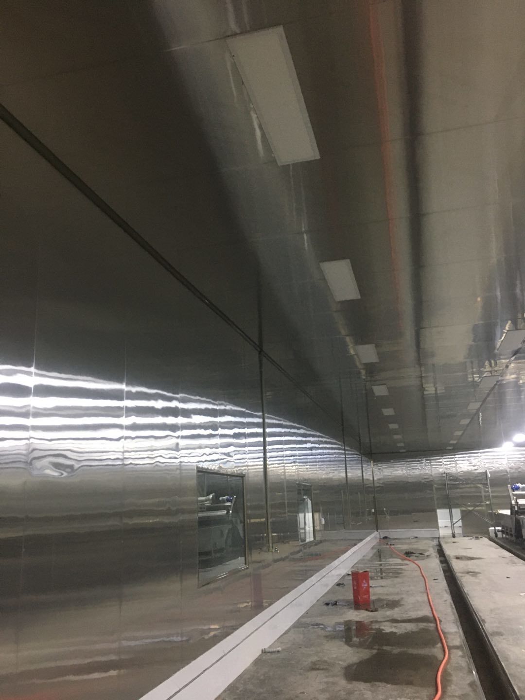 彩鋼頂板除預(yù)留外完成95%門、窗、各完成70%,地坪固化處理,完成50%圓狐及底座同時(shí)完成70%電、完成60%