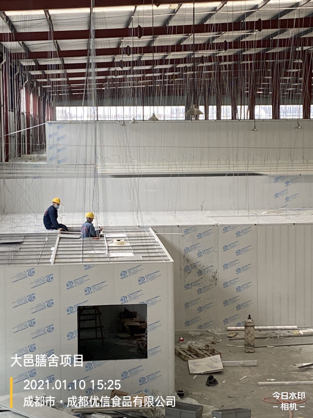 彩鋼墻板完成80%,頂板完成15%,鋼結(jié)構(gòu)完成100%,