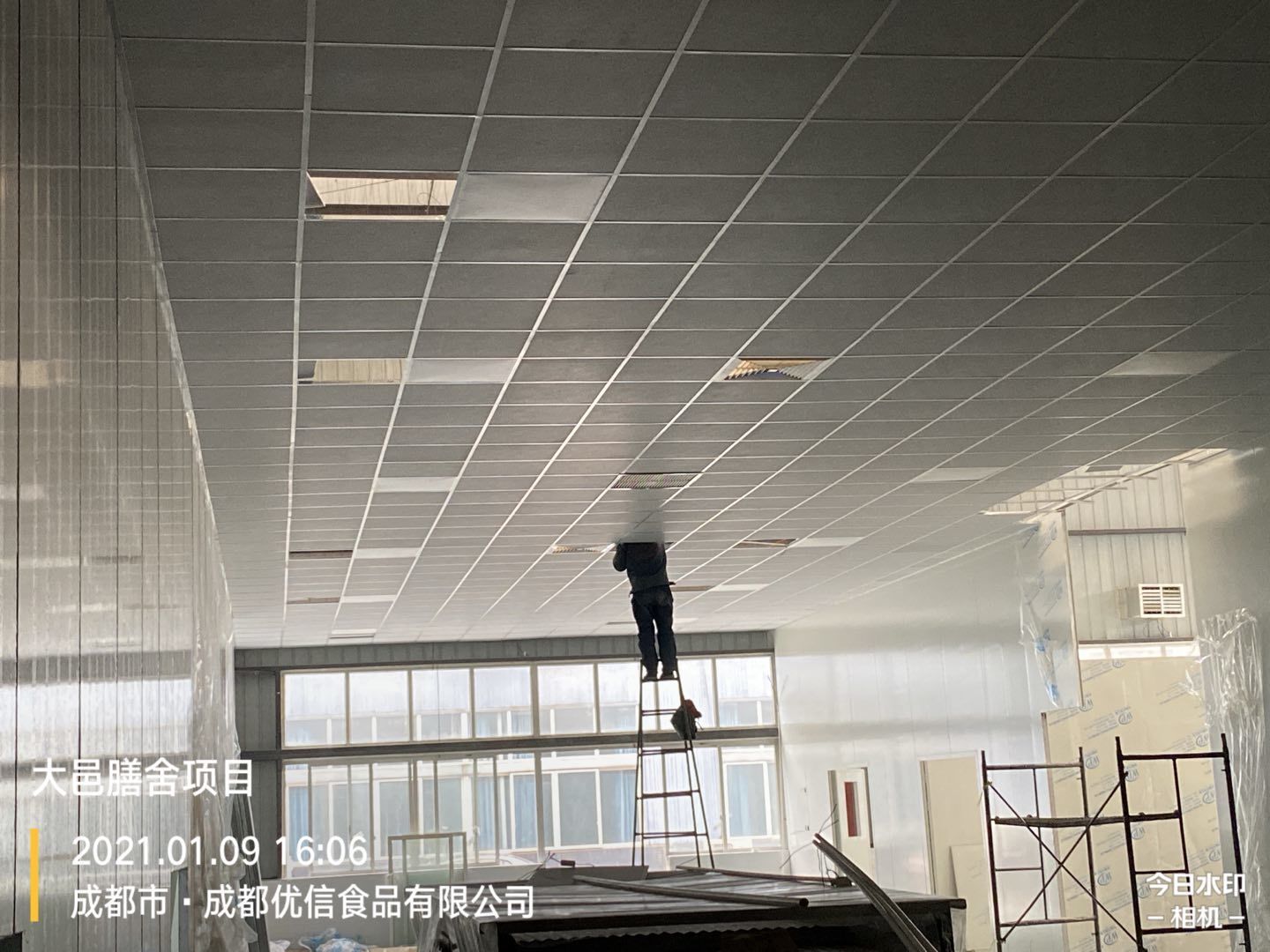 大邑膳舍食品項(xiàng)目:擋水墻貼磚完成90%,花紋鋼板、樓梯板到場(chǎng),樓梯踏步開始焊接,彩鋼墻板立板完成5%。
