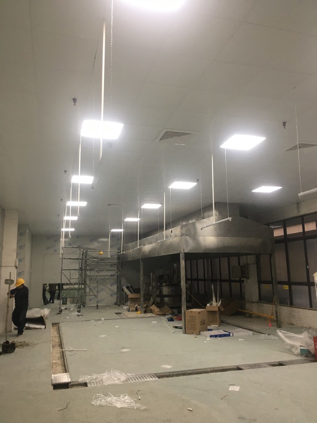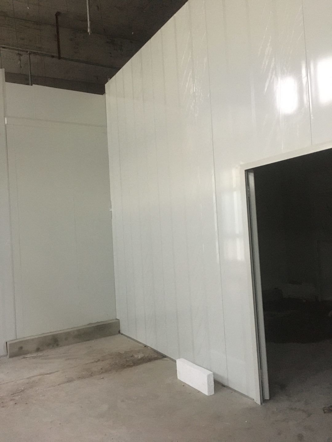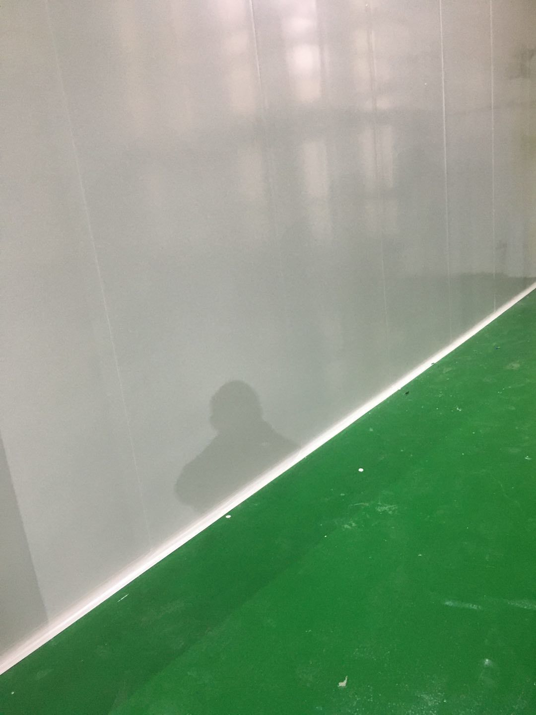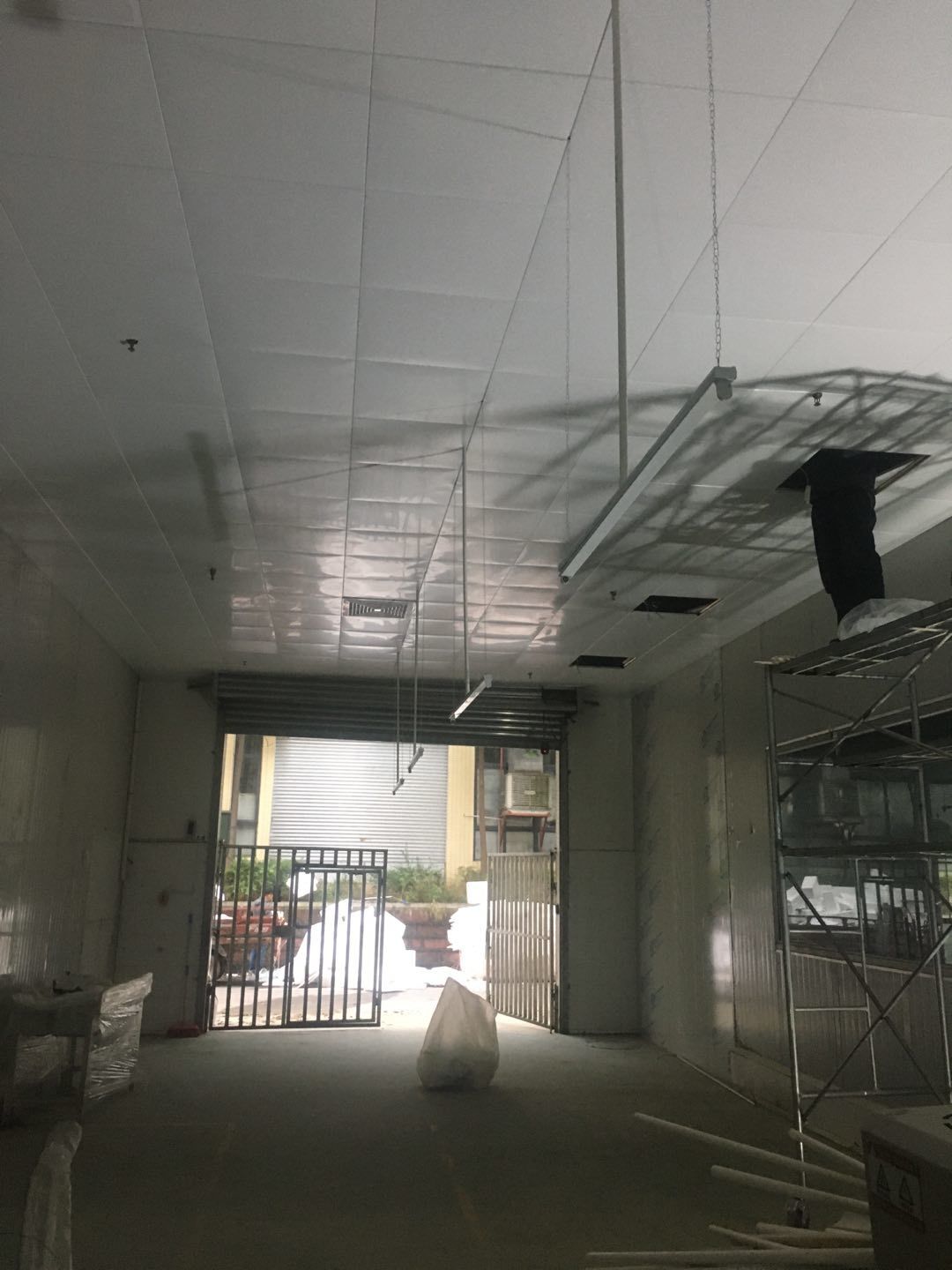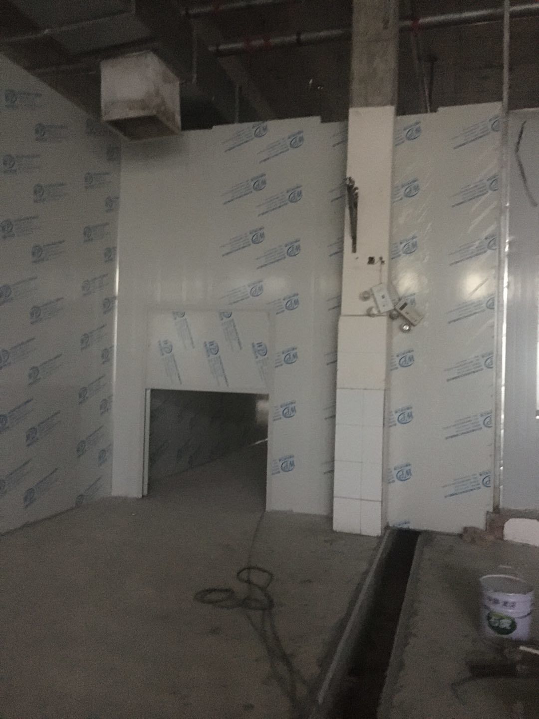 排水溝邊恢復(fù)完成100%;土建原有柱子瓷磚破碎恢復(fù)95%;彩鋼墻板完成100%;原有土建墻開門洞及恢復(fù)完成100%;門、窗完成100%;水、電完成40%;收尾完成量,撕膜、打密封膠、完成55%。