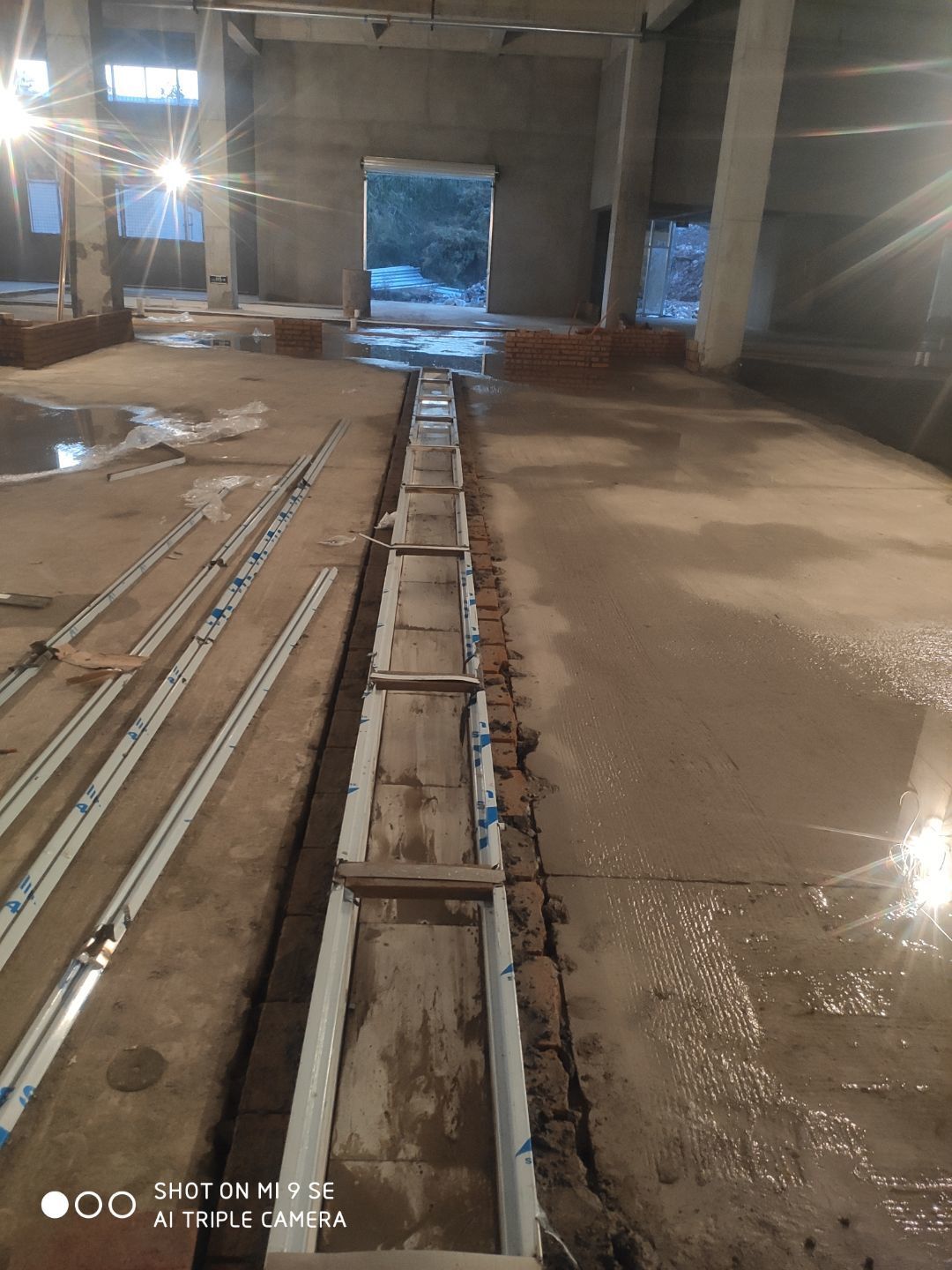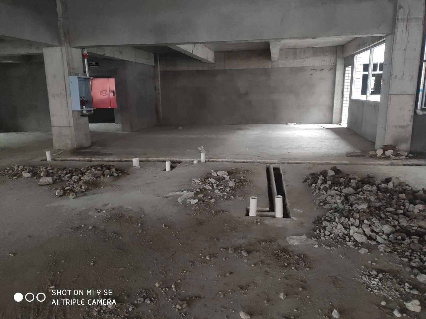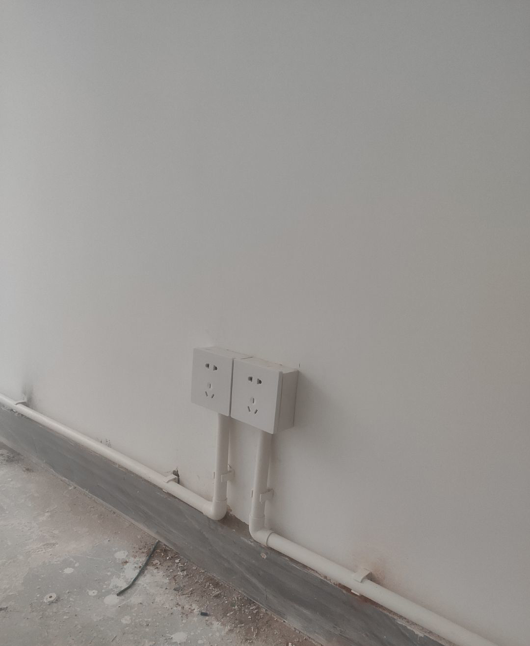 建渣清理完成,排水管安裝,臨時照明電接通
