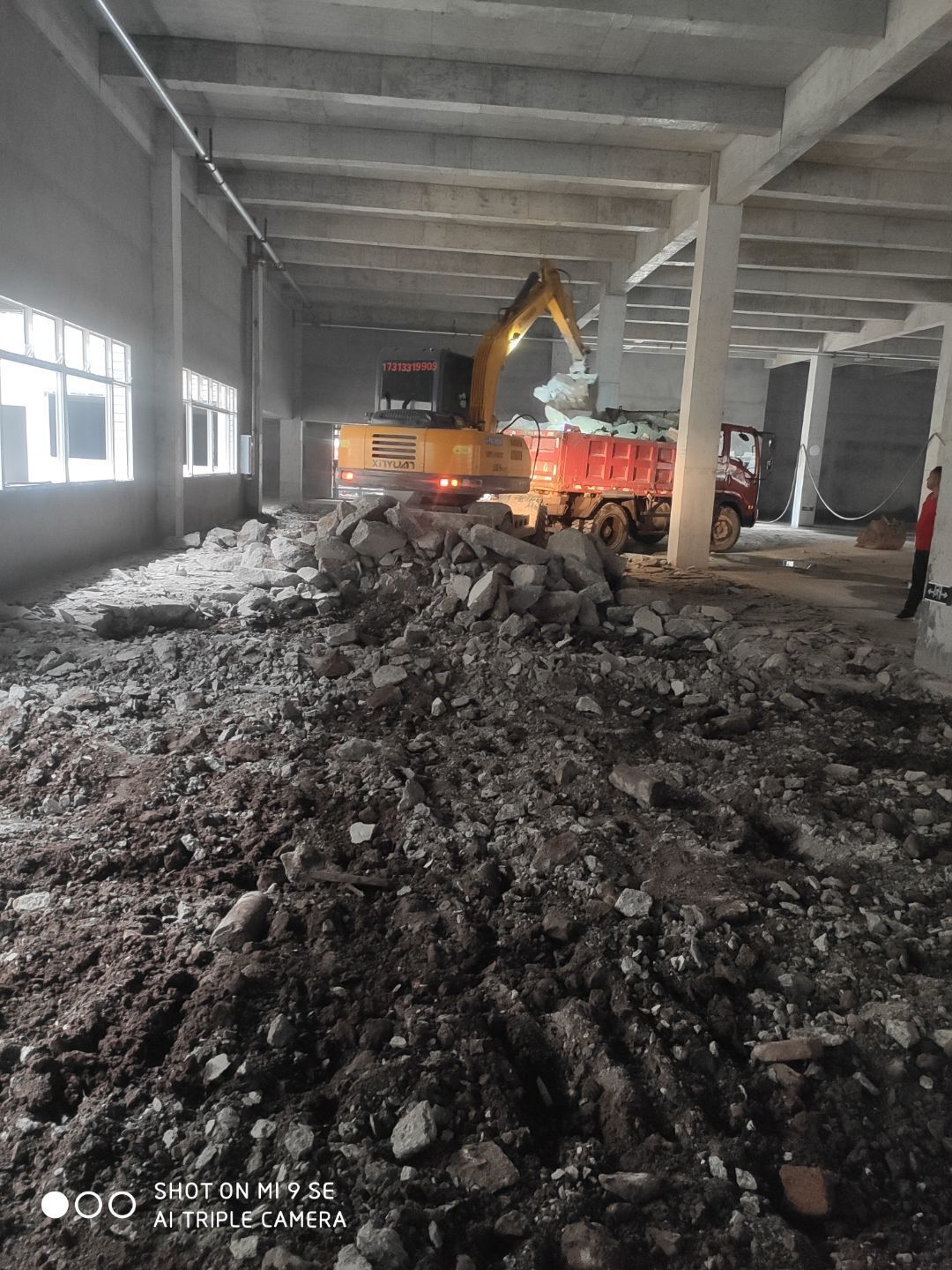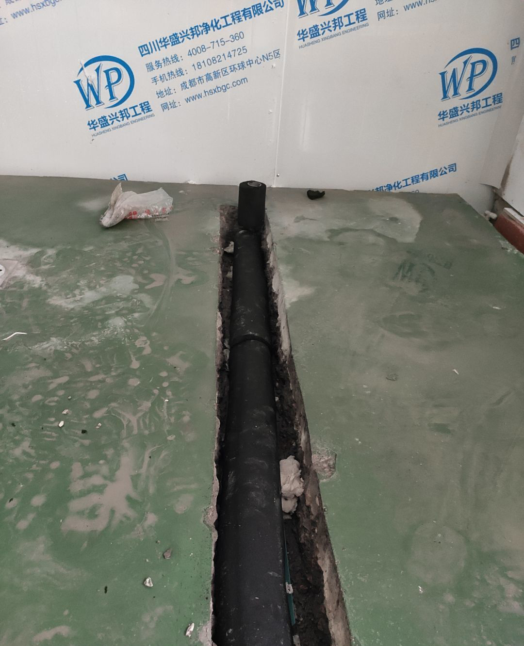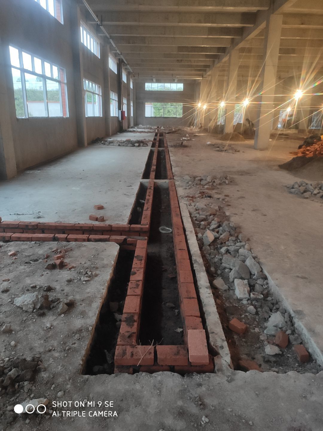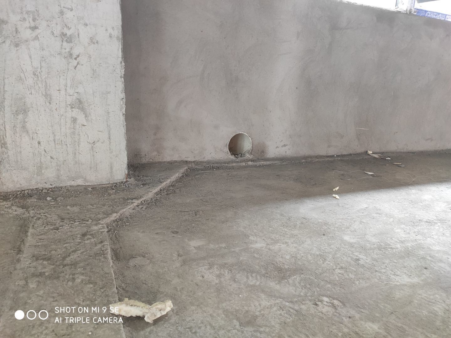 建渣清理完成,排水管安裝,臨時照明電接通