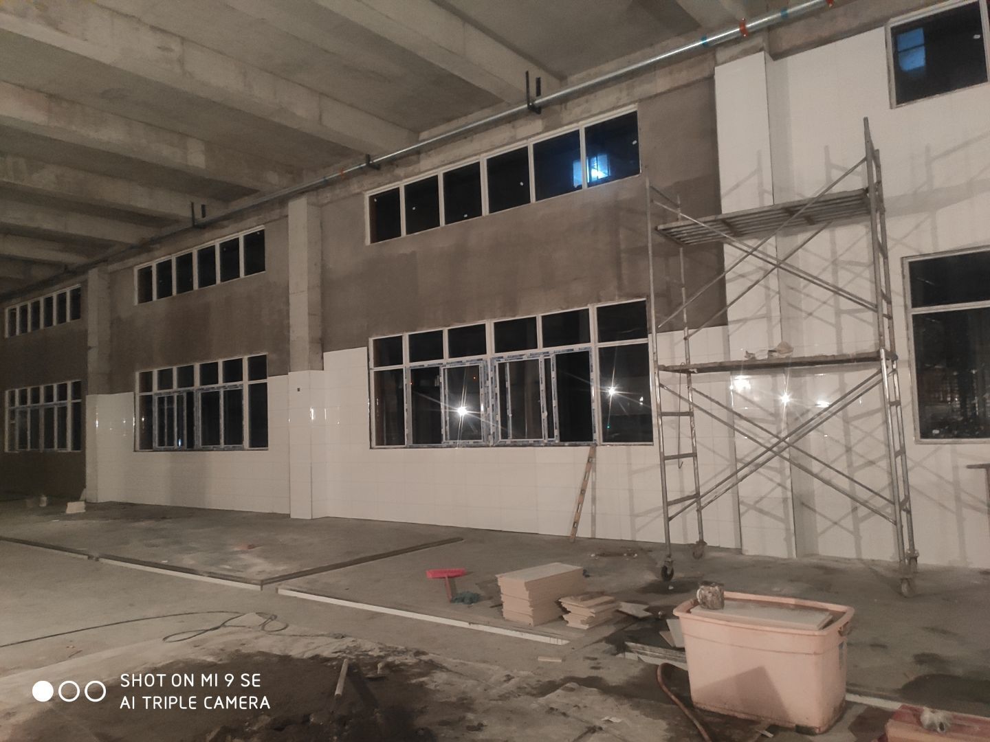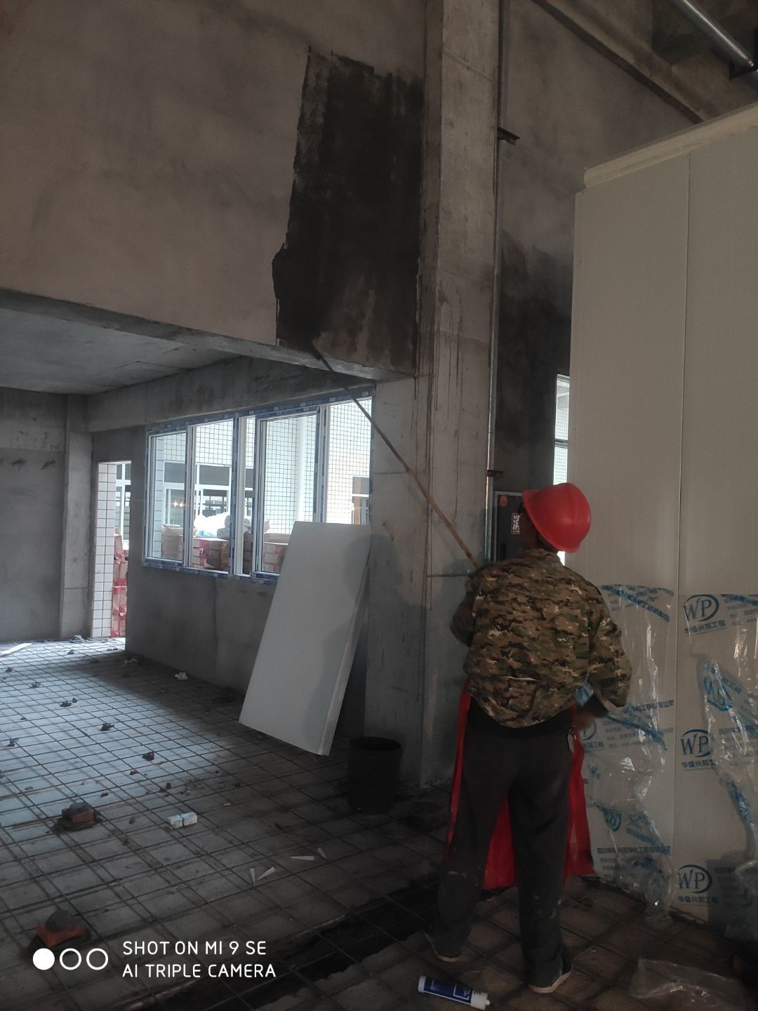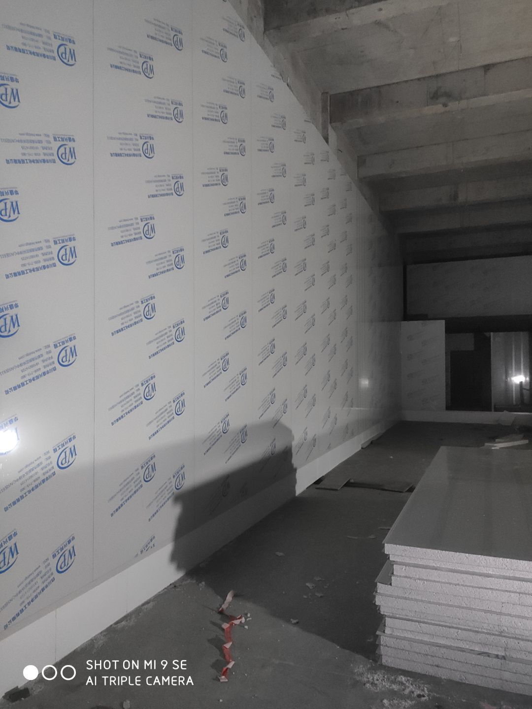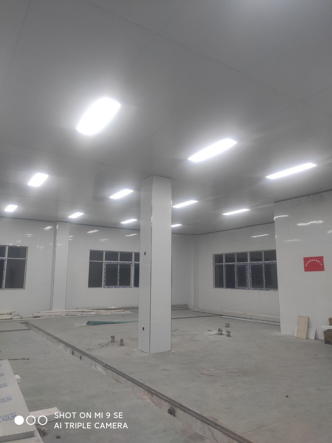 中央廚房開始打膠 二車間材料進場開始立墻板