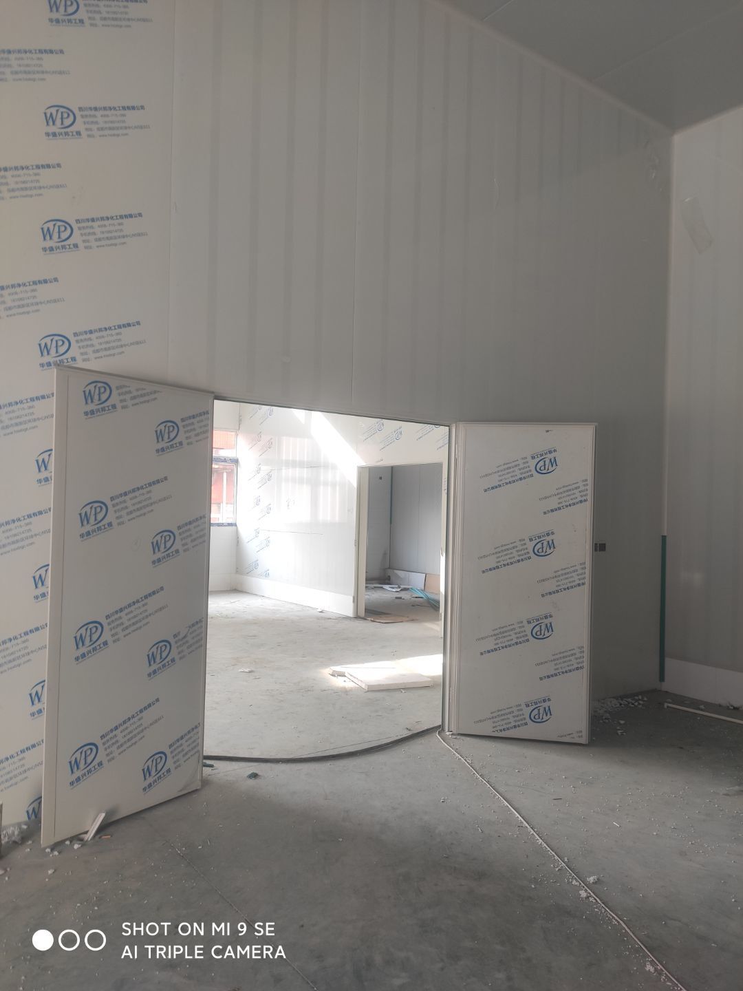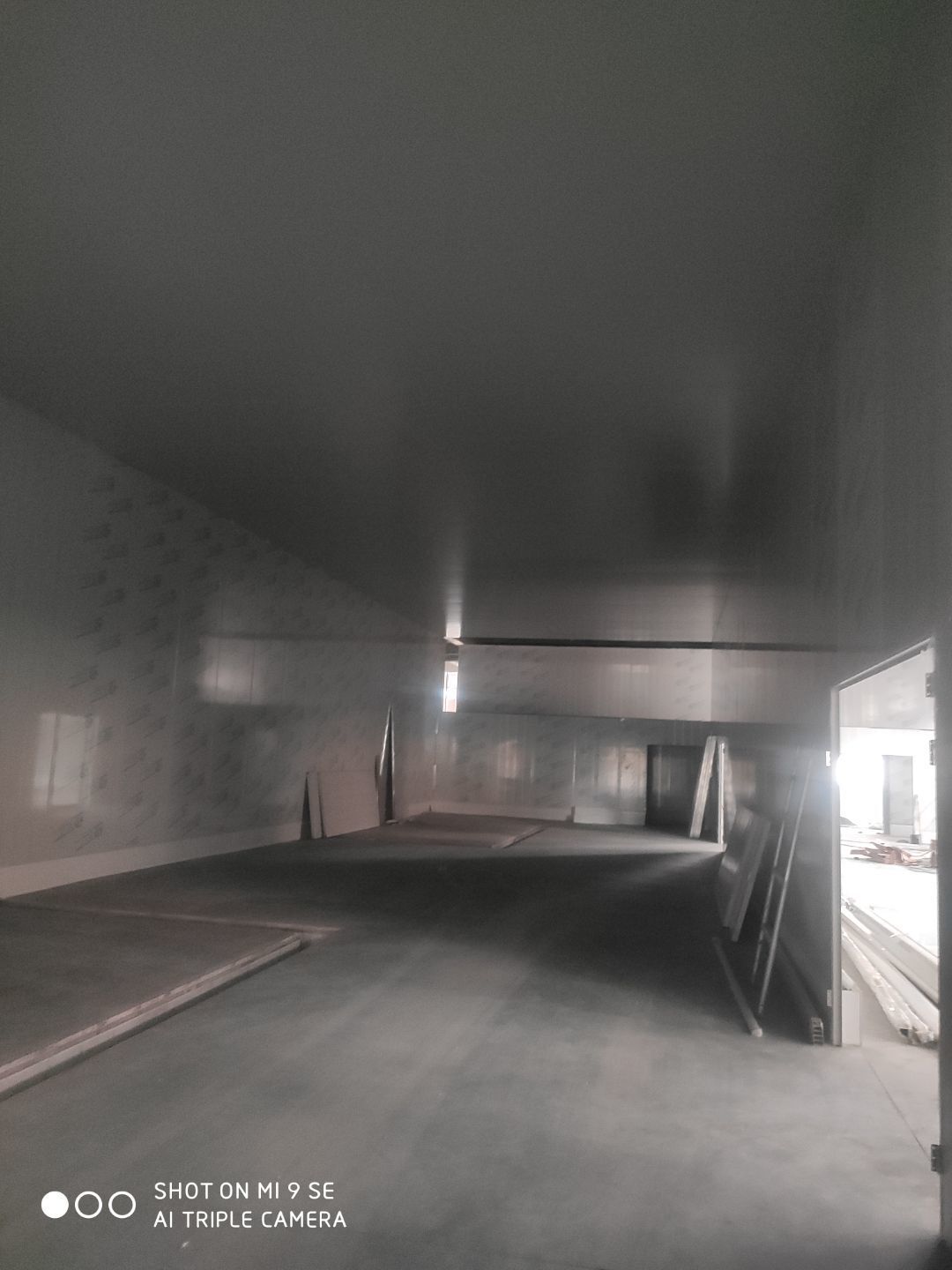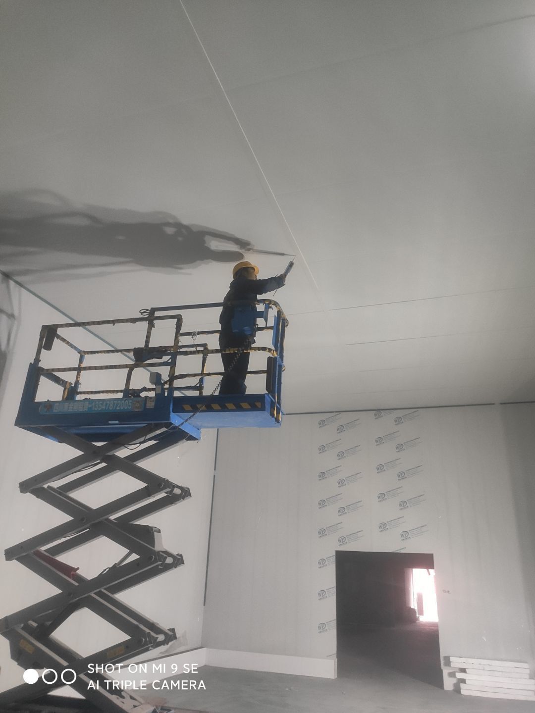 墻板頂板完成百分之九十 凍庫設(shè)備安裝完成 車間水電安裝已經(jīng)開始 乳膠漆進場