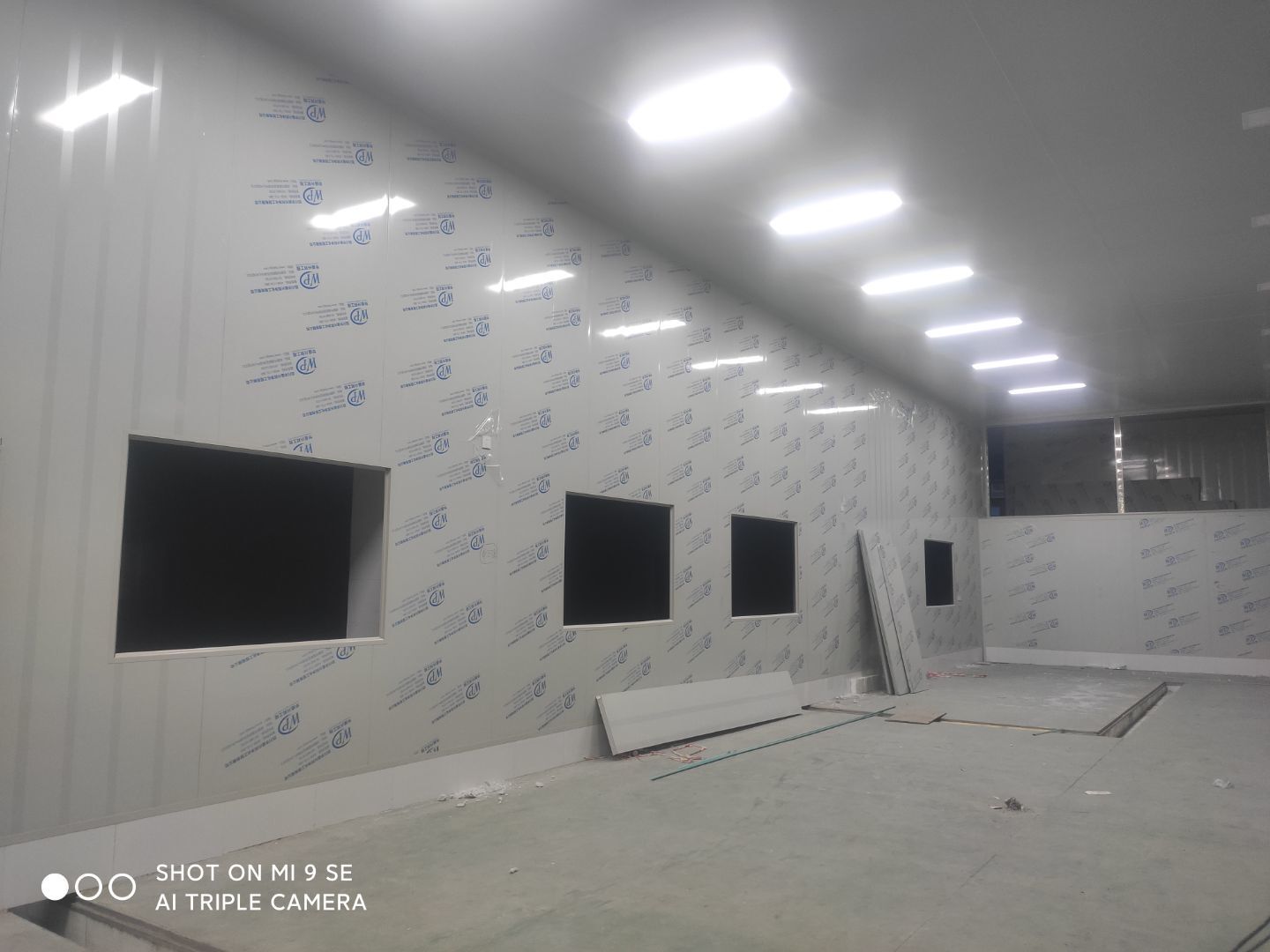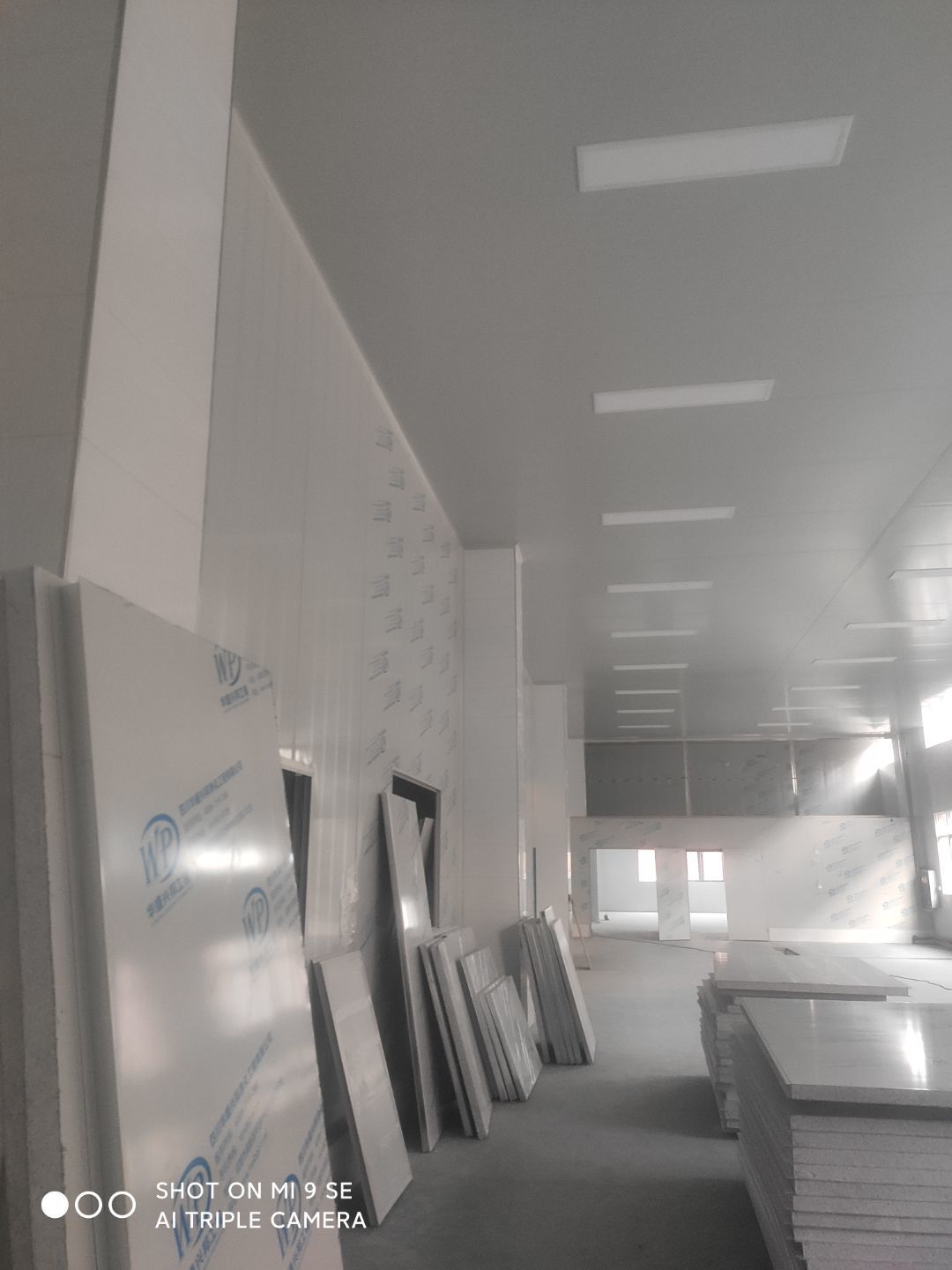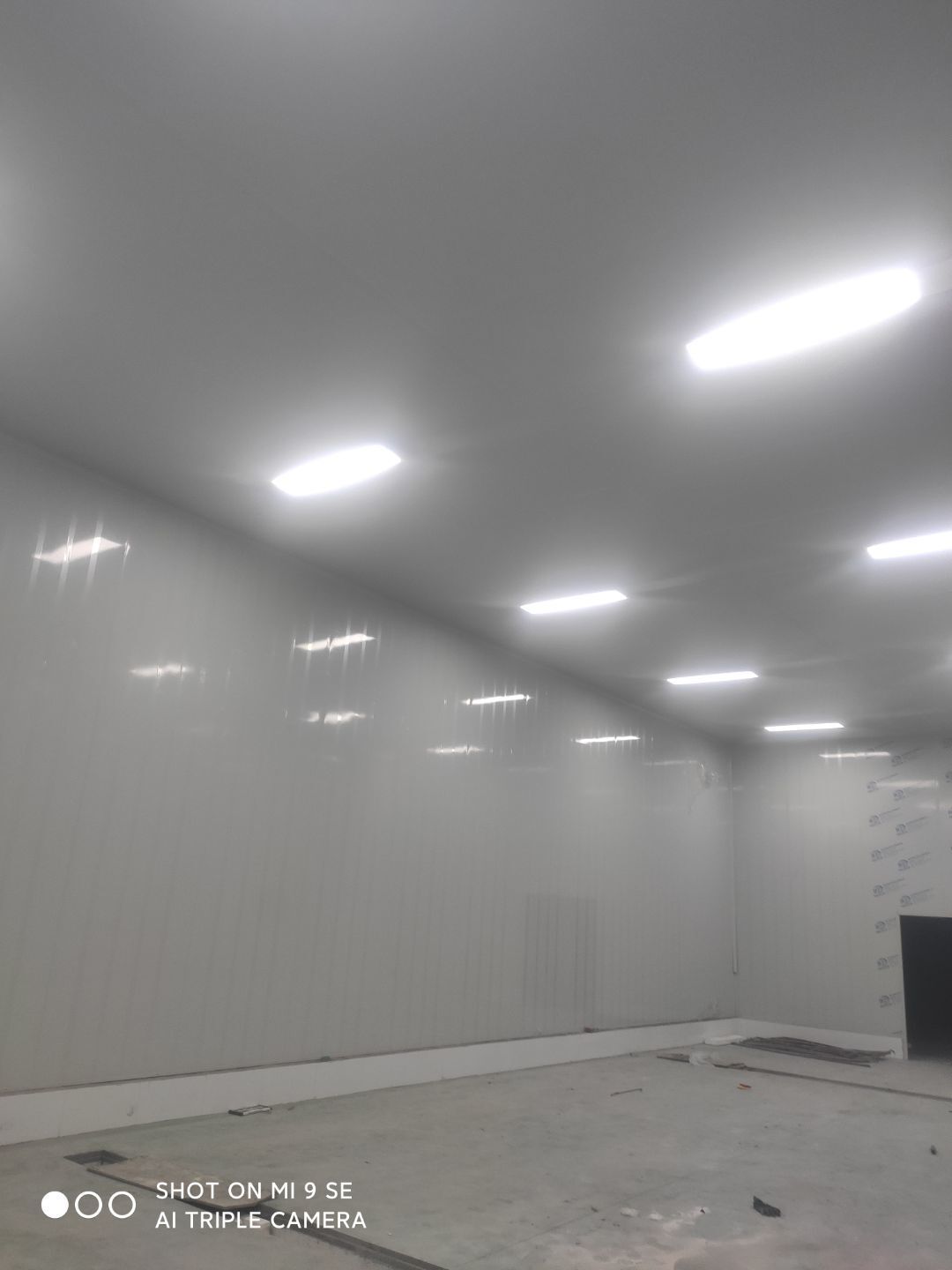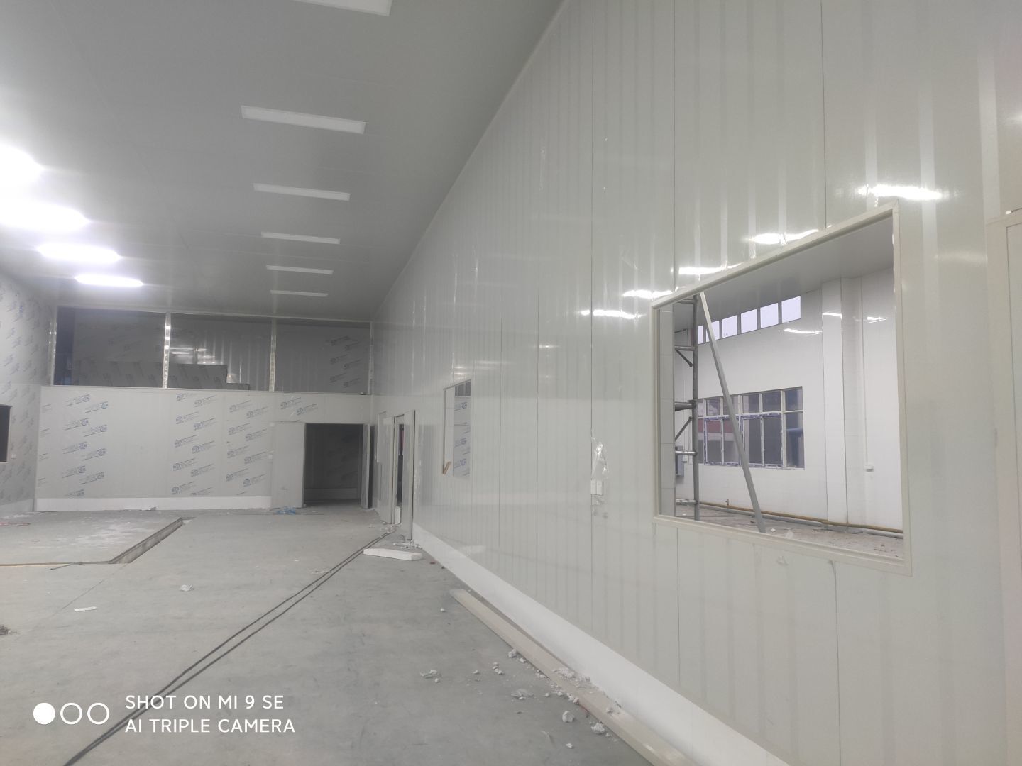 中央廚房車間燈安裝完成 米面車間立板完成 凍庫線路安裝完成