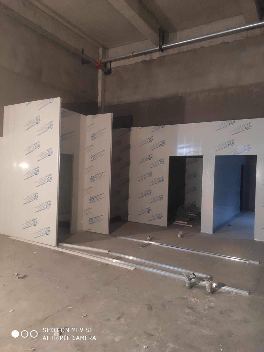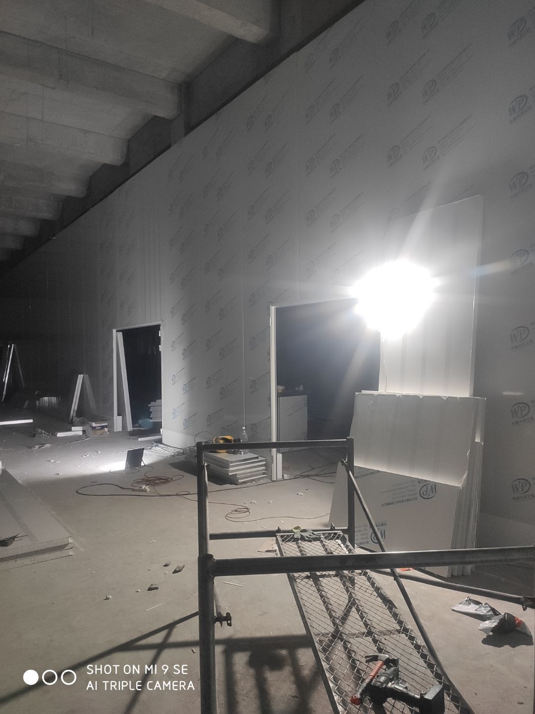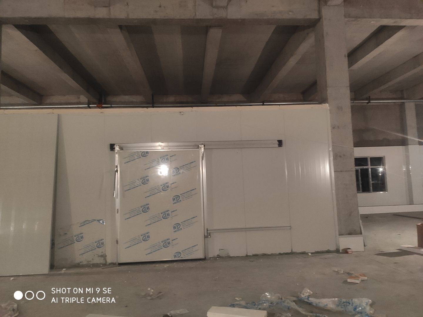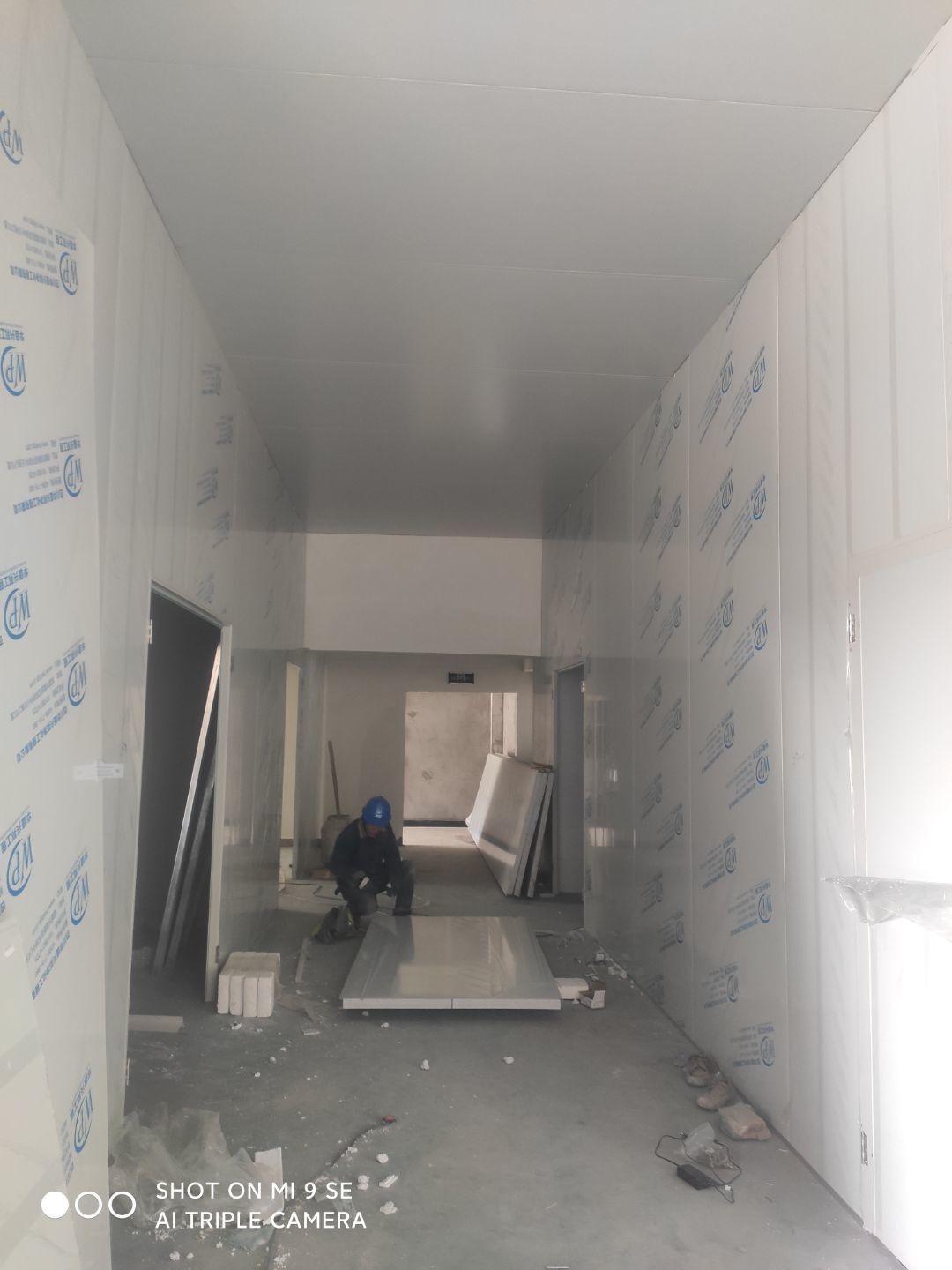 中央廚房車間燈安裝完成 米面車間立板完成 凍庫線路安裝完成