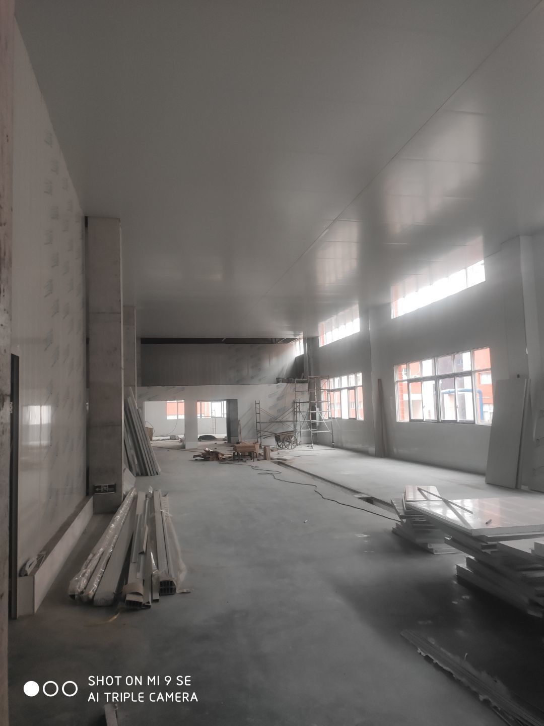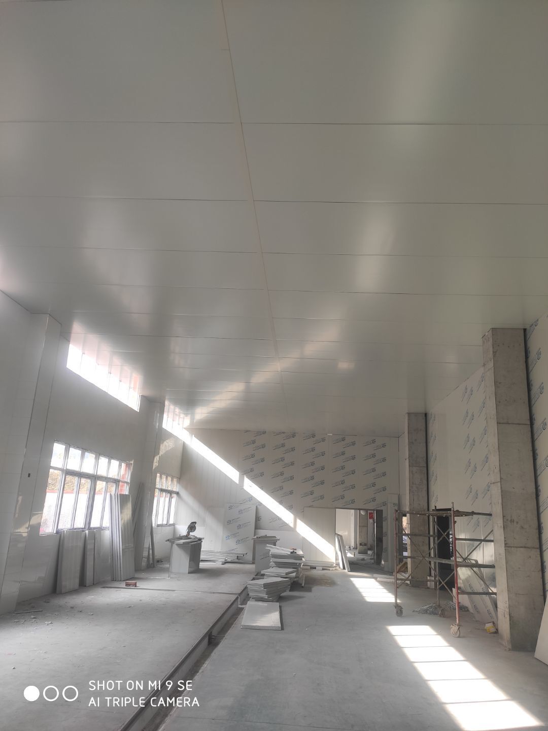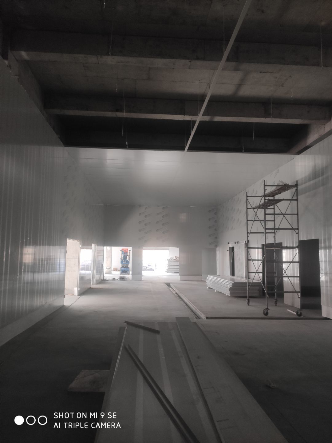 一車間吊頂完成 二車間擋水墻完成 凍庫主體完成 二車間開始立墻板