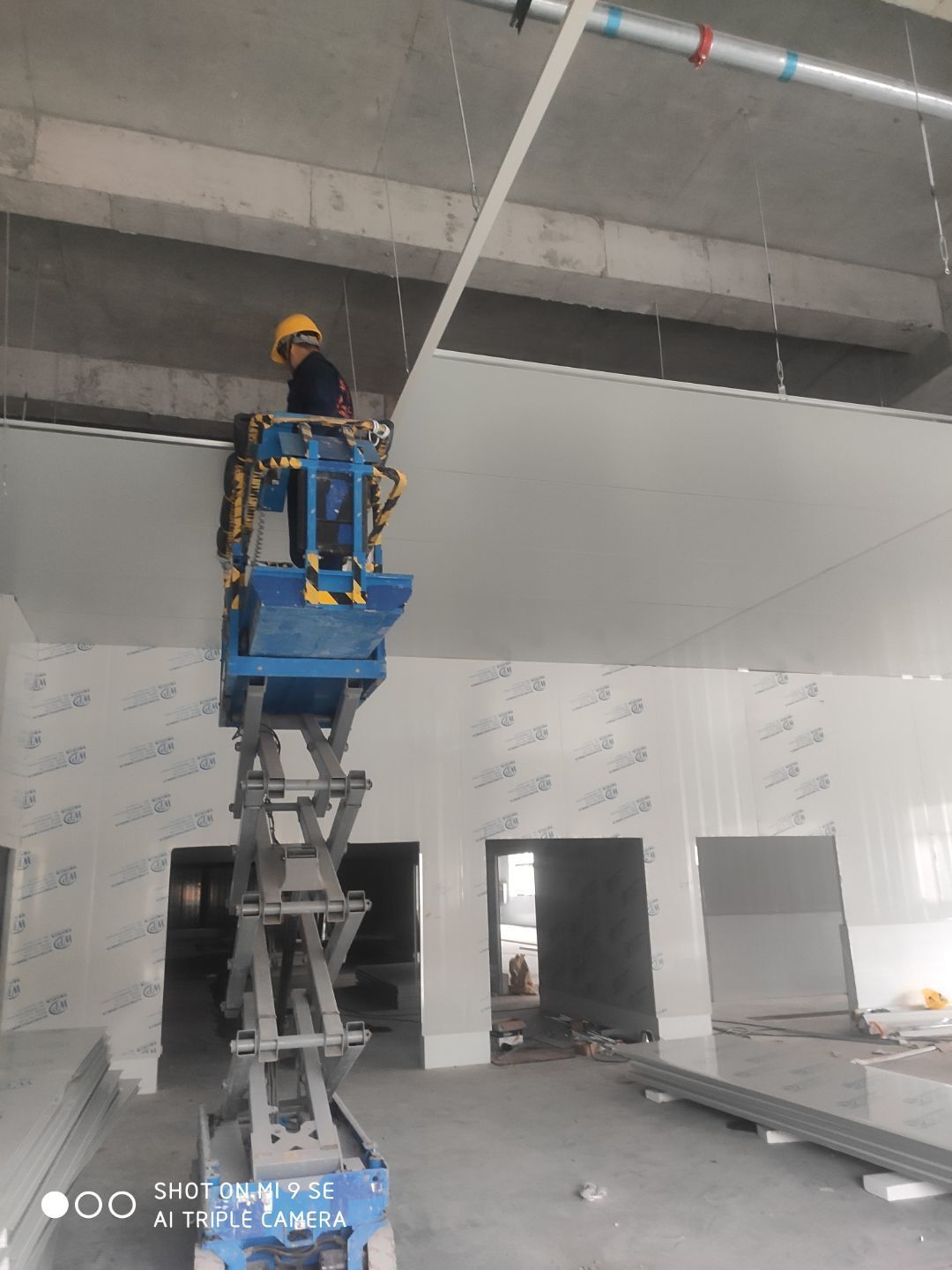 車間板材到現(xiàn)場, 一車間吊頂完成百分之八十