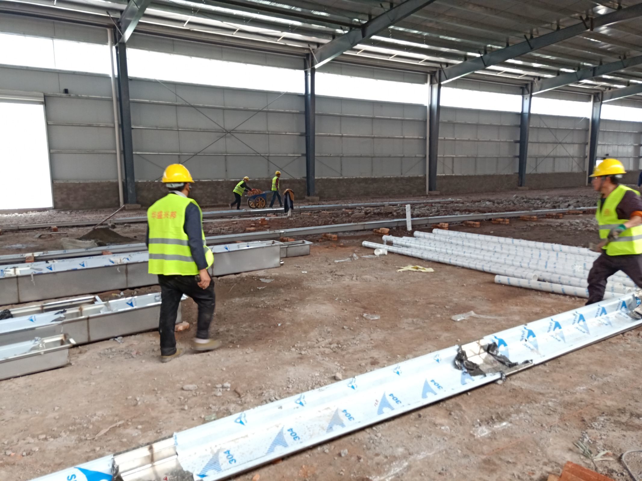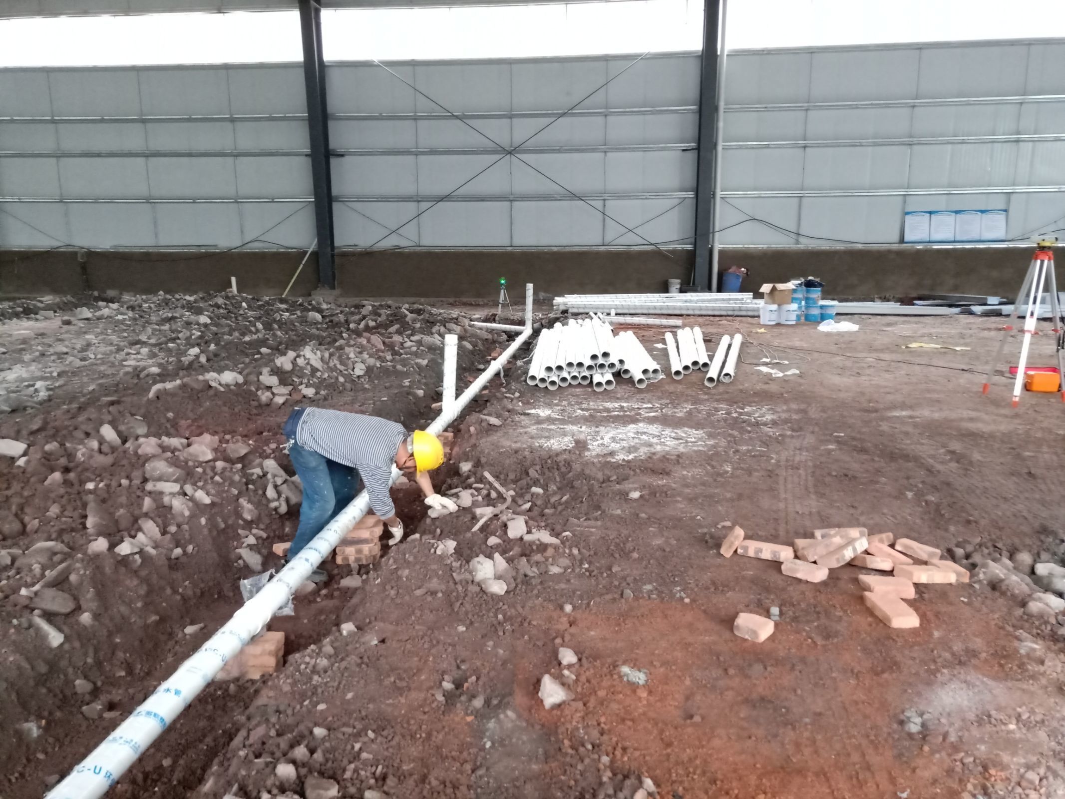 1、4號廠房主排水管安裝完成。 2、4號廠房排水溝焊接完成百分之六十。