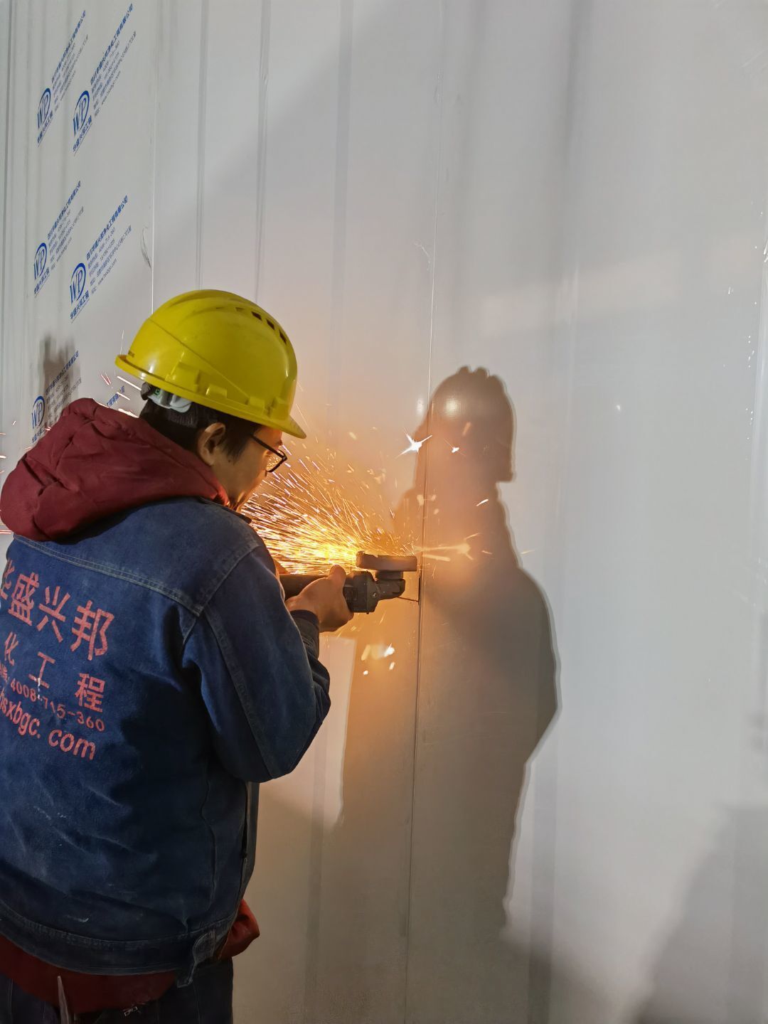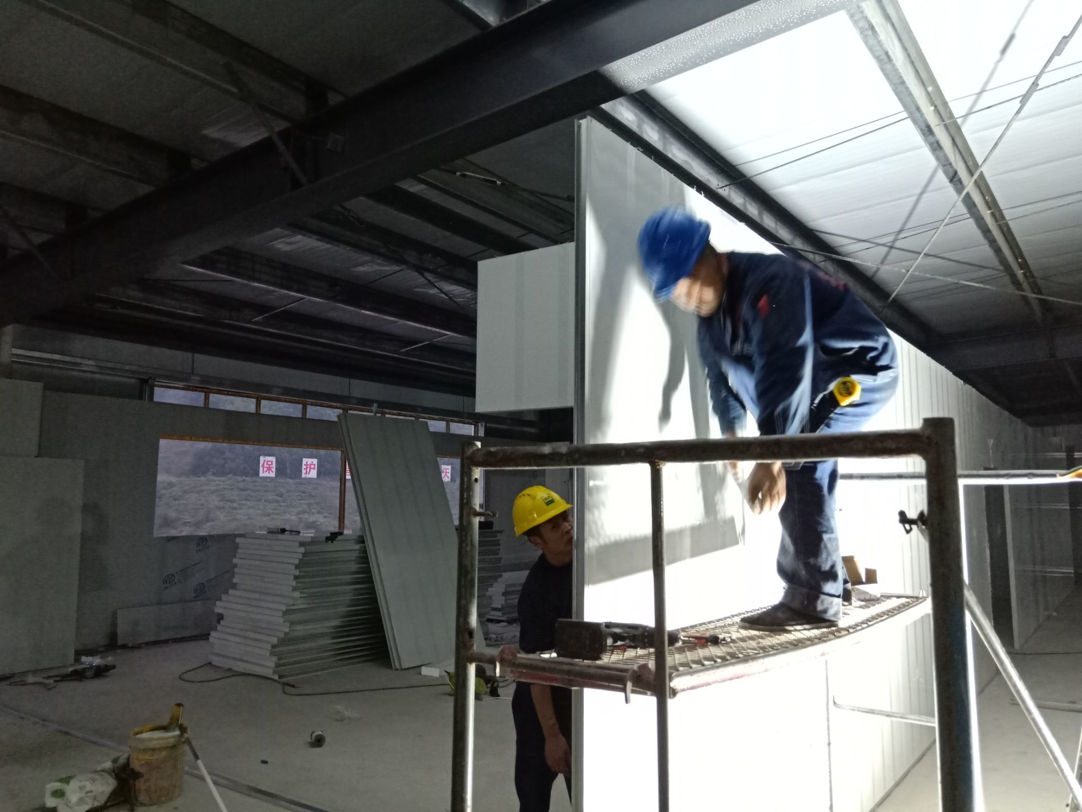 3號車間2樓平臺實(shí)驗(yàn)室辦公室區(qū)域墻板安裝完成;3號車間水溝焊接完成。