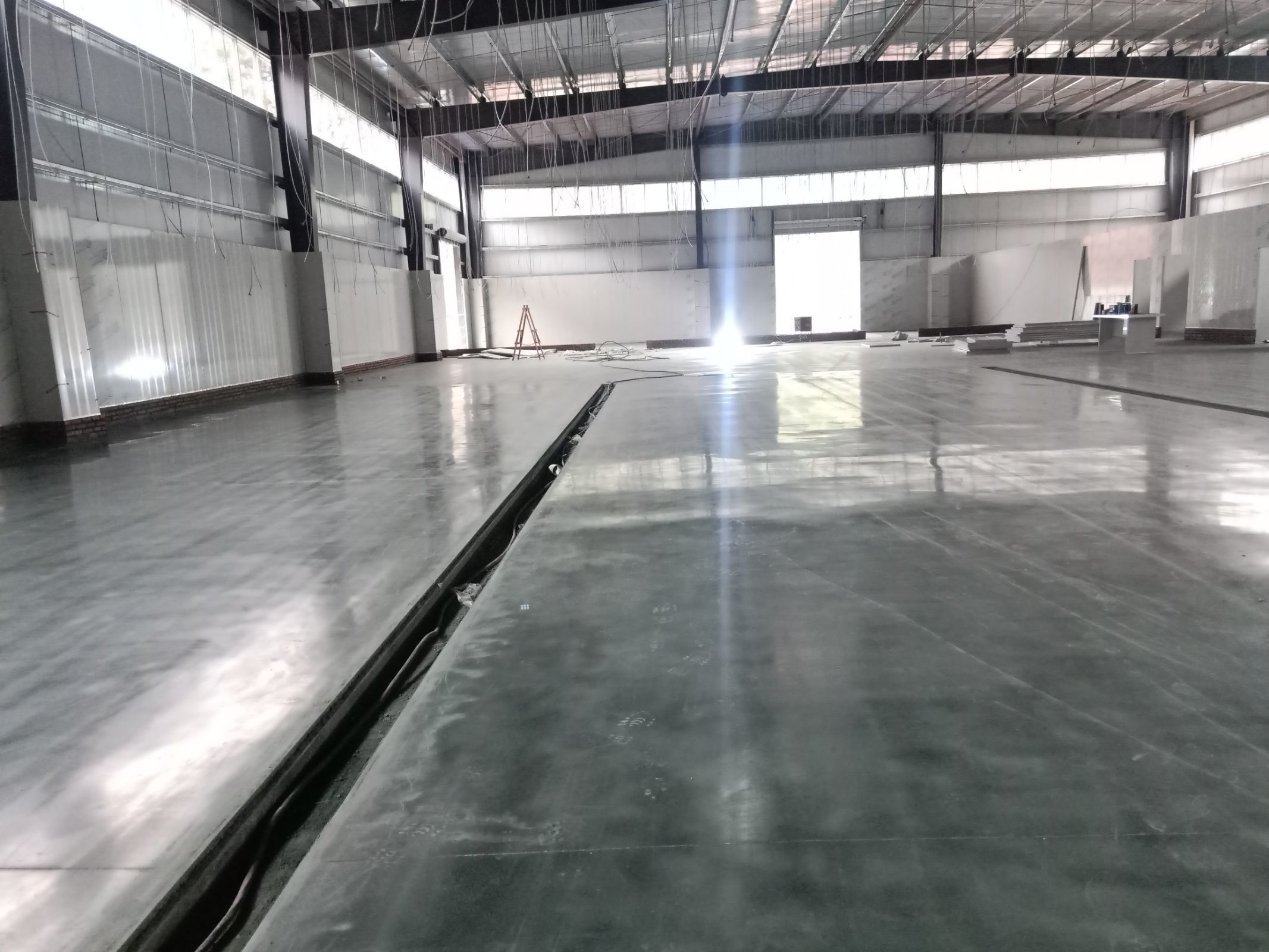4號廠房聚氨酯地坪施工完成;燈具安裝