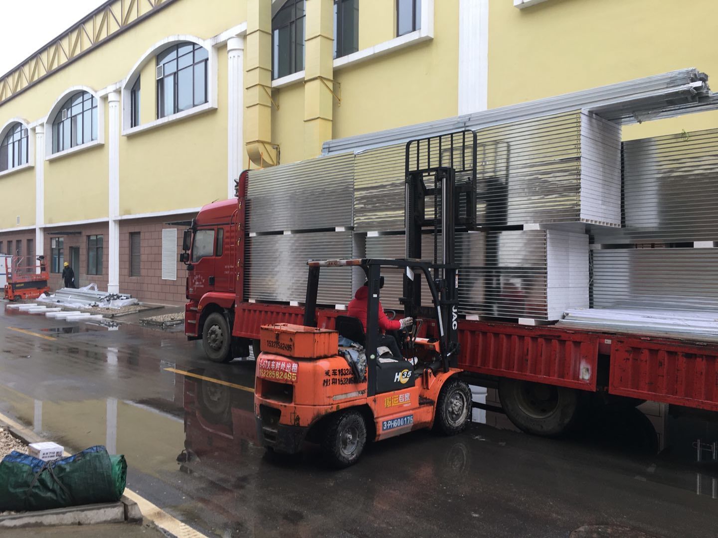 1:彩板吊頂全部門框扣料完成,門板構(gòu)件同步制作中。收尾工作分區(qū)域暫進行配合地坪施工。2:空調(diào)班組~風管合縫完成,完成材料轉(zhuǎn)運至二樓,主機設(shè)備到場卸裝。3:水電班組-控制線配線完成80%,樓頂配管20%左右。