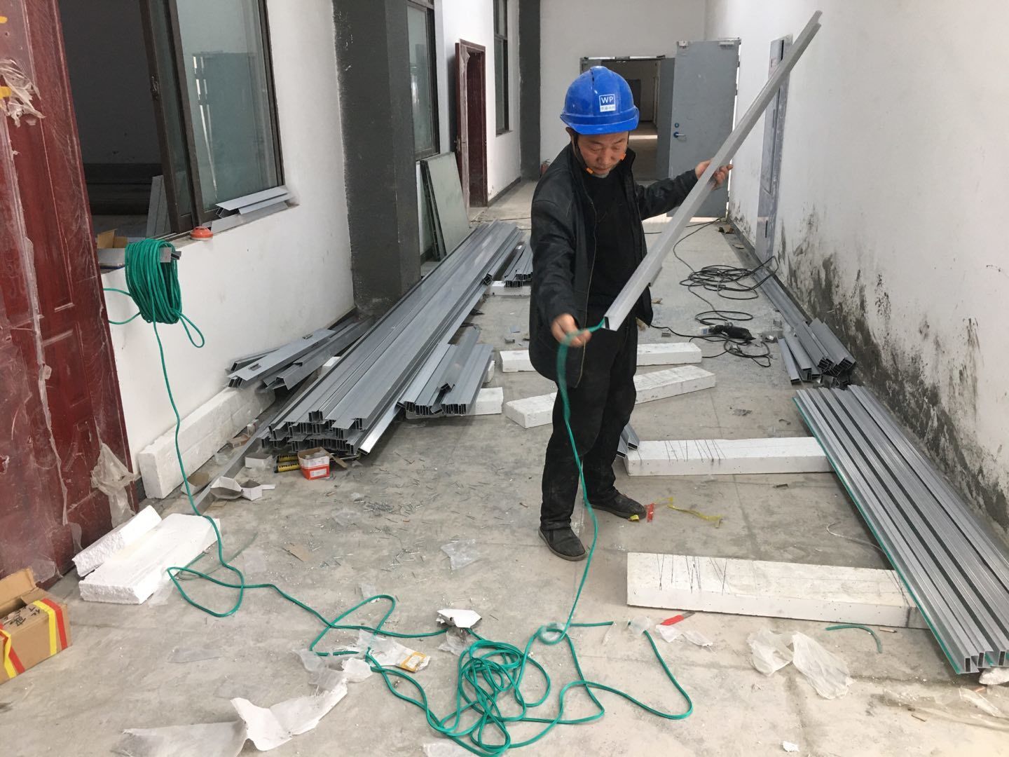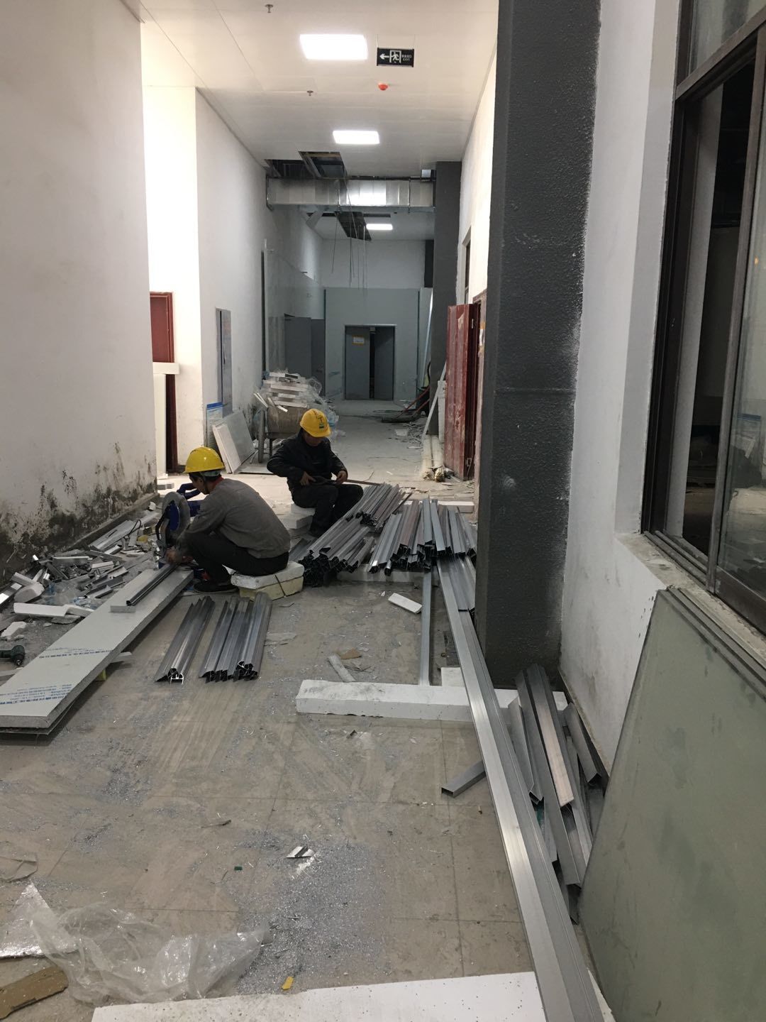 1:泡制車間T型鋁掛設(shè)完成2:前處理區(qū)絲桿掛設(shè)完畢,整體進度約為65%。3:隔墻通道門洞包飾處理進度較慢,已完成約25%