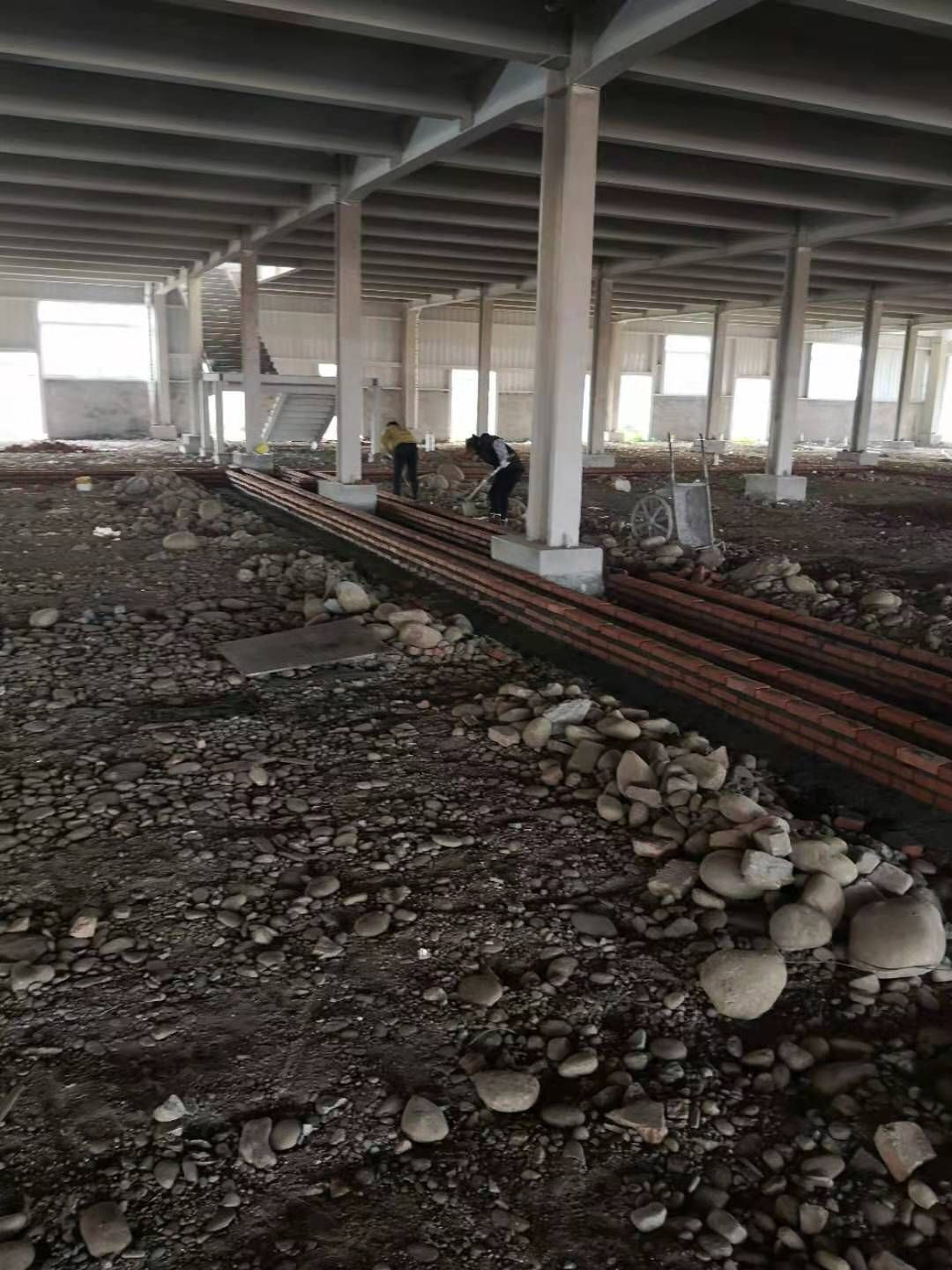 現(xiàn)場挖機壓地面,排水溝開挖