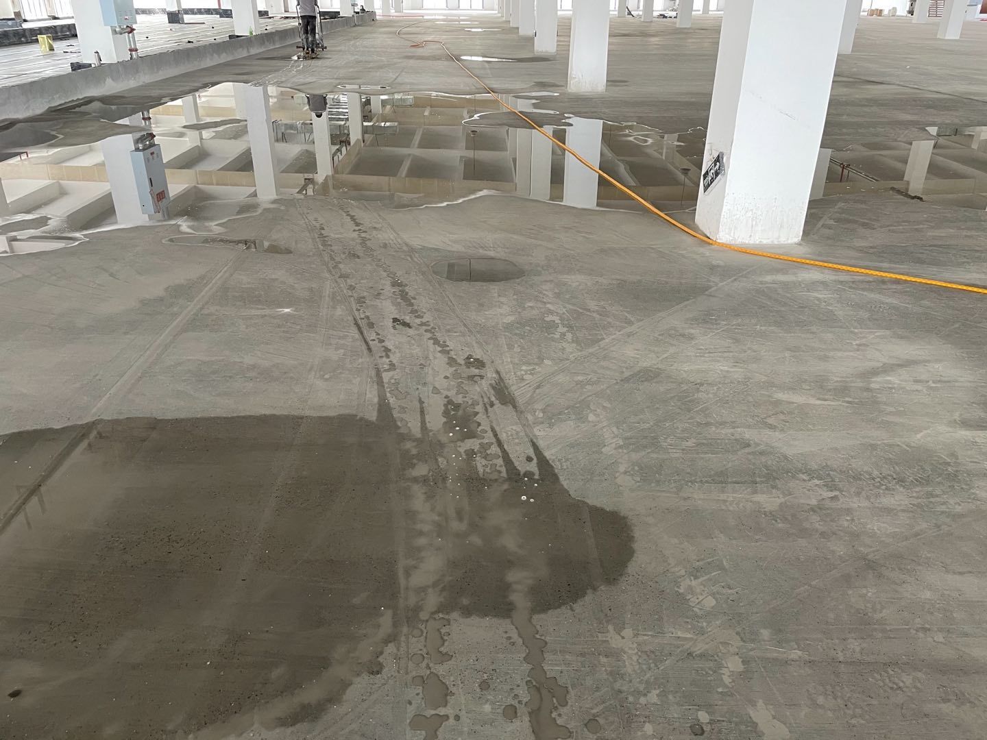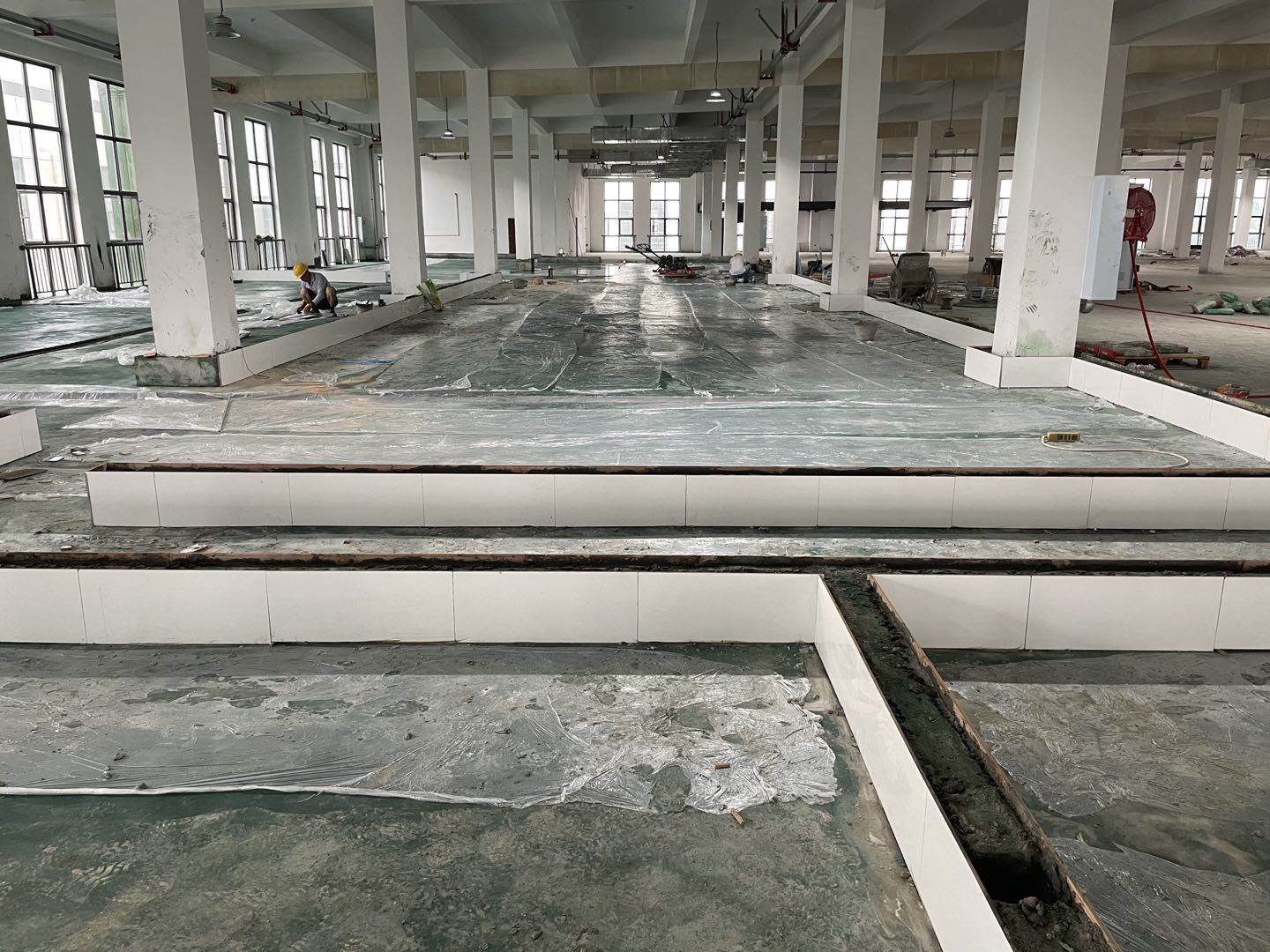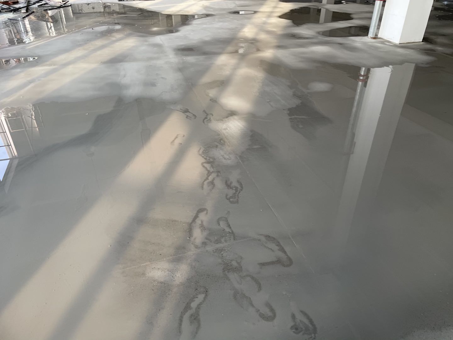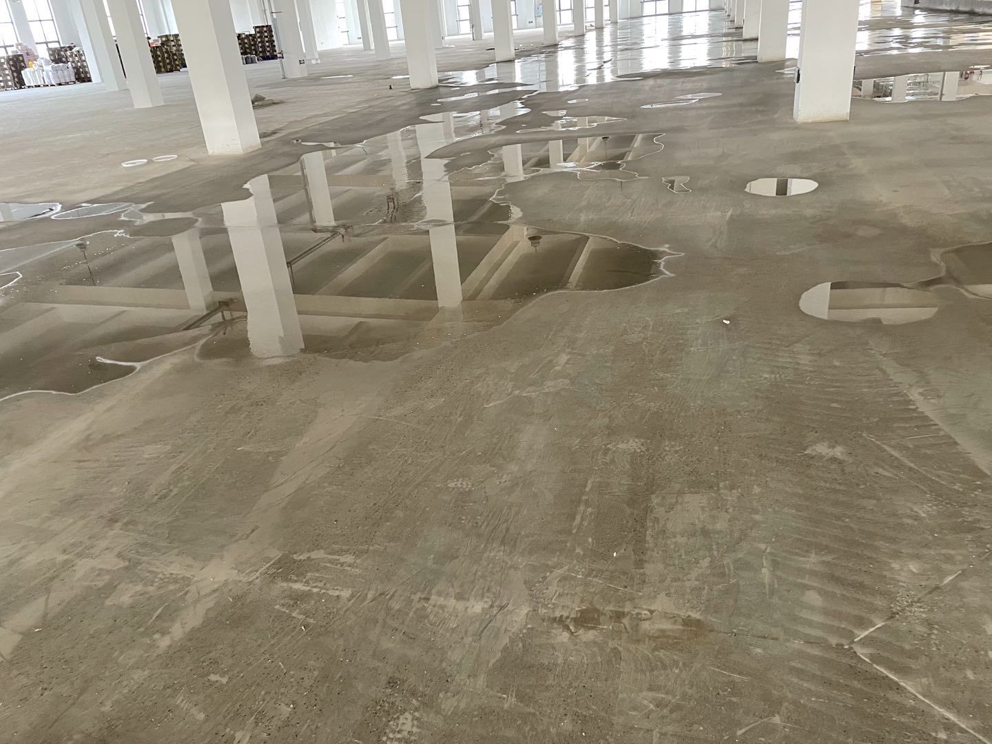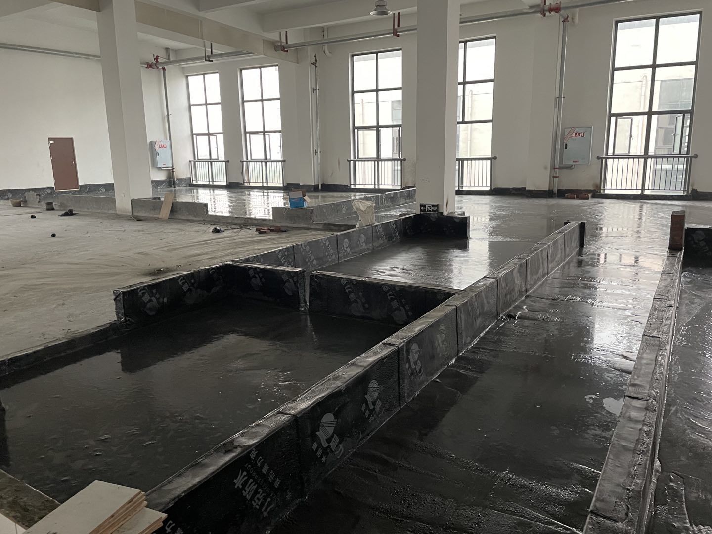 1.混凝土打耙完成,防水修補(bǔ)完成,蓄水試驗(yàn);2.金剛砂地坪完成,擋水墻瓷磚完成;3.彩鋼板隔斷材料進(jìn)場(chǎng)。