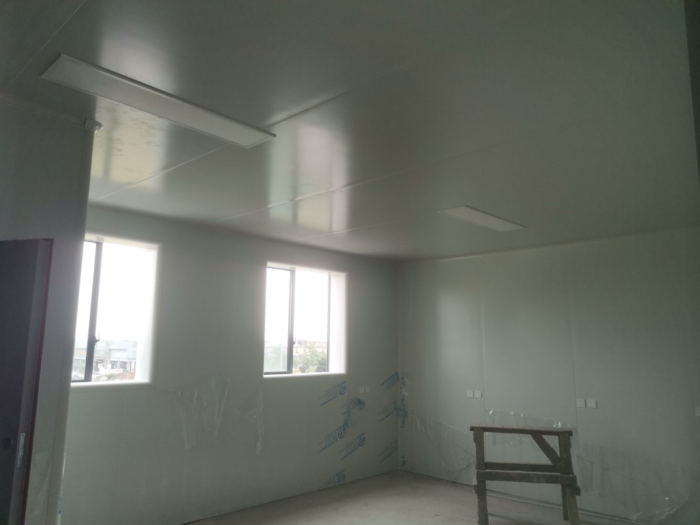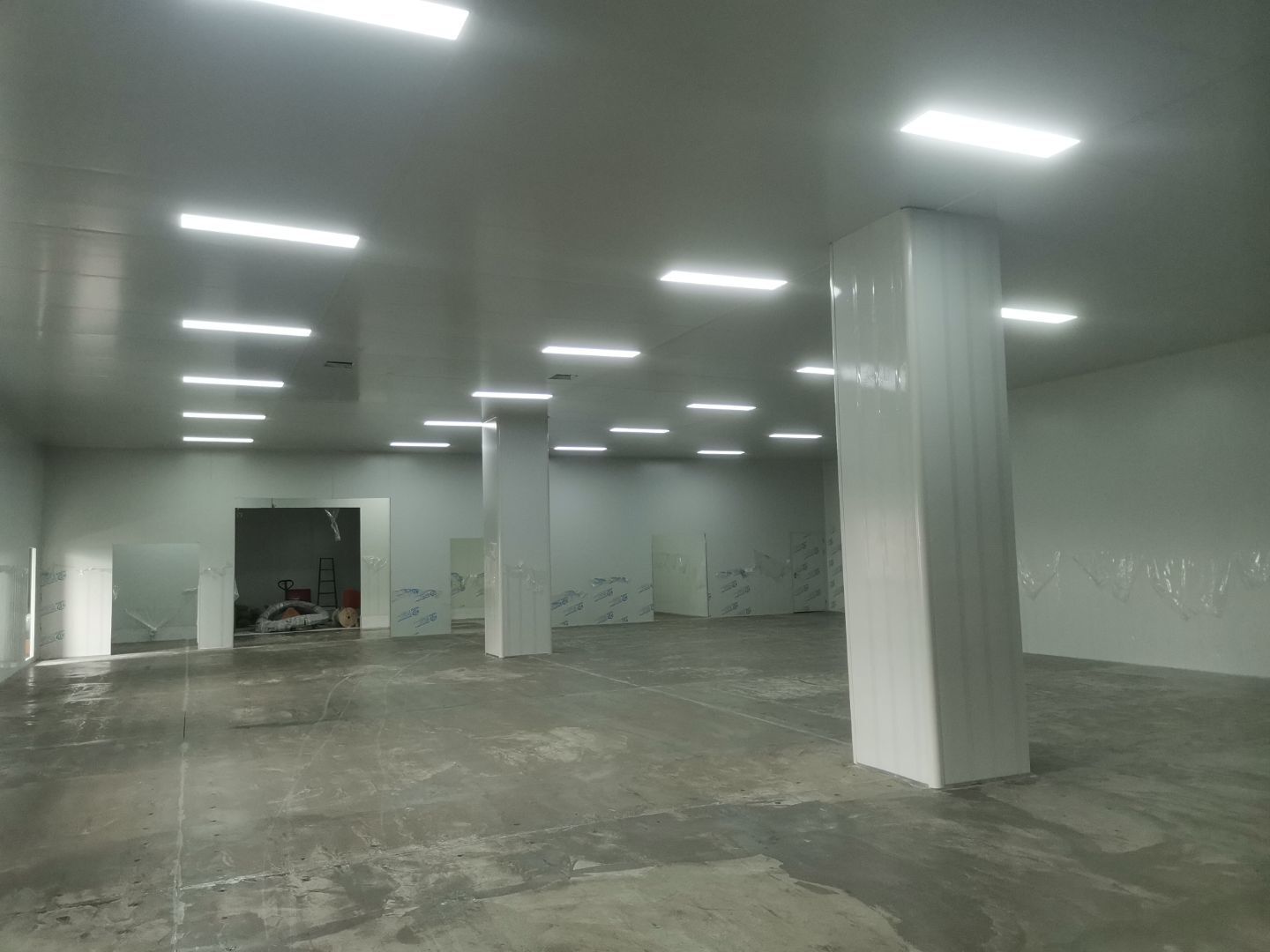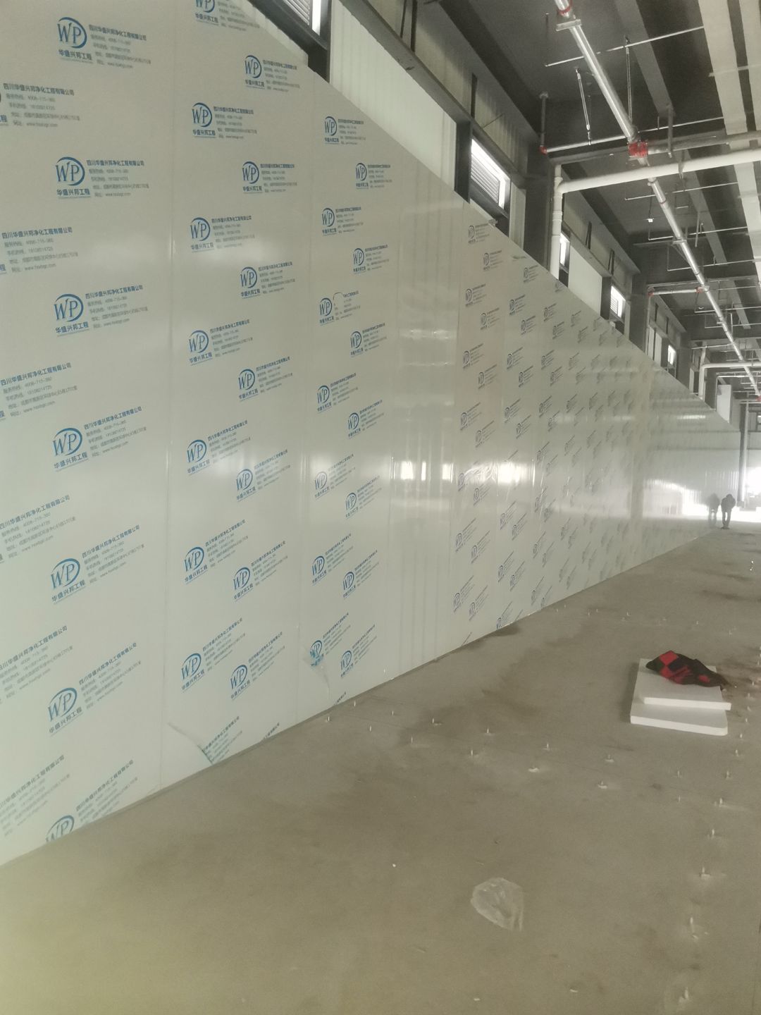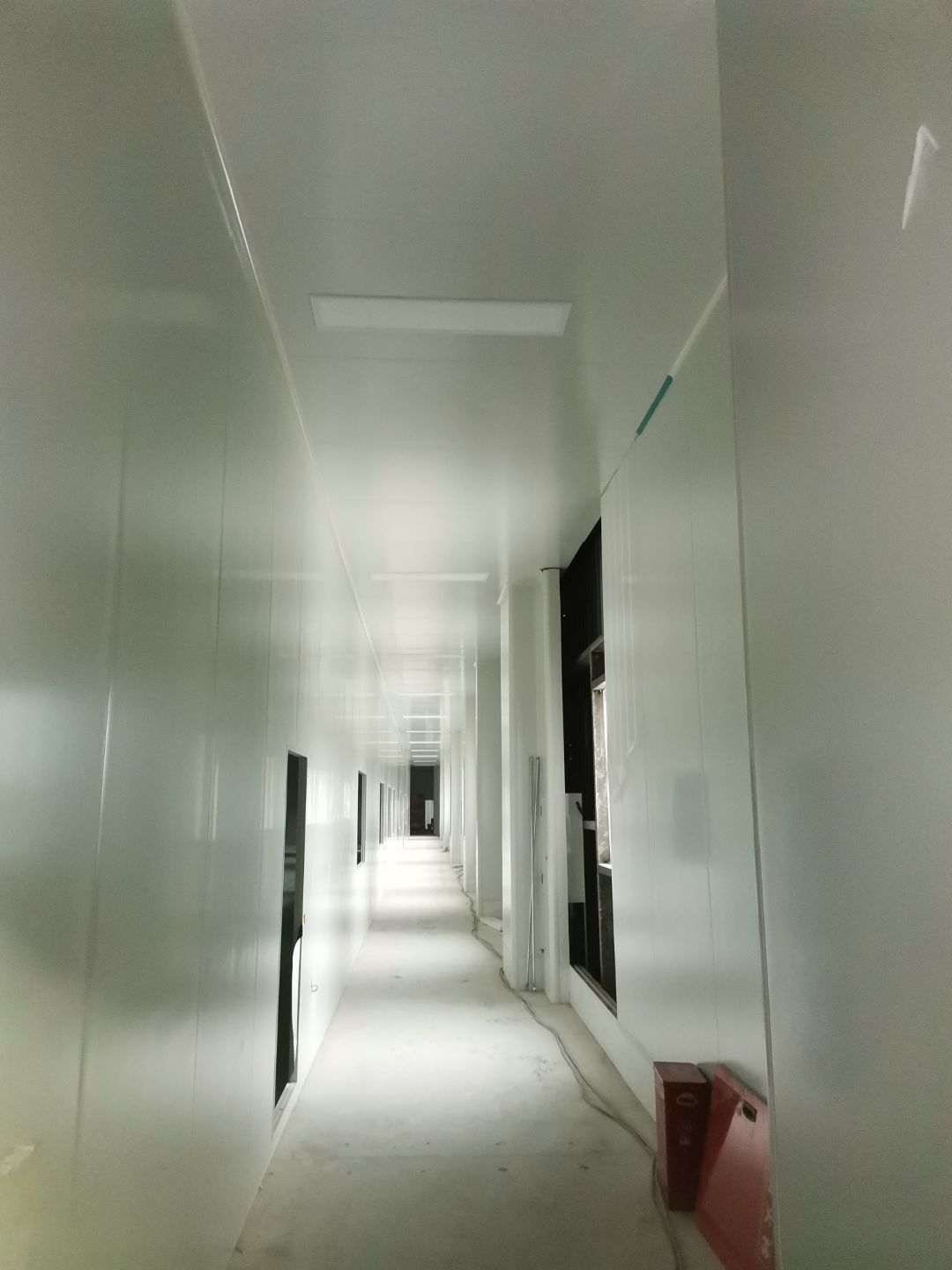 1、擋水墻貼磚完成95%(剩余吊裝口完成后實(shí)施); 2、凍庫(kù)庫(kù)板安裝完成100%,頂板完成100%; 3、低溫庫(kù)加熱絲安裝完成100%,保護(hù)層完成100%,擠塑板完成100%,凍庫(kù)地面混凝土澆筑完成100%,切縫完成,養(yǎng)護(hù); 3、彩鋼板安裝完成85%; 4、頂板安裝完成85%; 5、實(shí)驗(yàn)室墻板頂板完成100%; 6、化驗(yàn)室墻板頂板完成100%; 7、工具間墻板完成100%。