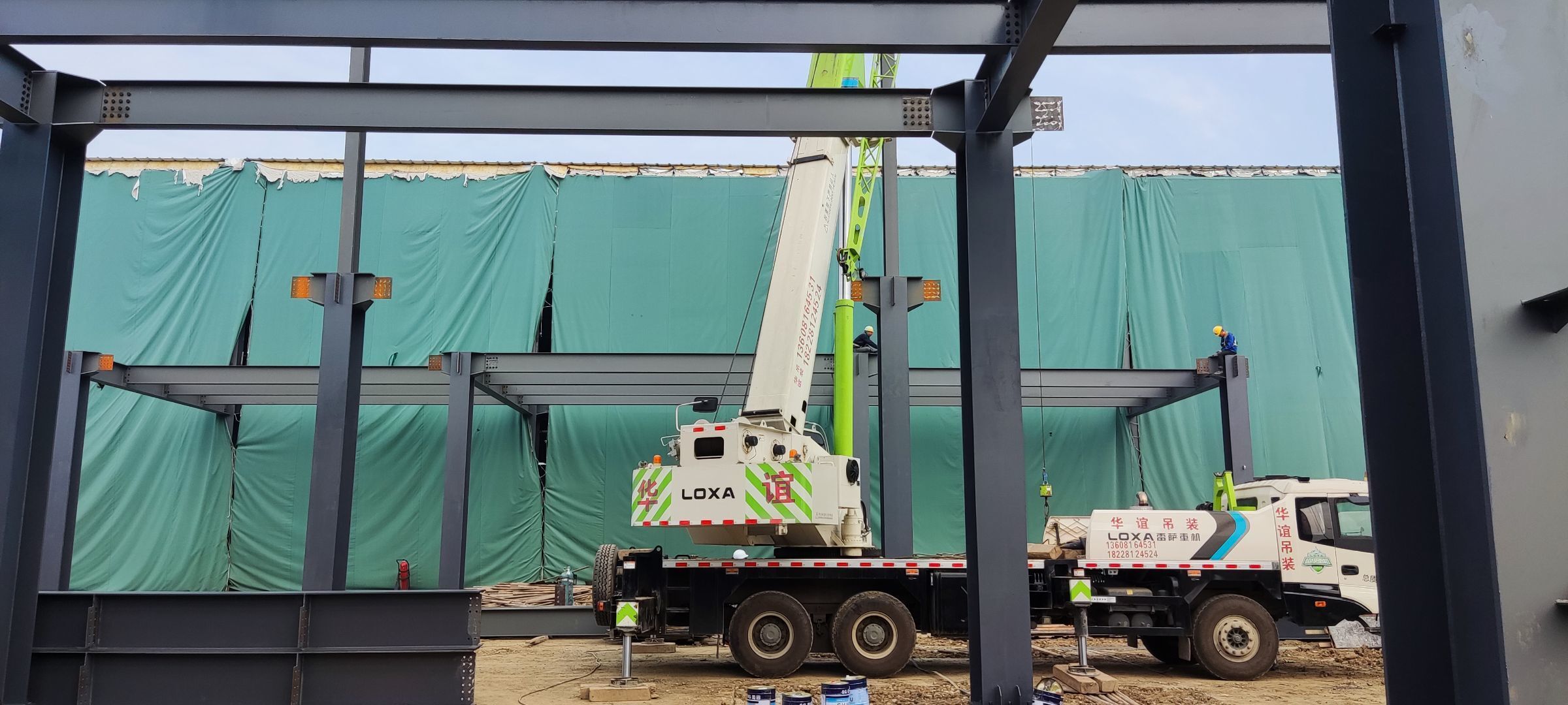 1、鋼結(jié)構(gòu)主體框架完成90%;2、檁條安裝完成10%