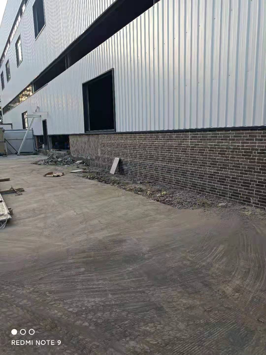 外墻瓦完成95% 舊凍庫外墻瓦全部拆完。 外墻磚完成90% 一層地坪完成30%
