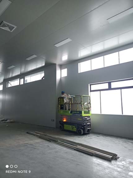 彩鋼板施工,兩個廠房連接部分頂板施工