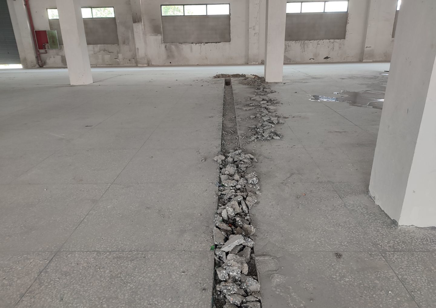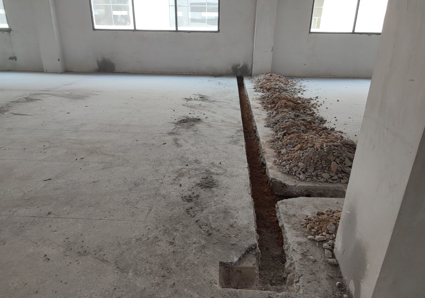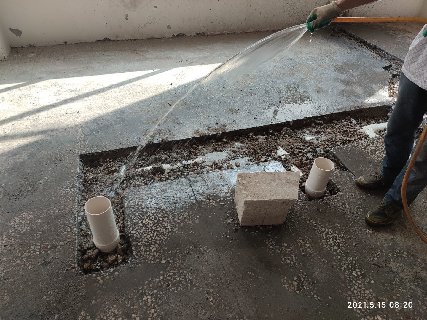 1.排水管溝回填及細(xì)石混凝土找補完成,車間坑洼補爛完成; 2.擋水墻放線完成,止水帶切割完成。