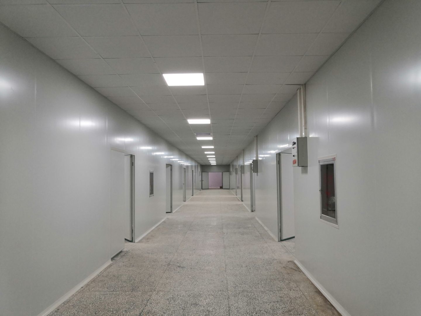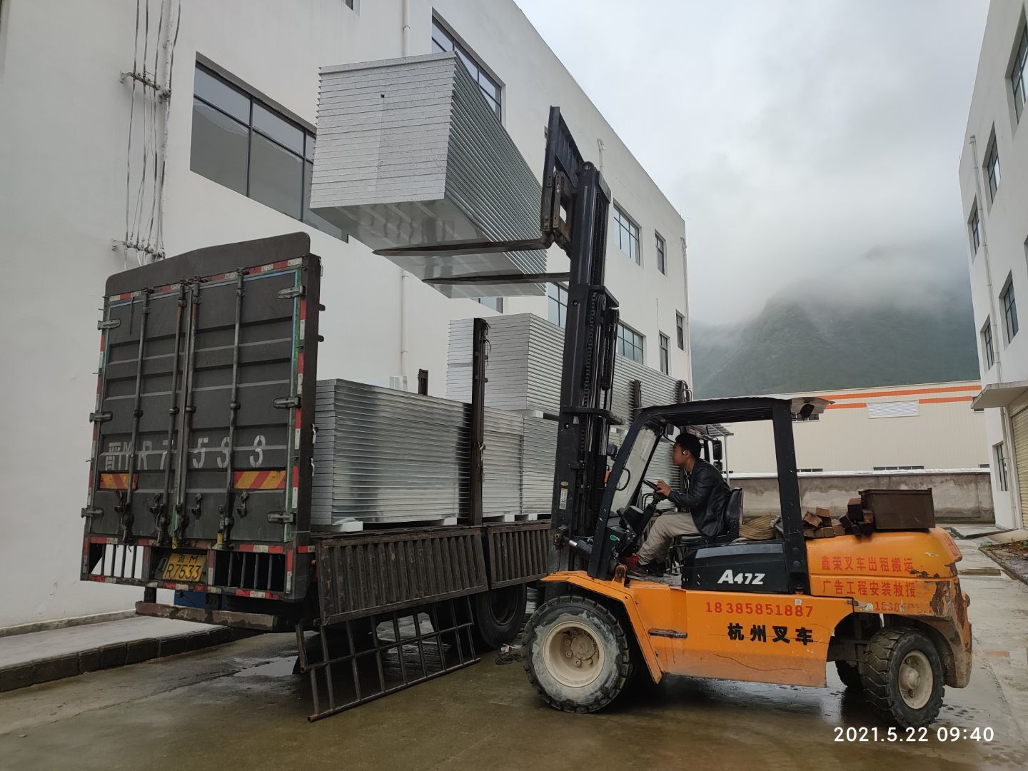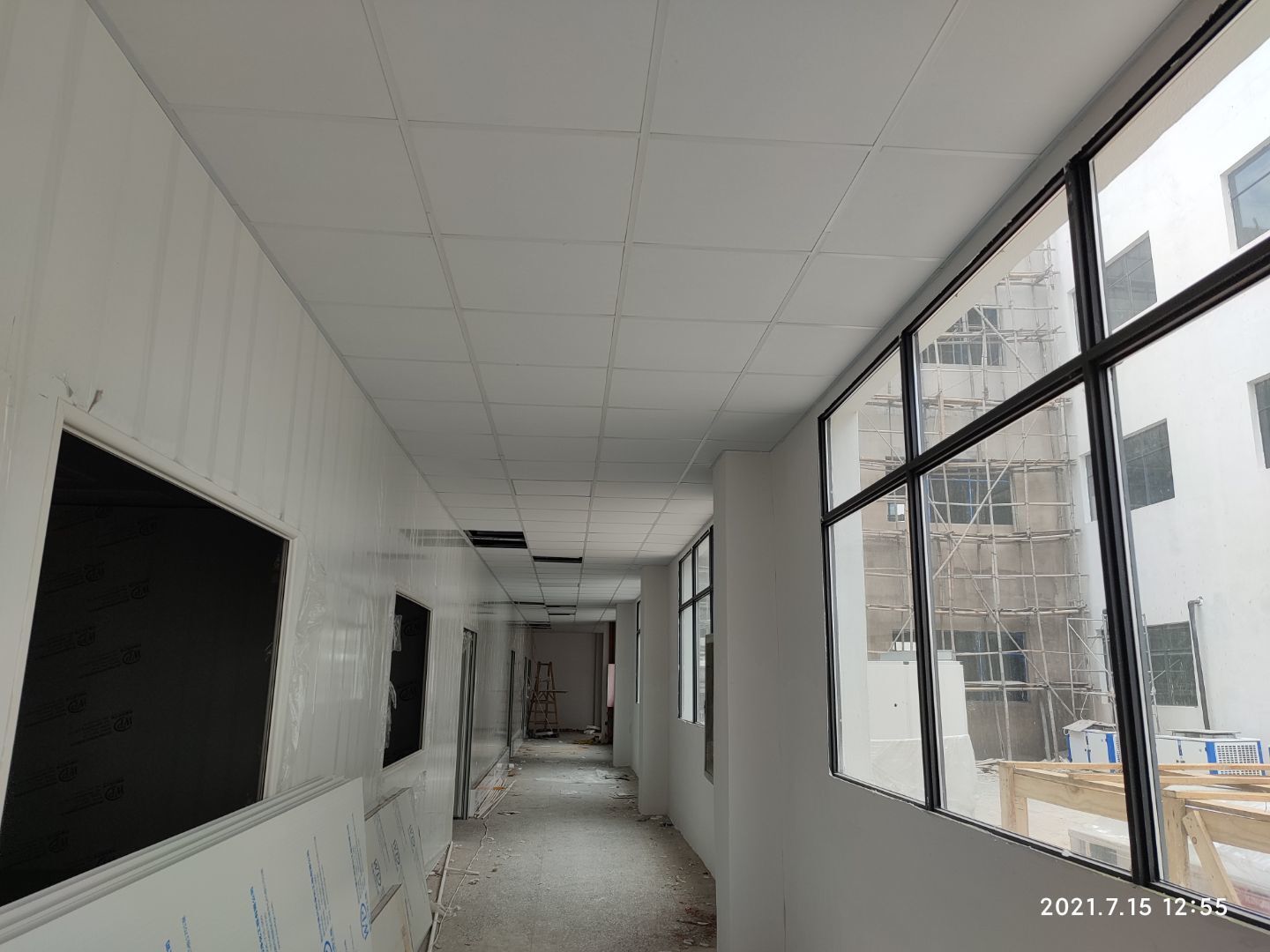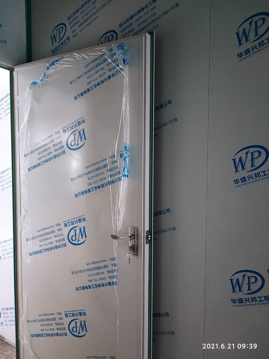 1.頂板撕膜打膠完成35% 2.彩鋼板區(qū)域換氣扇安裝完成70% 3.門鎖安裝完成70%