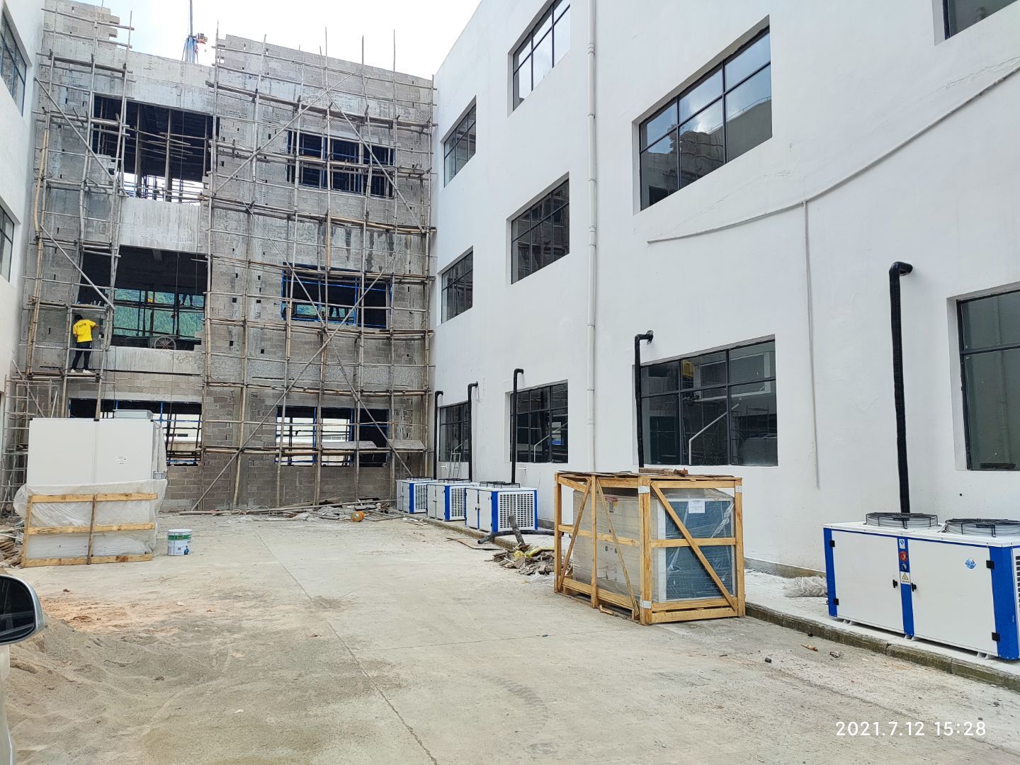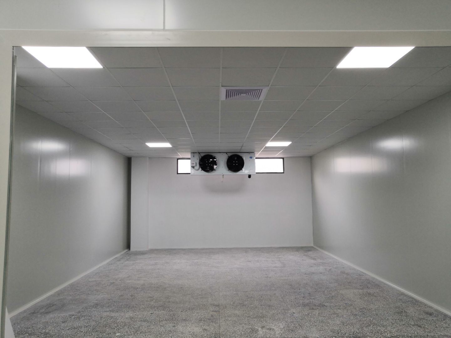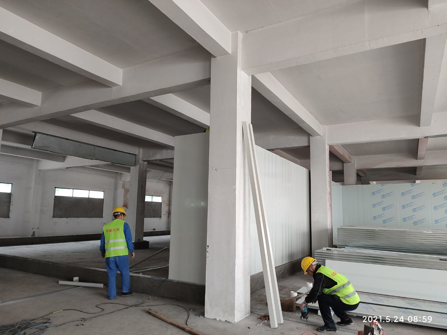 1.凍庫空調(diào)銅管焊接和保溫,控制線安裝完成,保壓完成,冷凝水管完成。 3.瓷磚鋪貼完成90%; 4.刮墻面頭道膩子完成75%