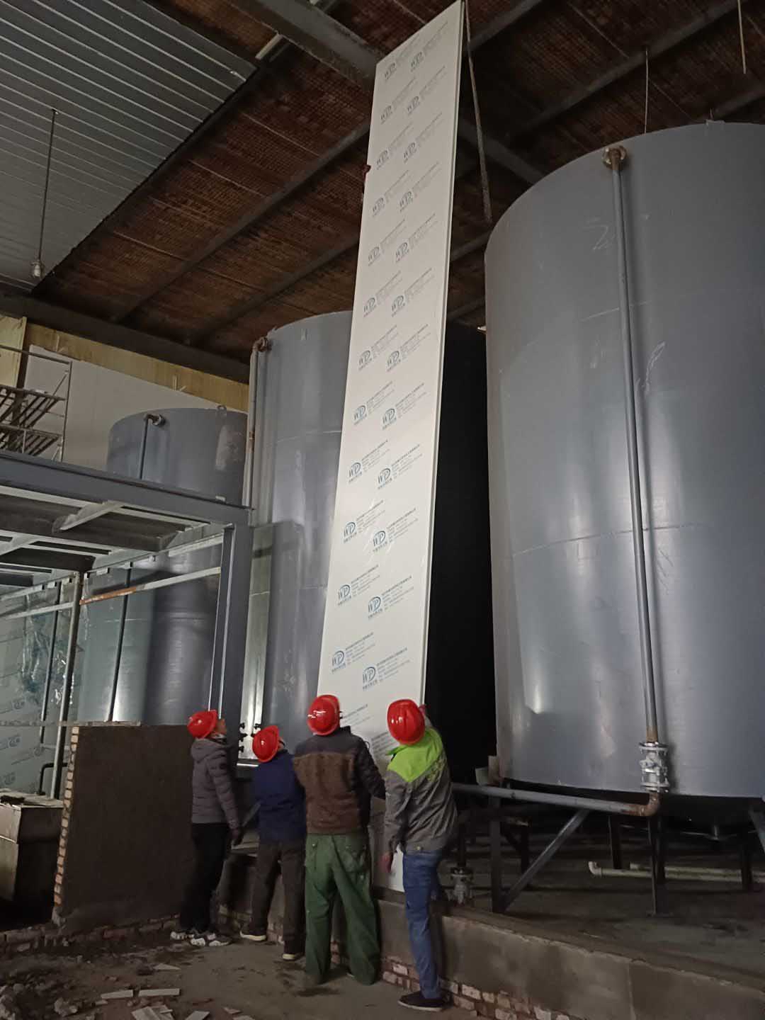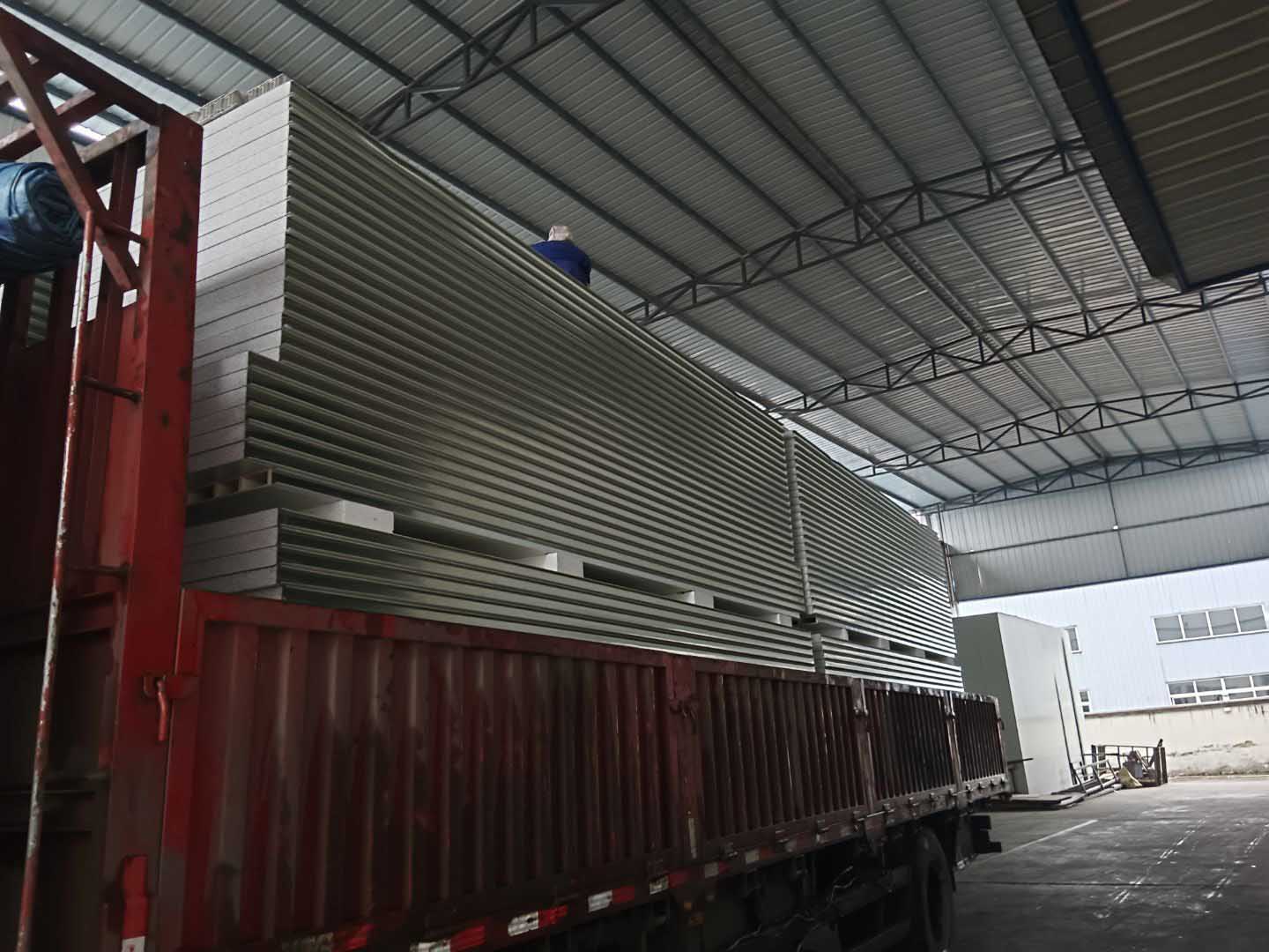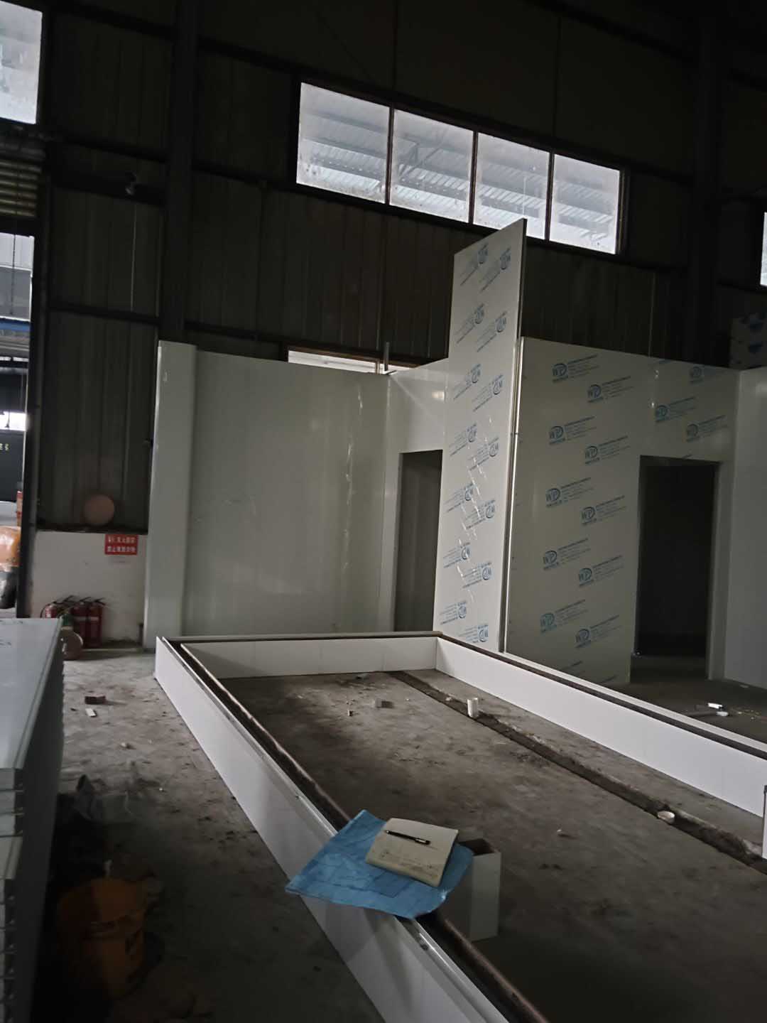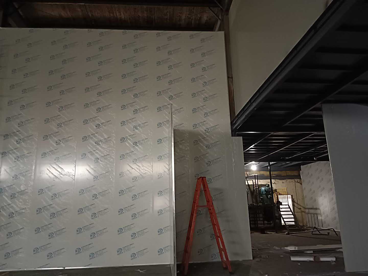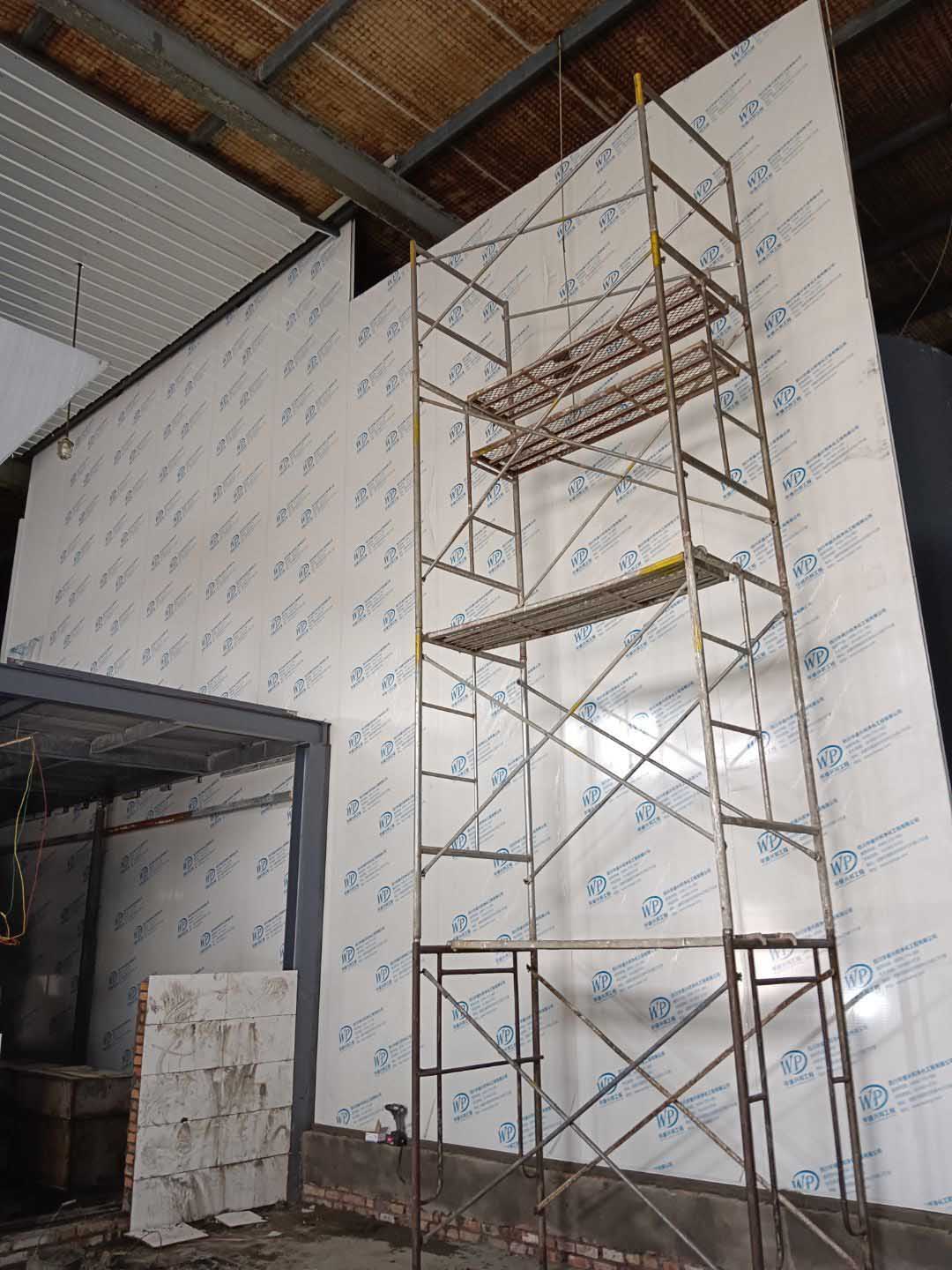 彩鋼板隔墻完成70%,調(diào)配間鋼管架搭設完成