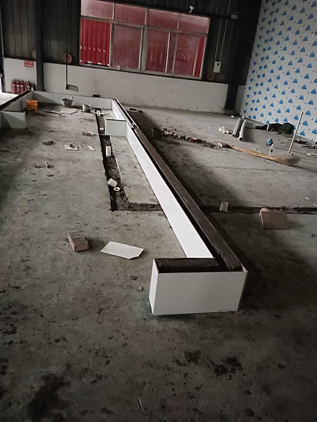 擋水墻貼瓷磚完成70% 排水完成80% 彩鋼板材料到現(xiàn)場