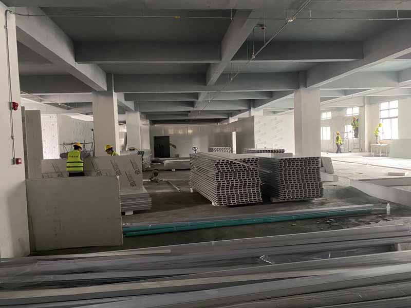 吊頂施工完成,地坪施工,設(shè)備進(jìn)場安裝