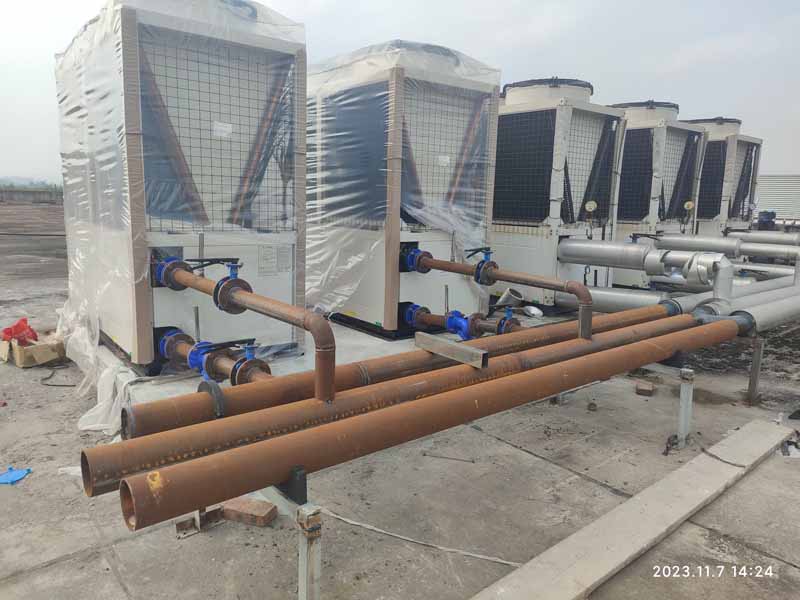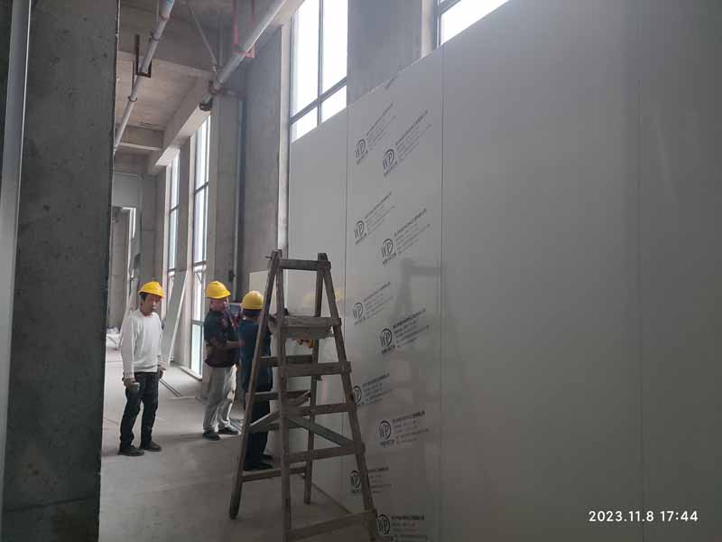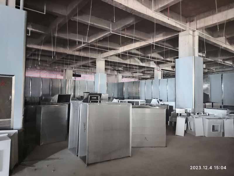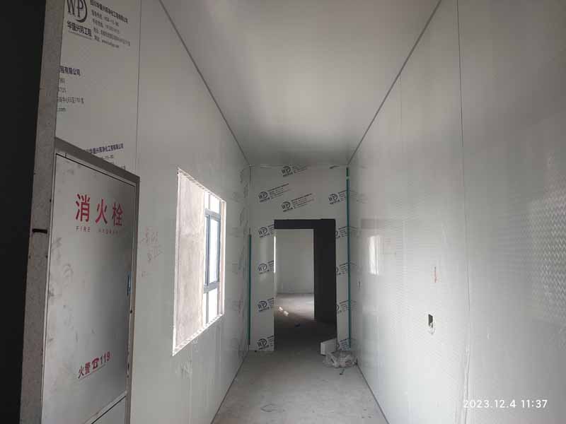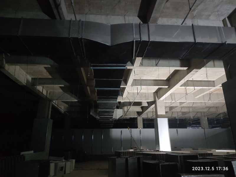 1、彩鋼板吊頂完成95%,板縫撕膜打膠完成90%,圓弧安裝完成60%。 2、燈具安裝及布管完成80%。 3、風(fēng)管支管吊裝完成85%,保溫完成40%。 4、空調(diào)室外機(jī)到貨。 5、一期二樓真空泵排風(fēng)管安裝完成。