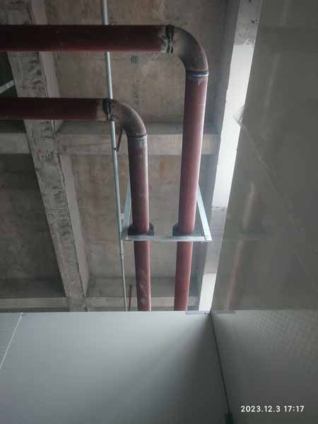 1、彩鋼板吊頂完成10%。 2、燈具安裝完成7%。 3、室內(nèi)空調(diào)水管主管安裝完成90%,風(fēng)管主管組裝完成,今天吊裝開始吊裝。